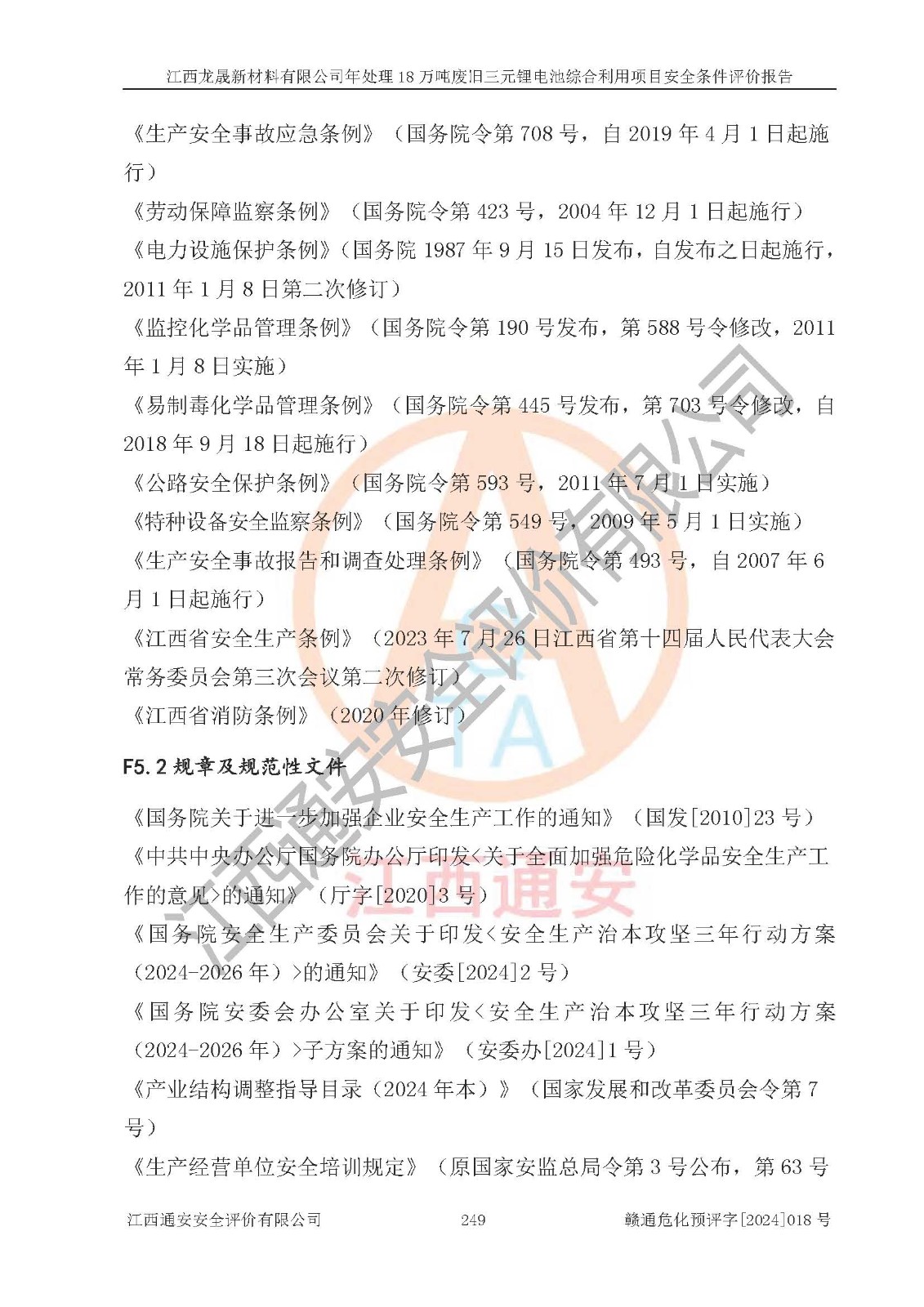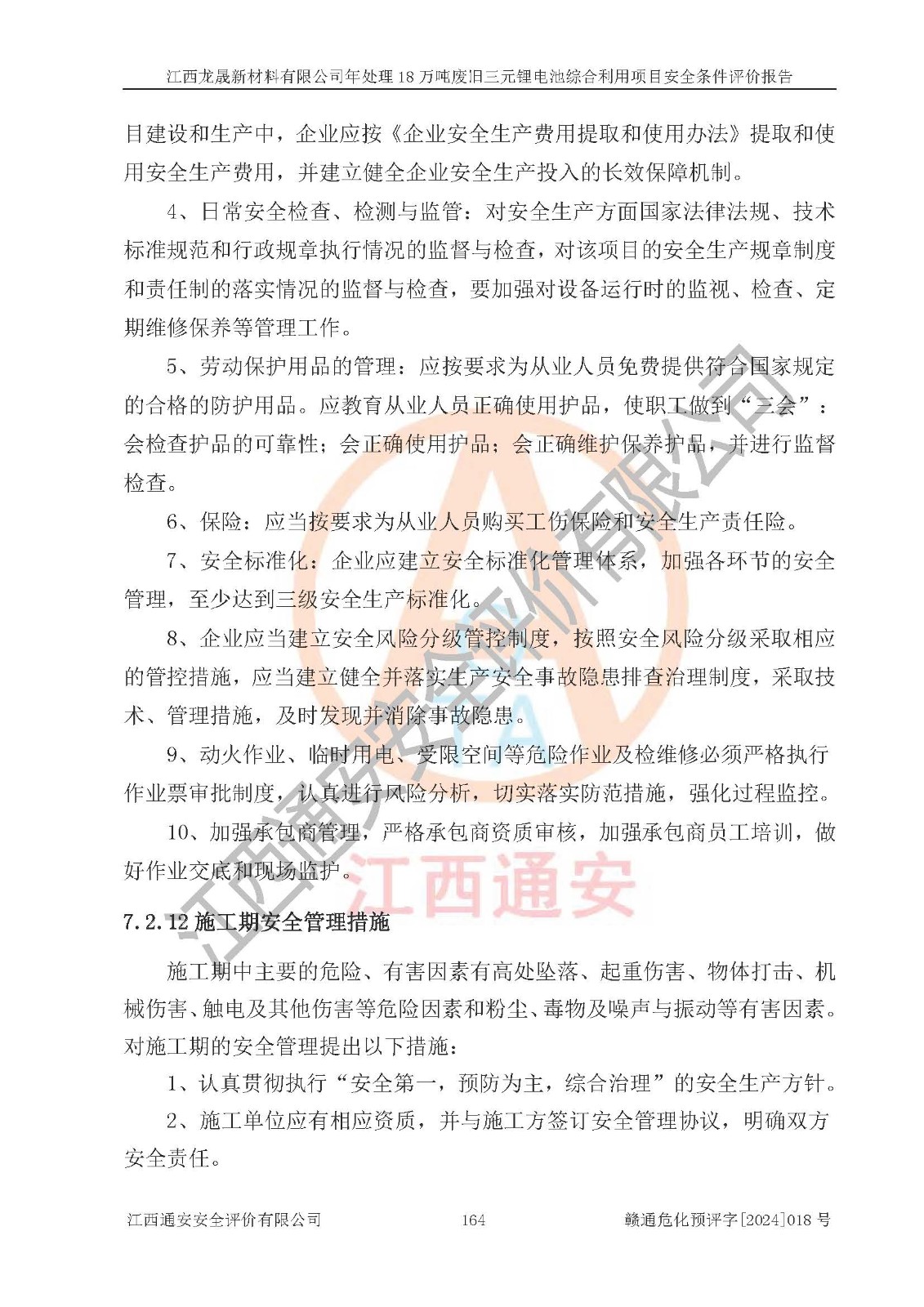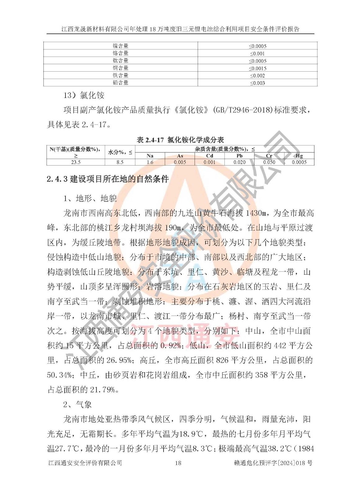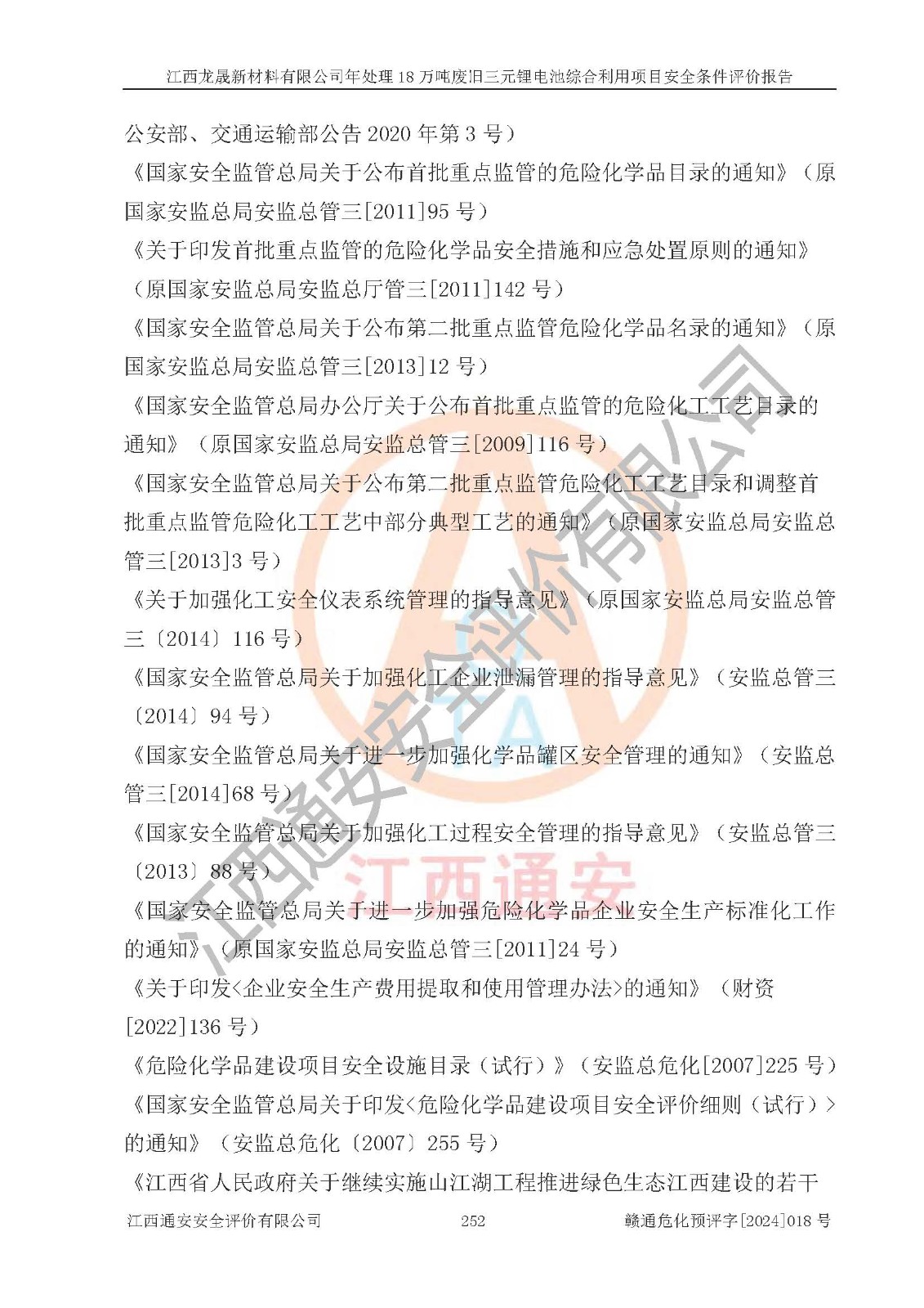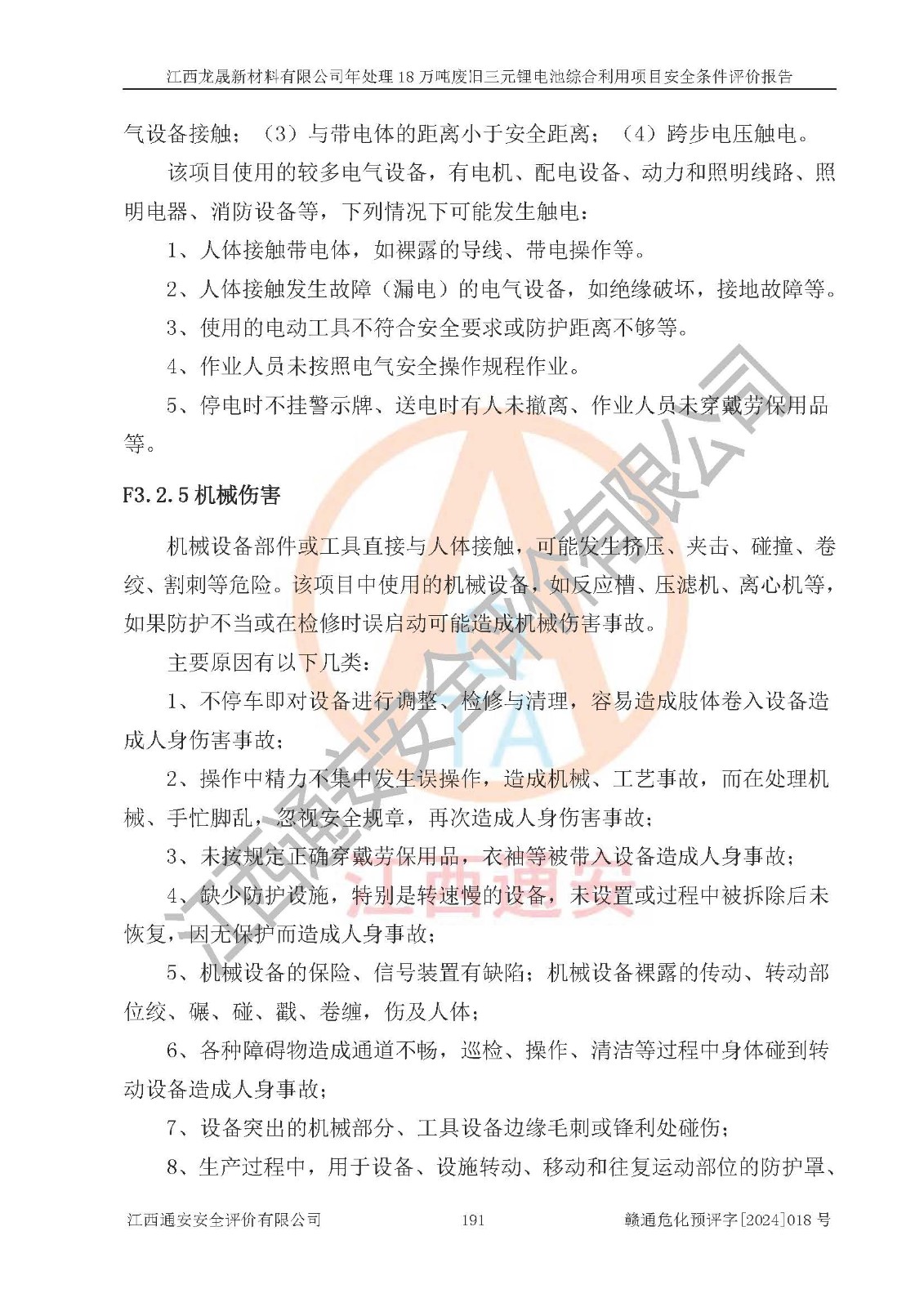 评价报告名称 | 江西龙晟新材料有限公司年处理18万吨废旧三元锂电池综合利用项目安全条件评价报告 | |||