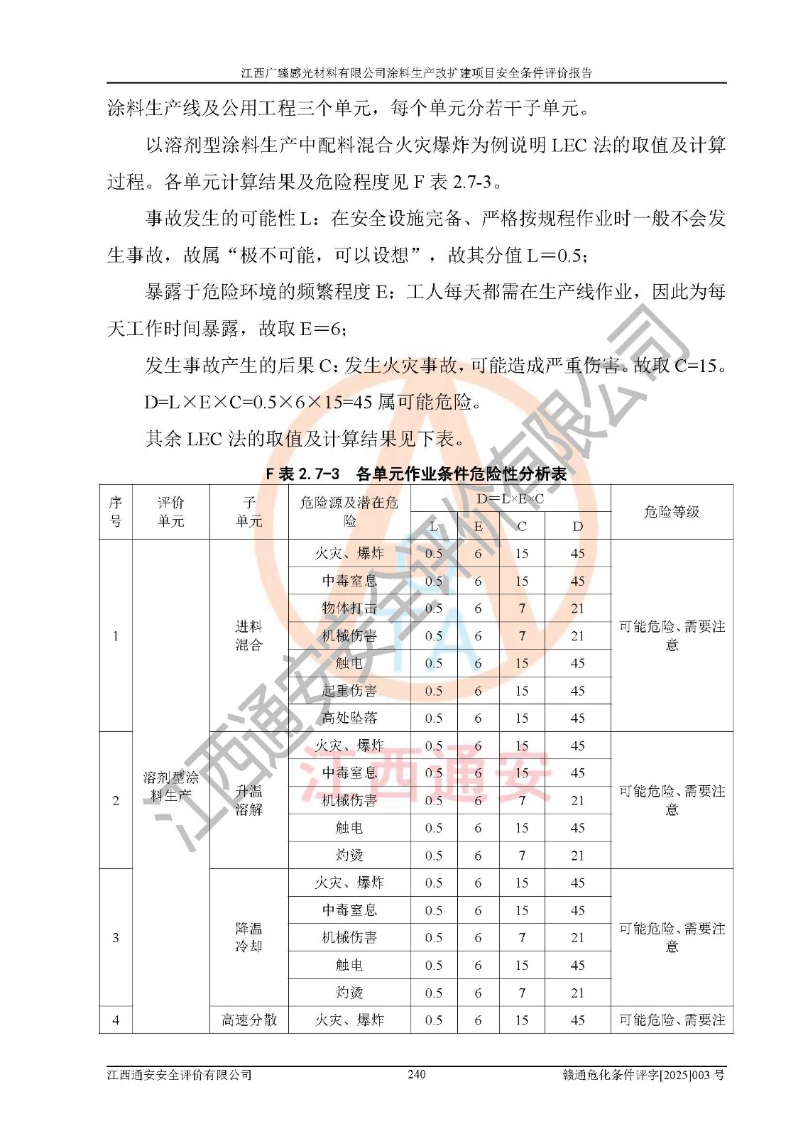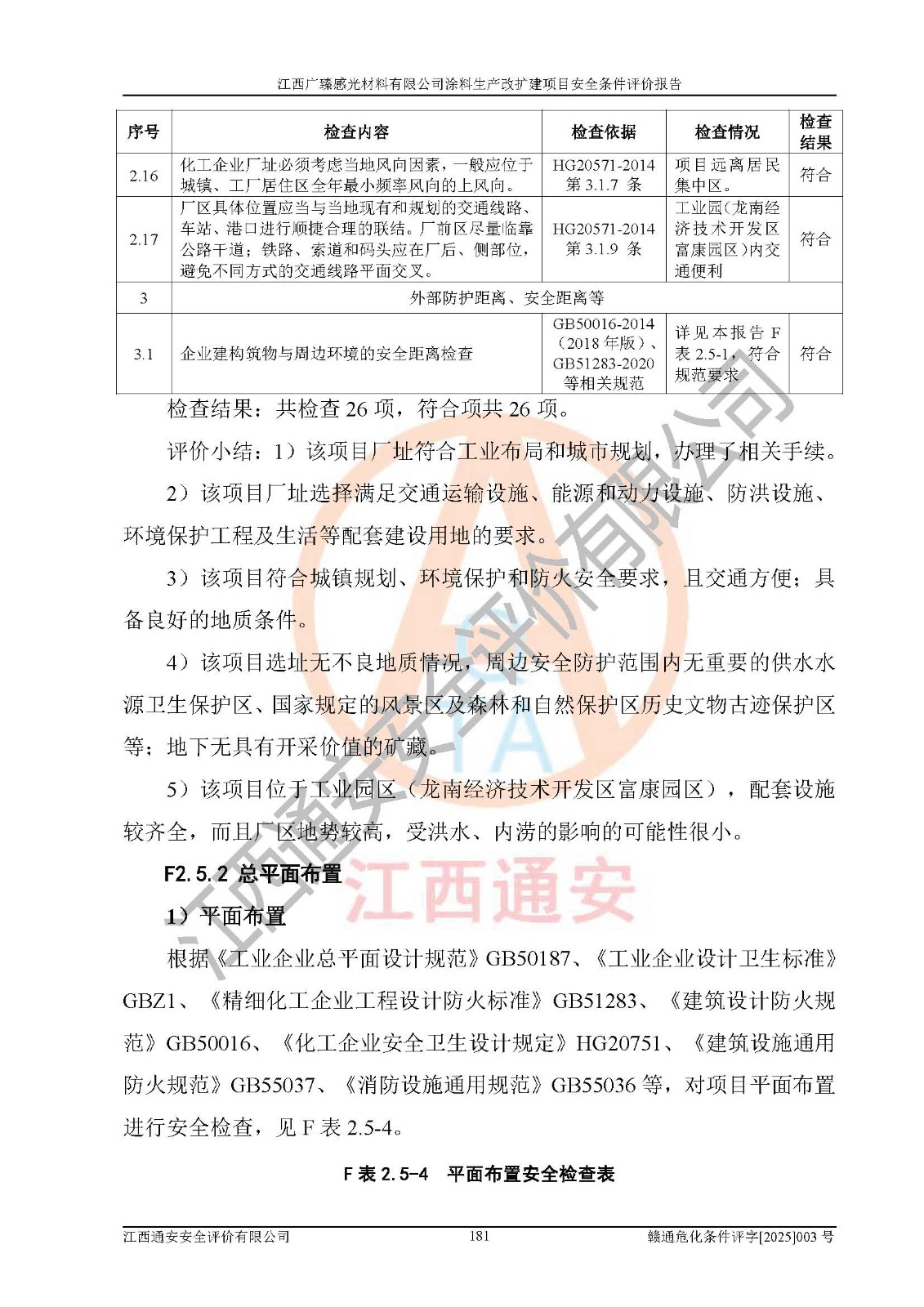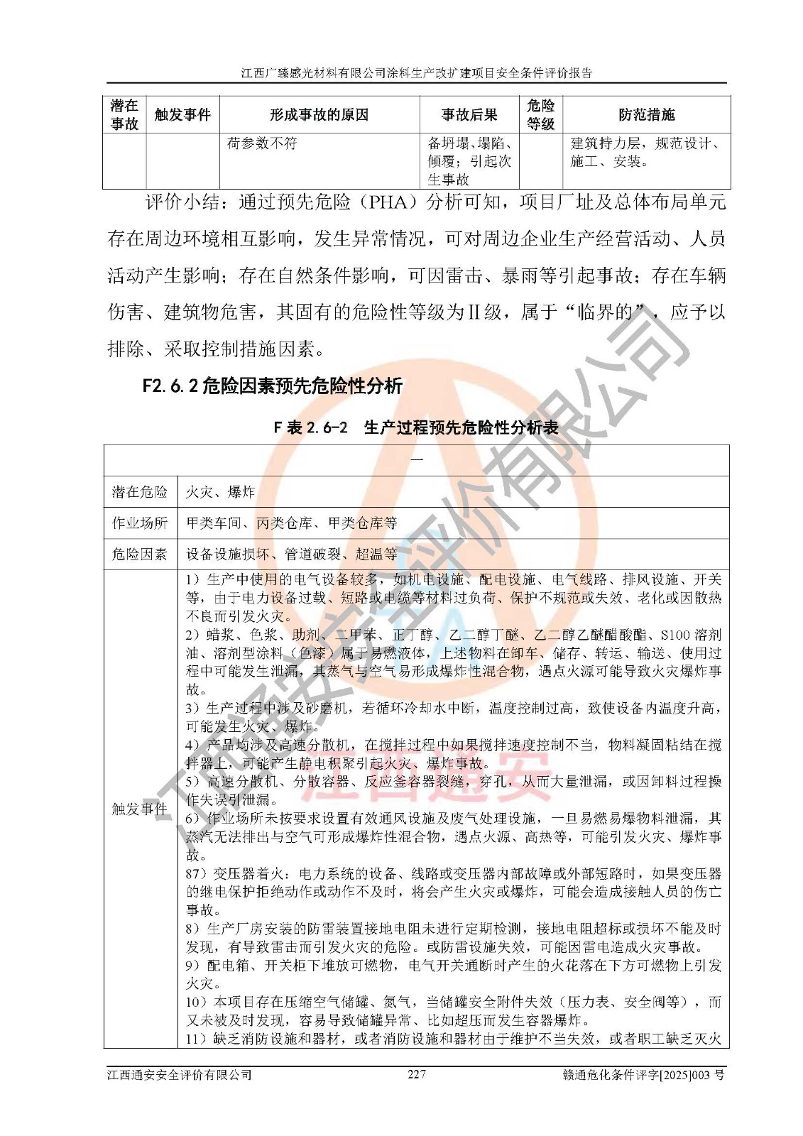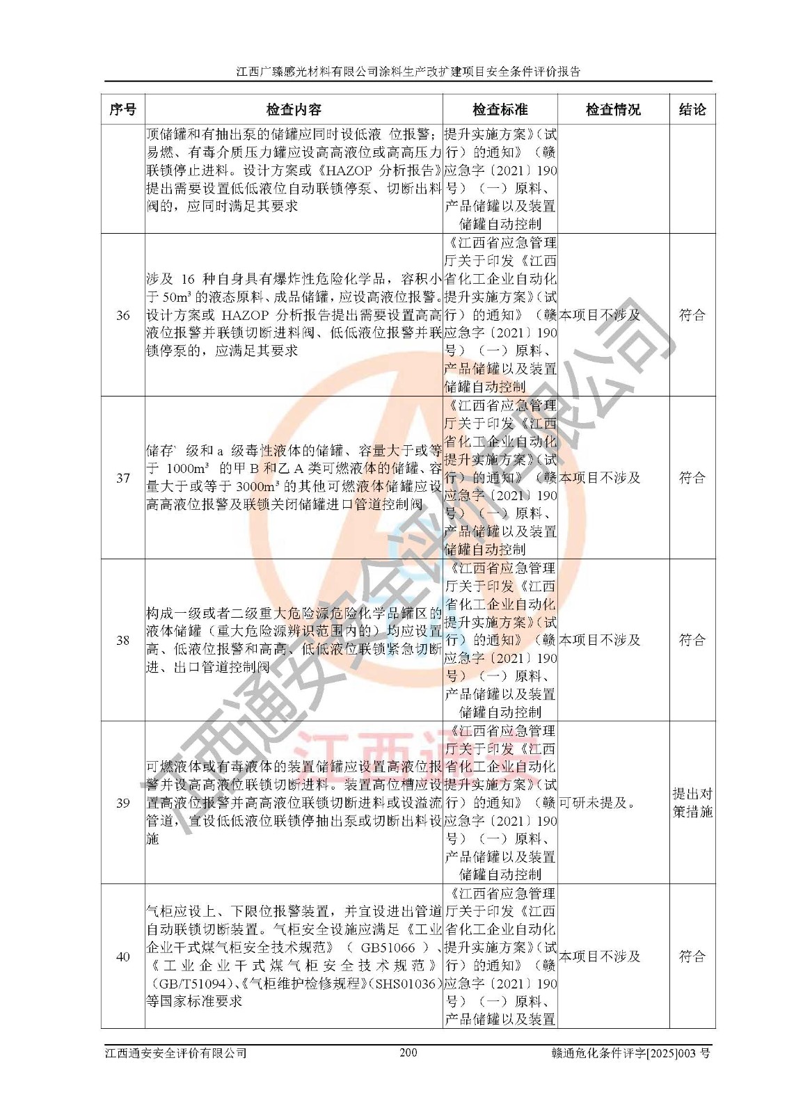 1)本项目取得了龙南市行政审批局下发的《江西省工业企业技术改造项目备案通知书》(项目统一代码为:2408-360727-07-02-3253323)、《建设用地规划许可证》、龙南市自然资源局出具对《关于为江西广臻年产2万吨涂料技改项目出具用地证明的函》的复函,符合地方产业发展规划的要求。 2)根据《危险化学品目录》(2015年版,十部委公告2022年第8号修订),本项目原辅料蜡浆、色浆、助剂、二甲苯、正丁醇、乙二醇丁醚、乙二醇乙醚醋酸酯、S100溶剂油、氮气[压缩的]及产品溶剂型涂料(色漆)属于危险化学品。本项目不涉及监控化学品、剧毒化学品、易制爆化学品、易制毒化学品、重点监管的危险化学品、特别管控危险化学品、高毒物品。本项目不涉及重点监管的危险化工工艺。 3)根据《危险化学品重大危险源辨识》(GB18218-2018),该项目未构成危险化学品重大危险源。 4)项目存在的主要危险因素有:火灾爆炸、容器爆炸、中毒窒息、灼烫、触电、**伤害、机械伤害、高处坠落、物体打击、淹溺等,存在的主要危害因素有:噪声与振动、高温、有害化学物质等;引起事故的原因有人的不安全行为、物的不安全状态、管理缺陷和环境不良。其中*主要的危险有害因素是火灾爆炸。 5)采用预先危险性分析法评价,结果为: (1)通过预先危险(PHA)分析可知,项目厂址及总体布局单元存在周边环境相互影响,发生异常情况,可对周边企业生产经营活动、人员活动产生影响;存在自然条件影响,可因雷击、暴雨等引起事故;存在**伤害、建筑物危害,其固有的危险性等级为Ⅱ级,属于“临界的”,应予以排除、采取控制措施因素。 (2)生产作业存在的危险因素包括火灾爆炸、触电、灼烫、中毒窒息固有的危险等级为Ⅲ级,属于“危险的”,可能导致人员伤亡和系统损坏的因素,需要采取防范和对策措施的因素;其它危险因素固有的危险等级为Ⅱ级,属于“临界的”,应予以排除、采取控制措施因素。 (3)生产作业存在的噪声、粉尘、高温、有害化学物质的危险有害因素等级为Ⅱ级,属于“临界的”,应予以排除、采取控制措施因素。 6)危险度评价分析,结果为: 生产装置危险度评价分析:3#甲类车间为中度危险(Ⅱ级)。 储存单元危险度评价分析:1#涂料成品仓库为**危险(Ⅰ级)、5#涂料原料仓库为**危险(Ⅰ级)、6#涂料原料仓库为中度危险(Ⅱ级)、7#涂料原料仓库为中度危险(Ⅱ级)、9#危废仓库为中度危险(Ⅱ级)、2#丙类原料仓库为中度危险(Ⅱ级)、甲类罐区为**危险(Ⅰ级)。 7)作业条件危险性评价结果:在选定的评价单元中,其危险分值均在70以下,危险程度基本属于“可能危险”、“稍有危险”范围,作业条件相对安全。企业经营过程中首先应重点加强对甲类生产车间、甲类仓库、储罐区的危险因素的严格控制,注重日常安全管理;其次要建立健全完善的安全生产责任制、安全管理制度、安全技术操作规程并**其贯彻落实;第三要认真抓好操作人员、管理人员的安全知识和操作技能的培训,**人员具有与工程技术水平相适应的技术素质和安全素质,**安全作业。 8)项目建设场地符合当地规划要求,建设场地通过合理规划,其选址、周边环境、总平面布置、交通运输等能符合《中华人民共和国安全生产法》《危险化学品安全管理条例》《建筑设计防火规范》《精细化工企业工程设计防火标准》等法规、标准、规范要求。 厂址地区地震活动相对较弱,灾害性天气出现频率稍高,自然灾害对项目建设具有**影响,通过采取相应的防护措施,自然条件适宜建设。 9)建设项目符合**产业政策的要求;选择工艺为现行成熟工艺,其安全可靠性可得到**。 10)本报告已根据有关安全生产法律、法规、规章和**标准、行业标准,并严格执行省委办公厅省**办公厅《关于全面加强危险化学品安全生产工作的实施意见》(赣办发[2020]32号)及鄱阳湖生态经济区、长江经济带、“五河一湖”相关政策规定,客观、公正、科学地进行安全评价,项目符合《江西省应急管理厅关于印发《江西省危险化学品建设项目安全监督管理实施细则》(试行)的通知》(赣应急字[2021]100号)的要求。 11)本报告结合工艺特征,提出应采取的对应的自动化控制系统及自动化实施方案,满足《江西省应急管理厅关于印发《江西省化工企业自动化提升实施方案》(试行)的通知》(赣应急字[2021]190号)的要求。 综上所述:江西广臻感光材料有限公司涂料生产改扩建项目的产业政策、安全条件、厂址、总体布局、主要技术和工艺、装置、设施、配套和辅助工程、安全管理等均满足安全生产相关法律法规、标准规范的要求,该建设项目的危险、有害因素可得到**控制,风险在可接受范围内,具有**的本质安全水平。企业应认真落实本报告提出的安全对策与建议,在下一步设计、建设施工过程中严把质量关、严格施工安全管理和检查,使各项安全措施落实到实处,且严格执行建设项目安全设施“三同时”的规定,建立**的事故应急体系和措施。 |