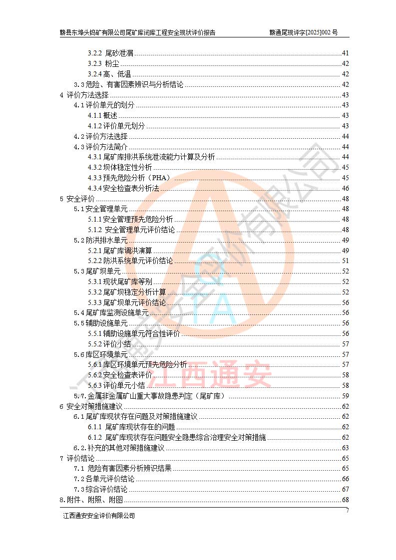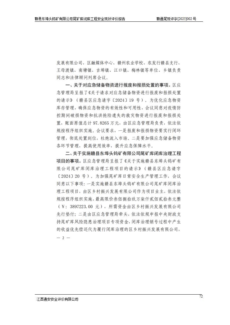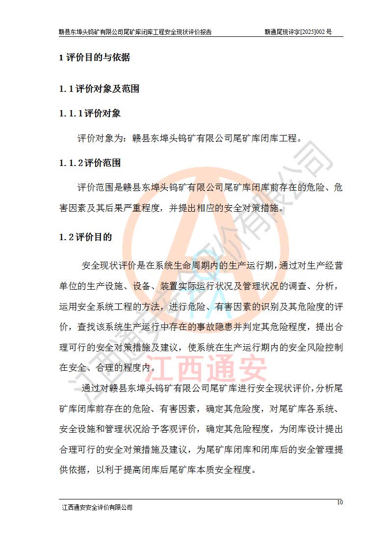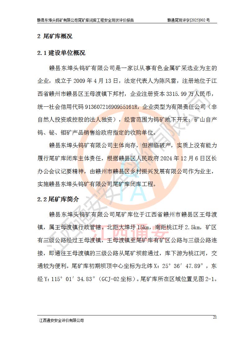 评价报告名称 | 赣县东埠头钨矿有限公司尾矿库闭库工程安全现状评价报告 | |||