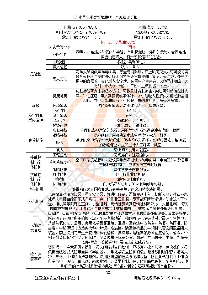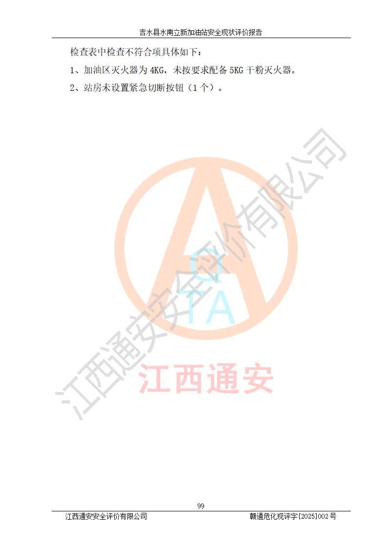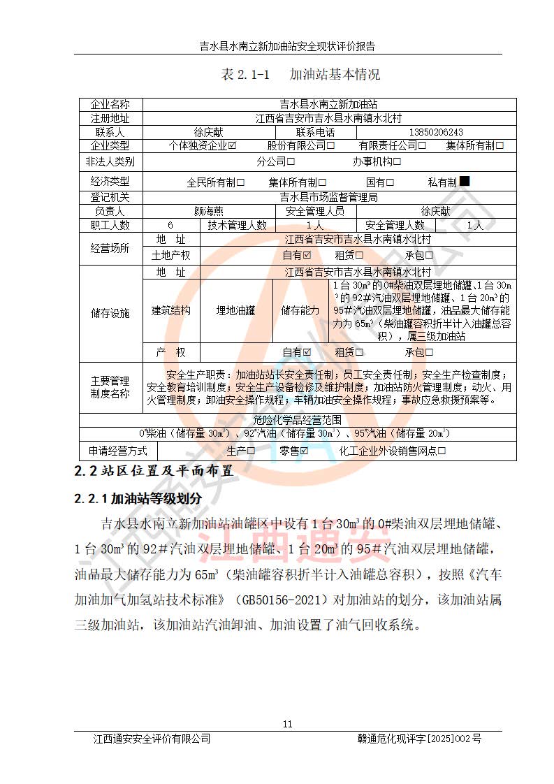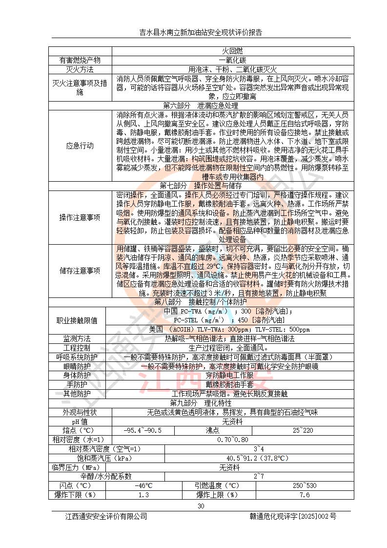 评价报告名称 | 吉水县水南立新加油站安全现状评价报告 | |||