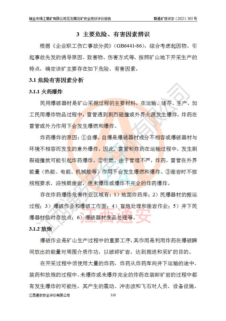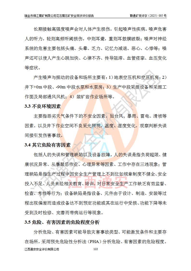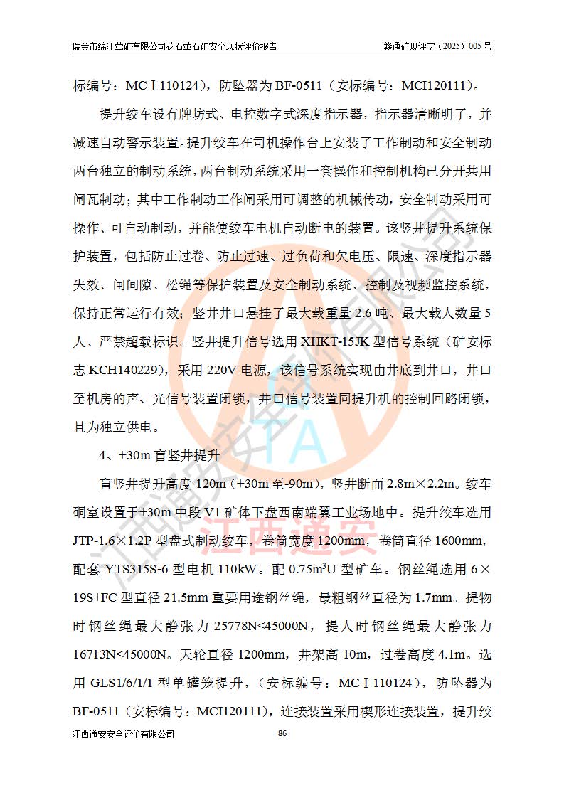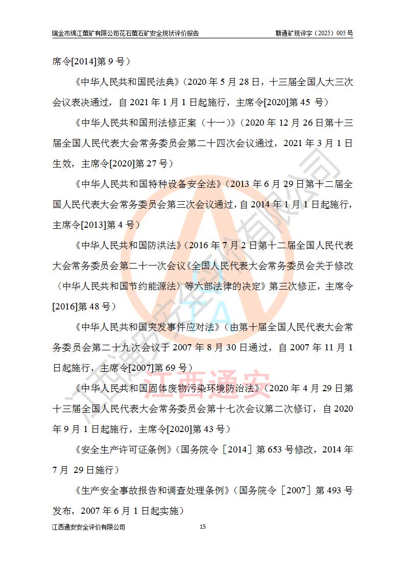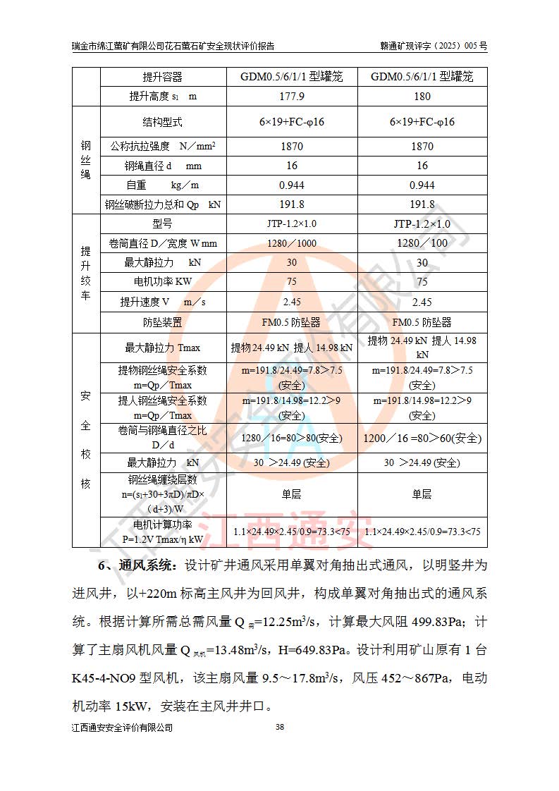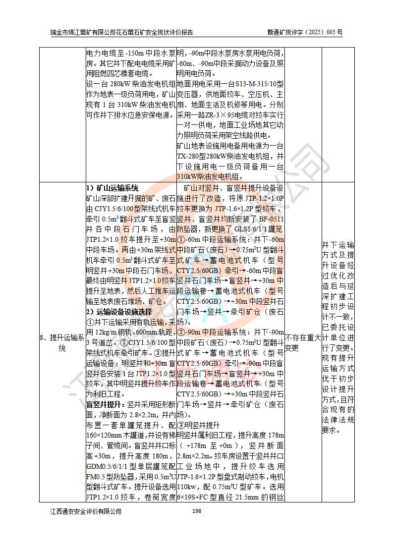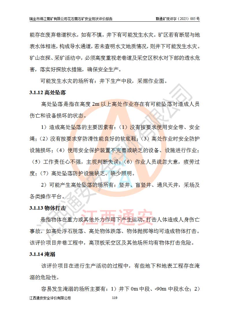 瑞金市绵江萤矿有限公司花石萤石矿区位于瑞金市南西215°方位直距30km处,矿区中心位置地理坐标为东经115°51′24″,北纬25°39′21″,行政区划属瑞金市谢坊镇管辖。 矿山前身为瑞金市金鑫矿产品实业有限公司花石萤矿。为了进一步稳固萤石矿产业链,2024年9月瑞金市绵江萤矿有限公司申请将瑞金市金鑫矿产品实业有限公司花石萤矿采矿权**至其公司。2025年4月6日,花石萤石矿完成了采矿权人**手续,并取得了新采矿许可证。 该萤石矿区开采始于上世纪九十年代,由当地民众在花石矿点和庙背坑矿点零星开采(庙背坑矿点位于花石矿点东侧,两个矿点矿体直线距离约1km,庙背坑矿点已停止采矿活动。本次评价对象为花石矿点)。本世纪初,经矿业秩序整顿、规范矿山开采,两矿点分别由不同采矿权人依法办理了采矿许可证,即庙背坑萤矿和花石萤石矿。2005年12月,根据赣州市人民**《赣市府办发〔2005〕14号》文件有关矿业权整合的指示精神要求,两个采矿权整合为一个采矿权人,即瑞金市金鑫矿产品实业有限公司,整合后采矿权面积2.4707km2,开采标高+220m~0m。整合后,2011年8月,花石萤石矿委托江西省冶金设计院有限责任公司编制了《瑞金市金鑫矿产品实业有限公司花石萤矿地下开采整改初步设计安全专篇》。整改设计开采对象为花石区段V1矿体,采用竖井+盲竖井联合开拓,主要井筒为SJ3竖井、MJ1盲竖井,SJ3竖井连接+125m中段,采用JTP-1.2×1.0型矿用提升绞车提升,MJ1盲竖井连接+65m中段、+83m中段,采用JTK-1.0×0.8型块式制动矿用提升绞车提升。设计开采深度+220m至+67m标高,共布置+125m、+83m、+65m三个中段;设计生产规模为4万吨/年,采矿方法选用浅孔留矿法。 根据整改设计要求,矿山经过近一年多的整改施工,2012年9月通过由原赣州市安全生产监督管理局组织的安全设施整改验收。2012年9月26日取得了由原江西省安全生产监督管理局延期换发的《安全生产许可证》(编号:FM安许证字[2005]M0033号),许可范围:萤石矿4万吨/年,竖井+盲竖井联合开拓,+67m中段地下开采。 由于原整改设计范围内(+67m以上中段)V1矿体资源储量无法使矿井达到持续稳定的生产接替,根据2011年11月264核工业大队《江西省瑞金市花石萤石矿资源储量核实报告》及矿山提交的2013年度资源储量动态检测报告。2013年4月,花石萤石矿又委托江西省冶金设计院有限责任公司为其编制了《瑞金市金鑫矿产品实业有限公司花石萤矿花石矿区地下开采改建工程初步设计安全专篇》。设计开采范围+83m~+0m标高;采用竖井开拓。设计新建开拓工程为新竖井及+83m、+40m、+0m三个中段。采矿方法为浅孔留矿法。 由于部分工程与设计不符。2014年10月,矿山委托江西省冶金设计院有限责任公司编制了《瑞金市金鑫矿产品实业有限公司花石萤矿花石矿区地下开采改建工程变更设计》,其中段布置变更为+30m、+0m中段;通风系统变更为以新竖井为进风井;采用SJ3北东已有的平峒(PD)及平硐内的人行、回风斜巷MXJ1、MXJ2 、MXJ3并配置相关工程后作为矿区北东翼矿体开采的北东翼回风系统。主扇安装于+190m中段回风道。 2015年9月,矿山改建工程安全设施通过了原江西省安全生产监督管理局组织专家组竣工验收,并取得了原江西省安监局延期换发的《安全生产许可证》(编号:FM安许证字[2005]M0033号),许可范围:萤石矿4万吨/年,竖井开拓,+30m、0m中段地下开采。 花石萤矿V1矿体经过多年开采后,原改建工程设计范围内(+0m以上中段)萤石矿资源储量日渐减少。为了扩大矿区资源储量,延长矿山服务年限,查明矿区深部萤石矿资源储量。2014年矿山申请了采矿权变更开采深度的请示。2015年1月16日矿山取得了原赣州市矿产资源管理局颁发的划定矿区范围批复(赣市矿划复[2015]0001号),划定矿区范围面积2.47km2,矿区范围由7个拐点圈定,开采深度由+220m~-150m。同年,矿山委托江西省核工业地质局二六四大队编制完成了《江西省瑞金市花石萤石矿区资源储量核实报告》并经过了赣州市金辉矿业技术服务有限公司评审(赣金辉储审字[2014]12号),原赣州市矿产资源管理局以“赣市矿储备字[2014]18号)”文对该报告备案。 为了使矿井达到持续稳定的生产接替,保持三级矿量平衡,2015年7月委托了江西省冶金设计院有限责任公司编制完成了《瑞金市金鑫矿产品实业有限公司花石萤矿花石区段地下开采延深扩建工程建设项目的可行性研究报告》,同年12月委托了赣州永安安全生产科技服务有限公司编制完成了《瑞金市金鑫矿产品实业有限公司花石萤矿花石区段地下开采延深扩建工程安全预评价报告》。2016年11月,矿山委托江西省冶金设计院有限责任公司编制完成了《瑞金市金鑫矿产品实业有限公司花石萤矿地下开采延深扩建工程初步设计及安全设施设计》,并于2017年4月13日通过原省安监局组织的专家评审,2017年7月10日由原江西省安全生产监督管理局下达了《关于瑞金市金鑫矿产品实业有限公司花石萤矿地下开采延深扩建工程安全设施设计审查意见》(赣安监非煤项目设审[2017]19号)。根据矿体赋存条件等因素,矿山深部扩建开拓工程设计采用竖井+盲竖井联合开拓,主要开采V1矿体,利用明竖井、+30m盲竖井作为主运输井。其中明竖井连接+30m、+0m两个中段;+30m盲竖井连接+0m、-30m、-60m、-90m、-120m、-150m六个中段。设计深部开拓共布置-30m、-60m、-90m、-120m、-150m五个中段。采矿方法