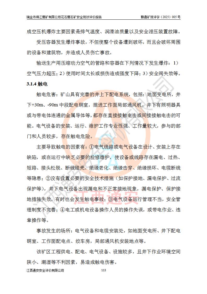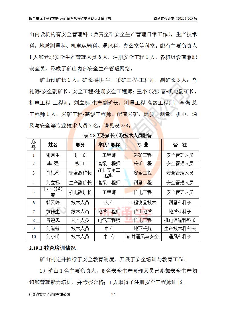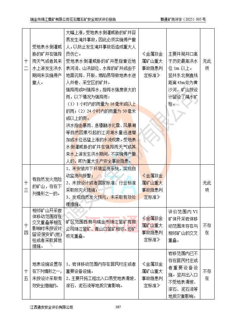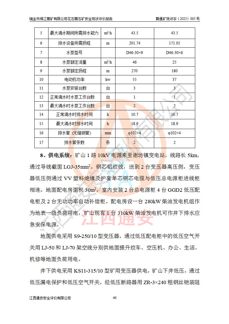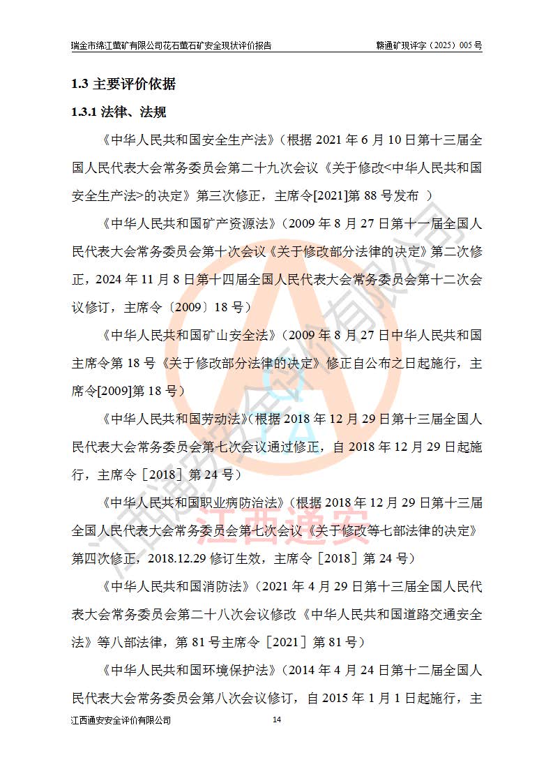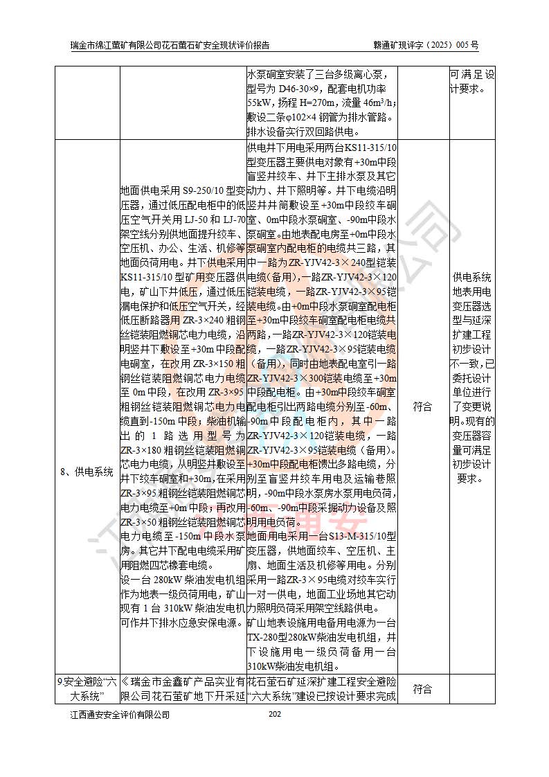 瑞金市绵江萤矿有限公司花石萤石矿区位于瑞金市南西215°方位直距30km处,矿区中心位置地理坐标为东经115°51′24″,北纬25°39′21″,行政区划属瑞金市谢坊镇管辖。 矿山前身为瑞金市金鑫矿产品实业有限公司花石萤矿。为了进一步稳固萤石矿产业链,2024年9月瑞金市绵江萤矿有限公司申请将瑞金市金鑫矿产品实业有限公司花石萤矿采矿权**至其公司。2025年4月6日,花石萤石矿完成了采矿权人**手续,并取得了新采矿许可证。 该萤石矿区开采始于上世纪九十年代,由当地民众在花石矿点和庙背坑矿点零星开采(庙背坑矿点位于花石矿点东侧,两个矿点矿体直线距离约1km,庙背坑矿点已停止采矿活动。本次评价对象为花石矿点)。本世纪初,经矿业秩序整顿、规范矿山开采,两矿点分别由不同采矿权人依法办理了采矿许可证,即庙背坑萤矿和花石萤石矿。2005年12月,根据赣州市人民**《赣市府办发〔2005〕14号》文件有关矿业权整合的指示精神要求,两个采矿权整合为一个采矿权人,即瑞金市金鑫矿产品实业有限公司,整合后采矿权面积2.4707km2,开采标高+220m~0m。整合后,2011年8月,花石萤石矿委托江西省冶金设计院有限责任公司编制了《瑞金市金鑫矿产品实业有限公司花石萤矿地下开采整改初步设计安全专篇》。整改设计开采对象为花石区段V1矿体,采用竖井+盲竖井联合开拓,主要井筒为SJ3竖井、MJ1盲竖井,SJ3竖井连接+125m中段,采用JTP-1.2×1.0型矿用提升绞车提升,MJ1盲竖井连接+65m中段、+83m中段,采用JTK-1.0×0.8型块式制动矿用提升绞车提升。设计开采深度+220m至+67m标高,共布置+125m、+83m、+65m三个中段;设计生产规模为4万吨/年,采矿方法选用浅孔留矿法。 根据整改设计要求,矿山经过近一年多的整改施工,2012年9月通过由原赣州市安全生产监督管理局组织的安全设施整改验收。2012年9月26日取得了由原江西省安全生产监督管理局延期换发的《安全生产许可证》(编号:FM安许证字[2005]M0033号),许可范围:萤石矿4万吨/年,竖井+盲竖井联合开拓,+67m中段地下开采。 由于原整改设计范围内(+67m以上中段)V1矿体资源储量无法使矿井达到持续稳定的生产接替,根据2011年11月264核工业大队《江西省瑞金市花石萤石矿资源储量核实报告》及矿山提交的2013年度资源储量动态检测报告。2013年4月,花石萤石矿又委托江西省冶金设计院有限责任公司为其编制了《瑞金市金鑫矿产品实业有限公司花石萤矿花石矿区地下开采改建工程初步设计安全专篇》。设计开采范围+83m~+0m标高;采用竖井开拓。设计新建开拓工程为新竖井及+83m、+40m、+0m三个中段。采矿方法为浅孔留矿法。 由于部分工程与设计不符。2014年10月,矿山委托江西省冶金设计院有限责任公司编制了《瑞金市金鑫矿产品实业有限公司花石萤矿花石矿区地下开采改建工程变更设计》,其中段布置变更为+30m、+0m中段;通风系统变更为以新竖井为进风井;采用SJ3北东已有的平峒(PD)及平硐内的人行、回风斜巷MXJ1、MXJ2 、MXJ3并配置相关工程后作为矿区北东翼矿体开采的北东翼回风系统。主扇安装于+190m中段回风道。 2015年9月,矿山改建工程安全设施通过了原江西省安全生产监督管理局组织专家组竣工验收,并取得了原江西省安监局延期换发的《安全生产许可证》(编号:FM安许证字[2005]M0033号),许可范围:萤石矿4万吨/年,竖井开拓,+30m、0m中段地下开采。 花石萤矿V1矿体经过多年开采后,原改建工程设计范围内(+0m以上中段)萤石矿资源储量日渐减少。为了扩大矿区资源储量,延长矿山服务年限,查明矿区深部萤石矿资源储量。2014年矿山申请了采矿权变更开采深度的请示。2015年1月16日矿山取得了原赣州市矿产资源管理局颁发的划定矿区范围批复(赣市矿划复[2015]0001号),划定矿区范围面积2.47km2,矿区范围由7个拐点圈定,开采深度由+220m~-150m。同年,矿山委托江西省核工业地质局二六四大队编制完成了《江西省瑞金市花石萤石矿区资源储量核实报告》并经过了赣州市金辉矿业技术服务有限公司评审(赣金辉储审字[2014]12号),原赣州市矿产资源管理局以“赣市矿储备字[2014]18号)”文对该报告备案。 为了使矿井达到持续稳定的生产接替,保持三级矿量平衡,2015年7月委托了江西省冶金设计院有限责任公司编制完成了《瑞金市金鑫矿产品实业有限公司花石萤矿花石区段地下开采延深扩建工程建设项目的可行性研究报告》,同年12月委托了赣州永安安全生产科技服务有限公司编制完成了《瑞金市金鑫矿产品实业有限公司花石萤矿花石区段地下开采延深扩建工程安全预评价报告》。2016年11月,矿山委托江西省冶金设计院有限责任公司编制完成了《瑞金市金鑫矿产品实业有限公司花石萤矿地下开采延深扩建工程初步设计及安全设施设计》,并于2017年4月13日通过原省安监局组织的专家评审,2017年7月10日由原江西省安全生产监督管理局下达了《关于瑞金市金鑫矿产品实业有限公司花石萤矿地下开采延深扩建工程安全设施设计审查意见》(赣安监非煤项目设审[2017]19号)。根据矿体赋存条件等因素,矿山深部扩建开拓工程设计采用竖井+盲竖井联合开拓,主要开采V1矿体,利用明竖井、+30m盲竖井作为主运输井。其中明竖井连接+30m、+0m两个中段;+30m盲竖井连接+0m、-30m、-60m、-90m、-120m、-150m六个中段。设计深部开拓共布置-30m、-60m、-90m、-120m、-150m五个中段。采矿方法