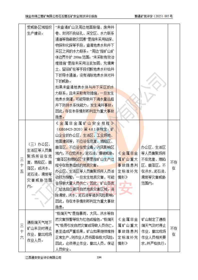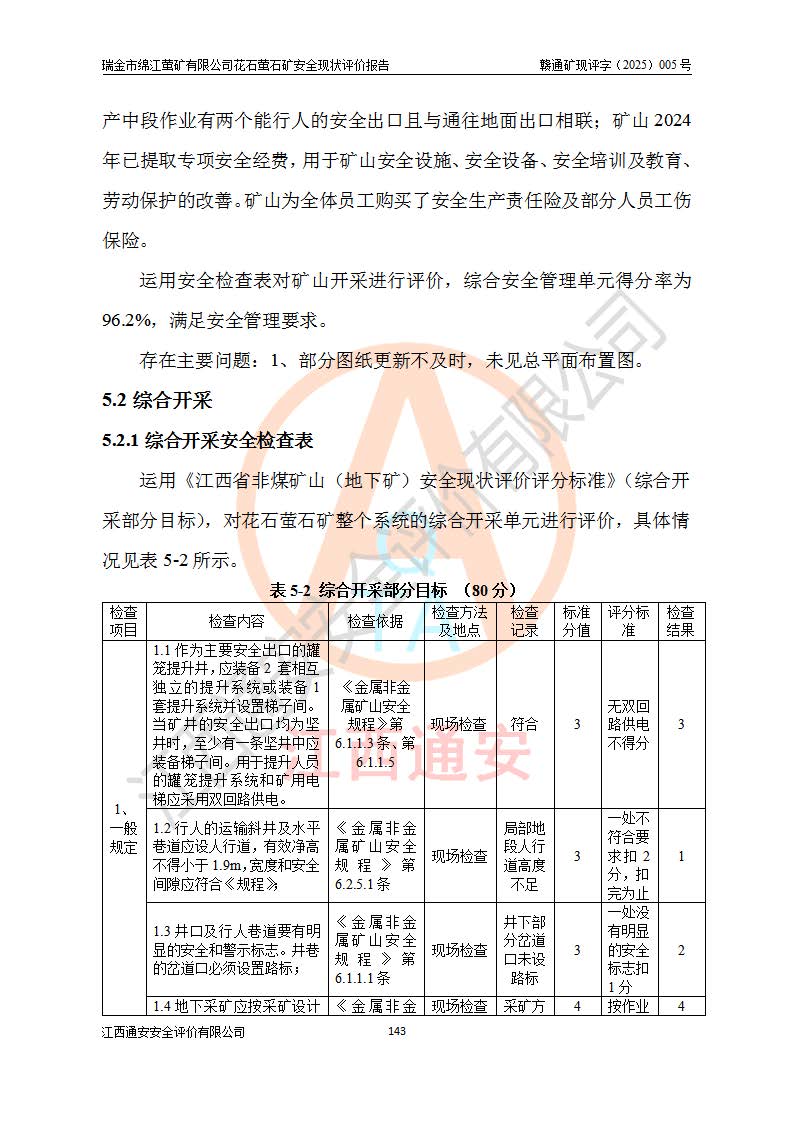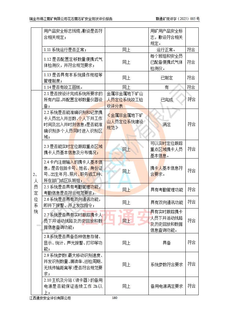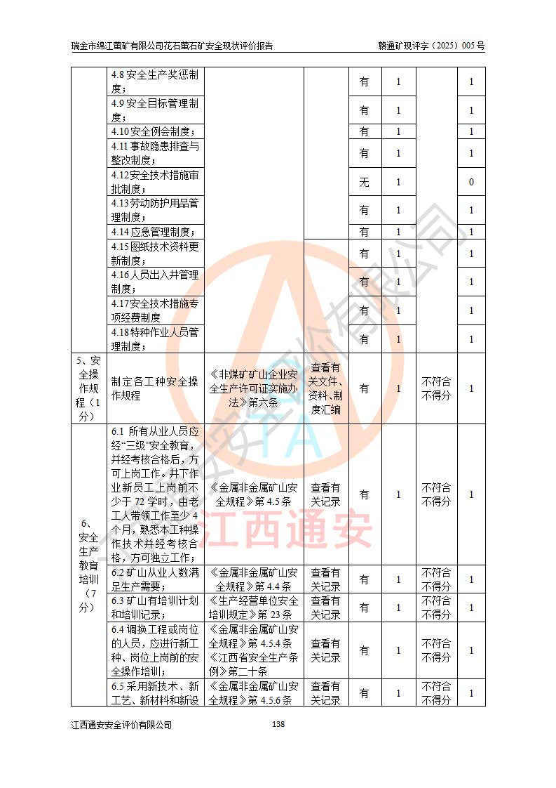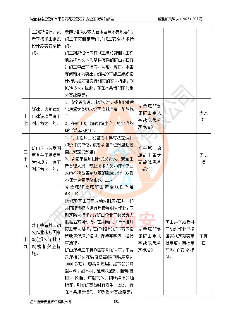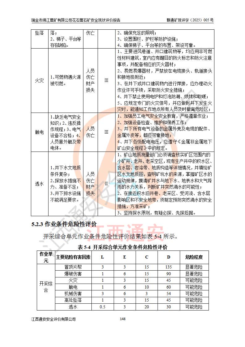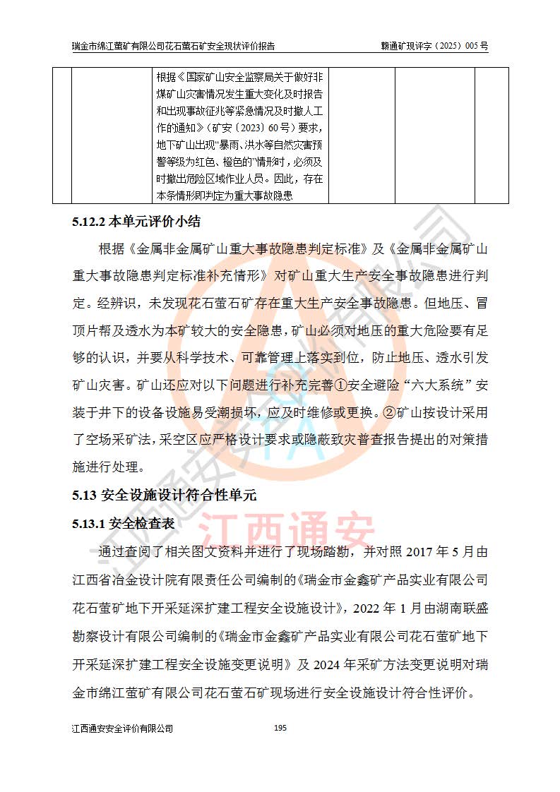 瑞金市绵江萤矿有限公司花石萤石矿区位于瑞金市南西215°方位直距30km处,矿区中心位置地理坐标为东经115°51′24″,北纬25°39′21″,行政区划属瑞金市谢坊镇管辖。 矿山前身为瑞金市金鑫矿产品实业有限公司花石萤矿。为了进一步稳固萤石矿产业链,2024年9月瑞金市绵江萤矿有限公司申请将瑞金市金鑫矿产品实业有限公司花石萤矿采矿权**至其公司。2025年4月6日,花石萤石矿完成了采矿权人**手续,并取得了新采矿许可证。 该萤石矿区开采始于上世纪九十年代,由当地民众在花石矿点和庙背坑矿点零星开采(庙背坑矿点位于花石矿点东侧,两个矿点矿体直线距离约1km,庙背坑矿点已停止采矿活动。本次评价对象为花石矿点)。本世纪初,经矿业秩序整顿、规范矿山开采,两矿点分别由不同采矿权人依法办理了采矿许可证,即庙背坑萤矿和花石萤石矿。2005年12月,根据赣州市人民**《赣市府办发〔2005〕14号》文件有关矿业权整合的指示精神要求,两个采矿权整合为一个采矿权人,即瑞金市金鑫矿产品实业有限公司,整合后采矿权面积2.4707km2,开采标高+220m~0m。整合后,2011年8月,花石萤石矿委托江西省冶金设计院有限责任公司编制了《瑞金市金鑫矿产品实业有限公司花石萤矿地下开采整改初步设计安全专篇》。整改设计开采对象为花石区段V1矿体,采用竖井+盲竖井联合开拓,主要井筒为SJ3竖井、MJ1盲竖井,SJ3竖井连接+125m中段,采用JTP-1.2×1.0型矿用提升绞车提升,MJ1盲竖井连接+65m中段、+83m中段,采用JTK-1.0×0.8型块式制动矿用提升绞车提升。设计开采深度+220m至+67m标高,共布置+125m、+83m、+65m三个中段;设计生产规模为4万吨/年,采矿方法选用浅孔留矿法。 根据整改设计要求,矿山经过近一年多的整改施工,2012年9月通过由原赣州市安全生产监督管理局组织的安全设施整改验收。2012年9月26日取得了由原江西省安全生产监督管理局延期换发的《安全生产许可证》(编号:FM安许证字[2005]M0033号),许可范围:萤石矿4万吨/年,竖井+盲竖井联合开拓,+67m中段地下开采。 由于原整改设计范围内(+67m以上中段)V1矿体资源储量无法使矿井达到持续稳定的生产接替,根据2011年11月264核工业大队《江西省瑞金市花石萤石矿资源储量核实报告》及矿山提交的2013年度资源储量动态检测报告。2013年4月,花石萤石矿又委托江西省冶金设计院有限责任公司为其编制了《瑞金市金鑫矿产品实业有限公司花石萤矿花石矿区地下开采改建工程初步设计安全专篇》。设计开采范围+83m~+0m标高;采用竖井开拓。设计新建开拓工程为新竖井及+83m、+40m、+0m三个中段。采矿方法为浅孔留矿法。 由于部分工程与设计不符。2014年10月,矿山委托江西省冶金设计院有限责任公司编制了《瑞金市金鑫矿产品实业有限公司花石萤矿花石矿区地下开采改建工程变更设计》,其中段布置变更为+30m、+0m中段;通风系统变更为以新竖井为进风井;采用SJ3北东已有的平峒(PD)及平硐内的人行、回风斜巷MXJ1、MXJ2 、MXJ3并配置相关工程后作为矿区北东翼矿体开采的北东翼回风系统。主扇安装于+190m中段回风道。 2015年9月,矿山改建工程安全设施通过了原江西省安全生产监督管理局组织专家组竣工验收,并取得了原江西省安监局延期换发的《安全生产许可证》(编号:FM安许证字[2005]M0033号),许可范围:萤石矿4万吨/年,竖井开拓,+30m、0m中段地下开采。 花石萤矿V1矿体经过多年开采后,原改建工程设计范围内(+0m以上中段)萤石矿资源储量日渐减少。为了扩大矿区资源储量,延长矿山服务年限,查明矿区深部萤石矿资源储量。2014年矿山申请了采矿权变更开采深度的请示。2015年1月16日矿山取得了原赣州市矿产资源管理局颁发的划定矿区范围批复(赣市矿划复[2015]0001号),划定矿区范围面积2.47km2,矿区范围由7个拐点圈定,开采深度由+220m~-150m。同年,矿山委托江西省核工业地质局二六四大队编制完成了《江西省瑞金市花石萤石矿区资源储量核实报告》并经过了赣州市金辉矿业技术服务有限公司评审(赣金辉储审字[2014]12号),原赣州市矿产资源管理局以“赣市矿储备字[2014]18号)”文对该报告备案。 为了使矿井达到持续稳定的生产接替,保持三级矿量平衡,2015年7月委托了江西省冶金设计院有限责任公司编制完成了《瑞金市金鑫矿产品实业有限公司花石萤矿花石区段地下开采延深扩建工程建设项目的可行性研究报告》,同年12月委托了赣州永安安全生产科技服务有限公司编制完成了《瑞金市金鑫矿产品实业有限公司花石萤矿花石区段地下开采延深扩建工程安全预评价报告》。2016年11月,矿山委托江西省冶金设计院有限责任公司编制完成了《瑞金市金鑫矿产品实业有限公司花石萤矿地下开采延深扩建工程初步设计及安全设施设计》,并于2017年4月13日通过原省安监局组织的专家评审,2017年7月10日由原江西省安全生产监督管理局下达了《关于瑞金市金鑫矿产品实业有限公司花石萤矿地下开采延深扩建工程安全设施设计审查意见》(赣安监非煤项目设审[2017]19号)。根据矿体赋存条件等因素,矿山深部扩建开拓工程设计采用竖井+盲竖井联合开拓,主要开采V1矿体,利用明竖井、+30m盲竖井作为主运输井。其中明竖井连接+30m、+0m两个中段;+30m盲竖井连接+0m、-30m、-60m、-90m、-120m、-150m六个中段。设计深部开拓共布置-30m、-60m、-90m、-120m、-150m五个中段。采矿方法