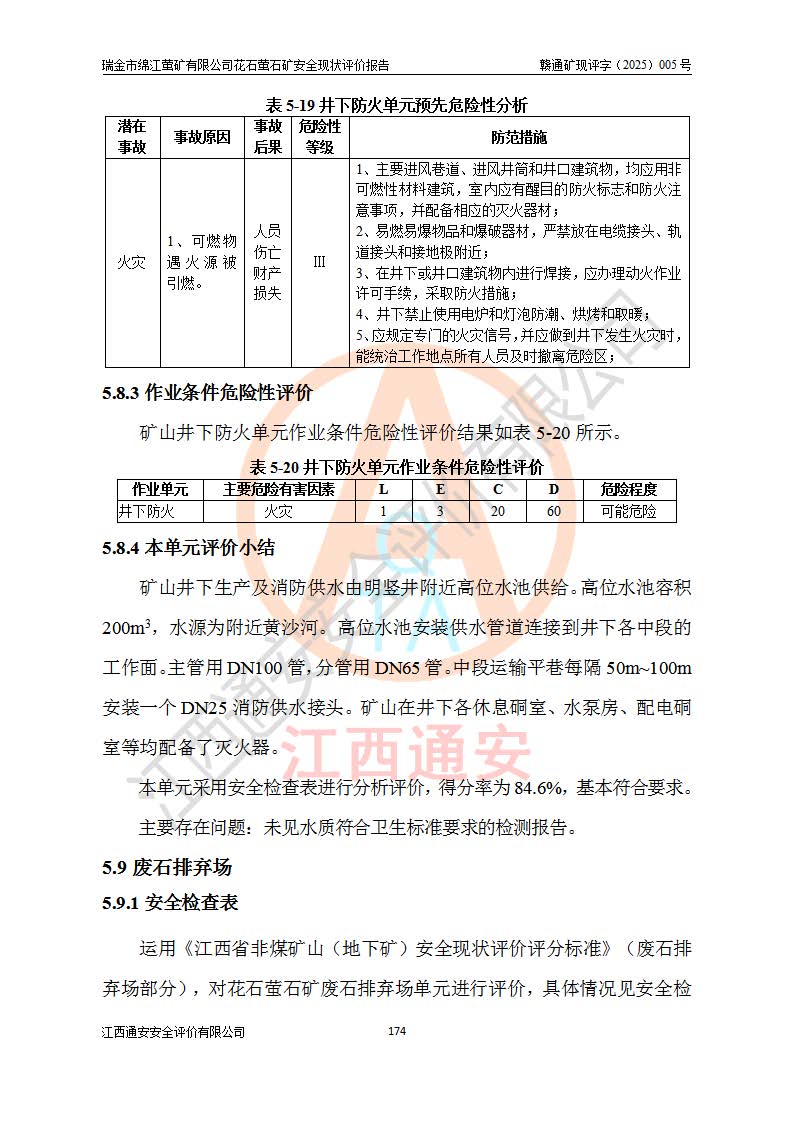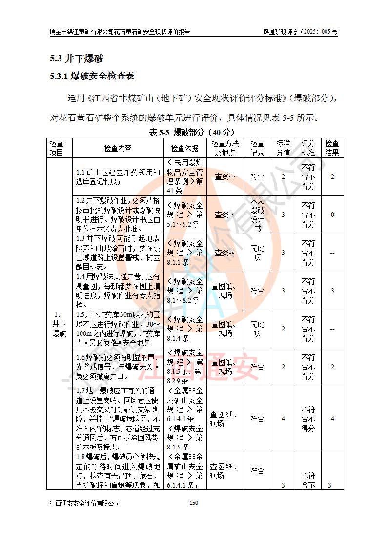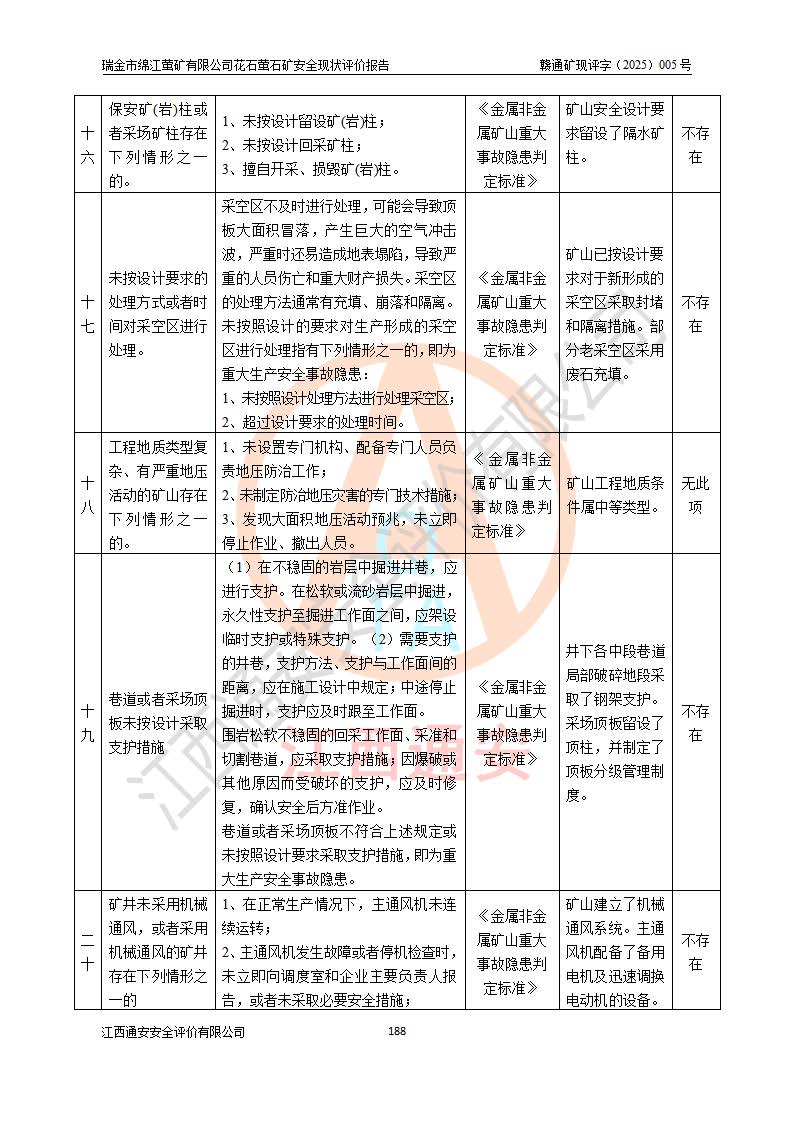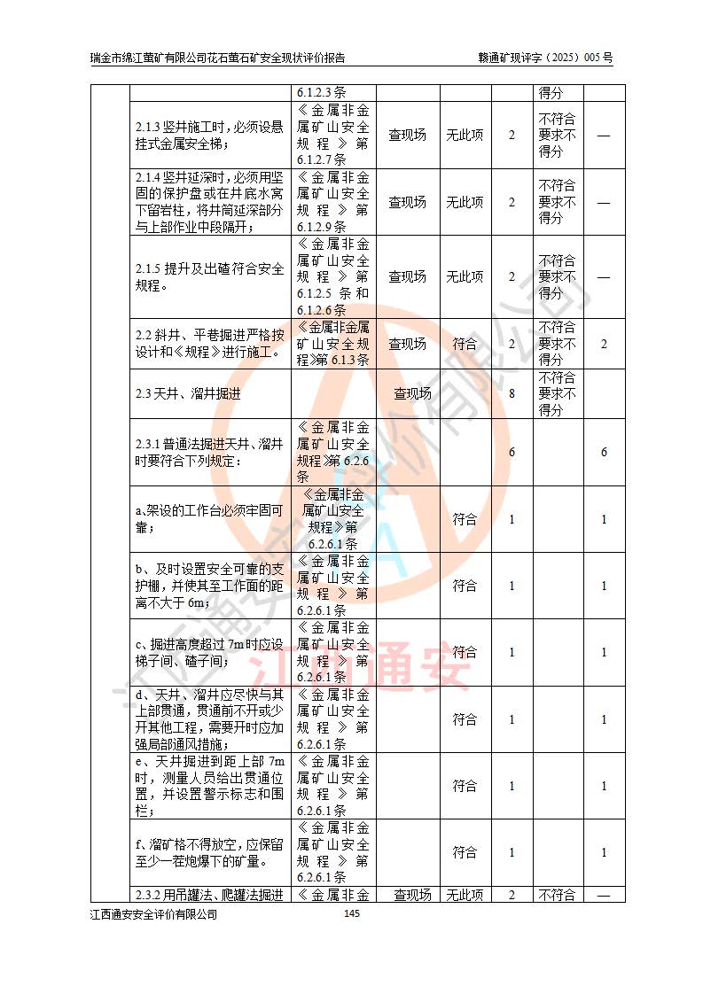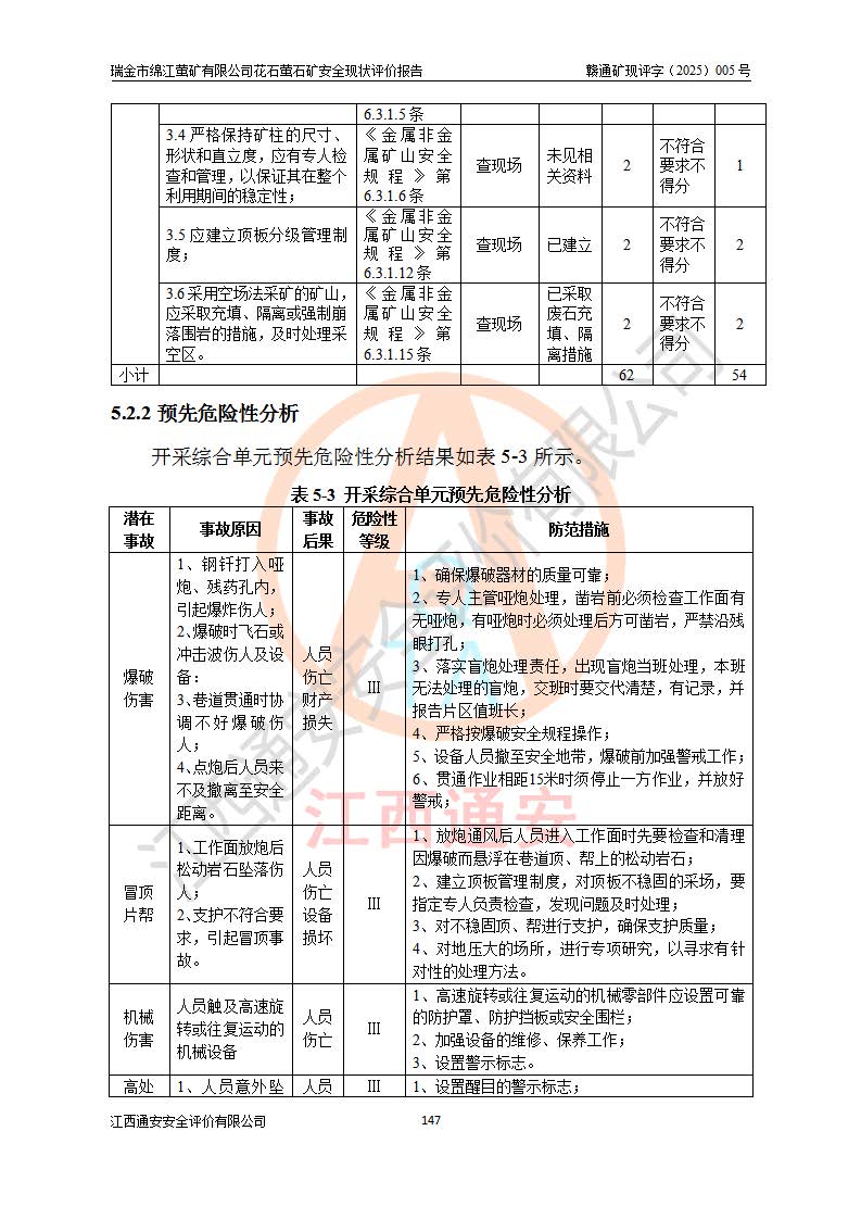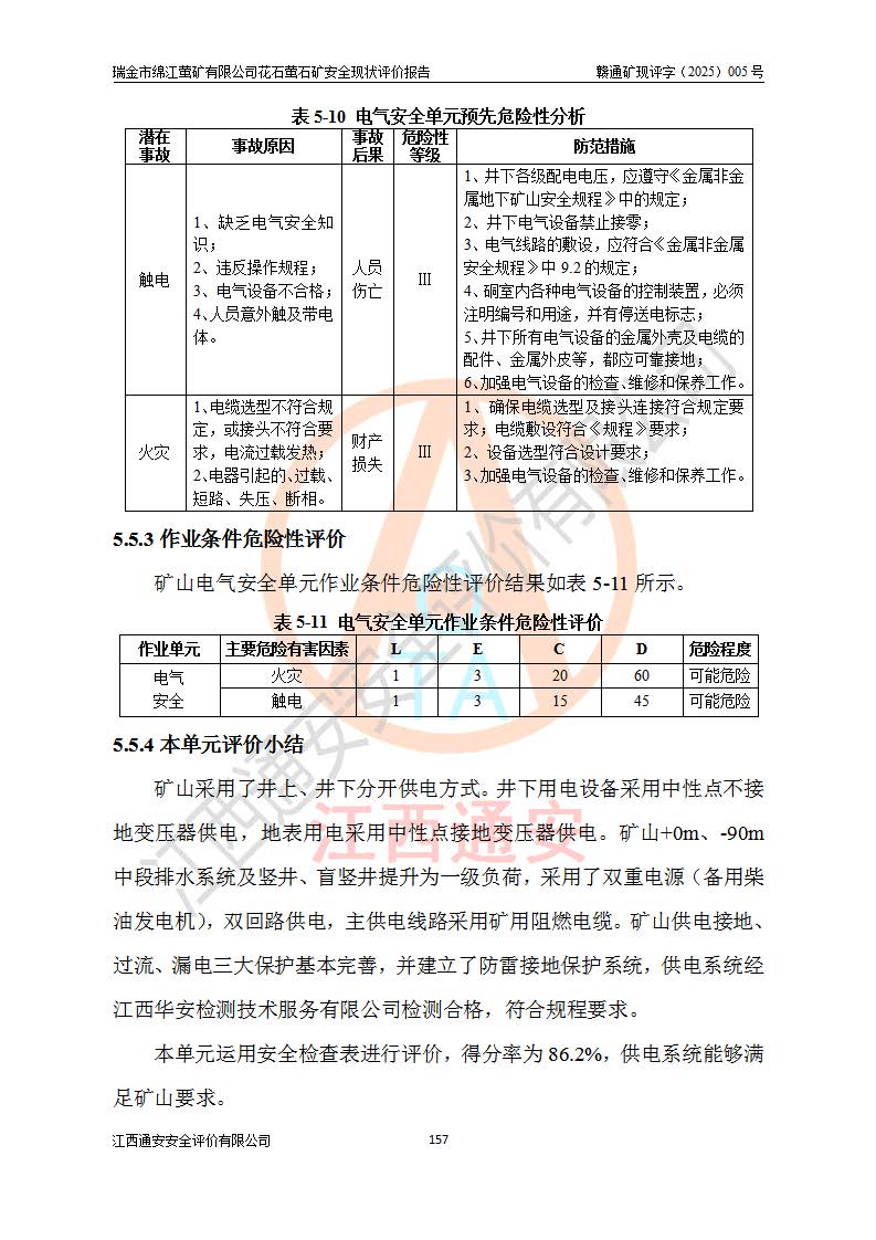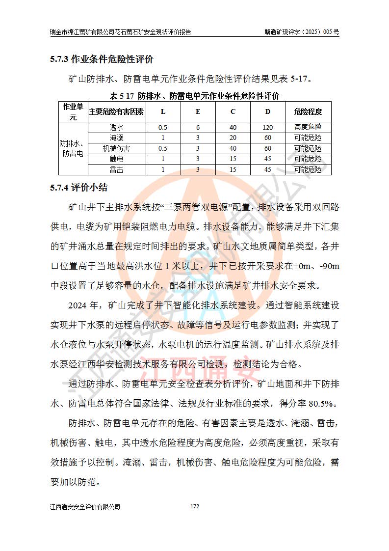 瑞金市绵江萤矿有限公司花石萤石矿区位于瑞金市南西215°方位直距30km处,矿区中心位置地理坐标为东经115°51′24″,北纬25°39′21″,行政区划属瑞金市谢坊镇管辖。 矿山前身为瑞金市金鑫矿产品实业有限公司花石萤矿。为了进一步稳固萤石矿产业链,2024年9月瑞金市绵江萤矿有限公司申请将瑞金市金鑫矿产品实业有限公司花石萤矿采矿权**至其公司。2025年4月6日,花石萤石矿完成了采矿权人**手续,并取得了新采矿许可证。 该萤石矿区开采始于上世纪九十年代,由当地民众在花石矿点和庙背坑矿点零星开采(庙背坑矿点位于花石矿点东侧,两个矿点矿体直线距离约1km,庙背坑矿点已停止采矿活动。本次评价对象为花石矿点)。本世纪初,经矿业秩序整顿、规范矿山开采,两矿点分别由不同采矿权人依法办理了采矿许可证,即庙背坑萤矿和花石萤石矿。2005年12月,根据赣州市人民**《赣市府办发〔2005〕14号》文件有关矿业权整合的指示精神要求,两个采矿权整合为一个采矿权人,即瑞金市金鑫矿产品实业有限公司,整合后采矿权面积2.4707km2,开采标高+220m~0m。整合后,2011年8月,花石萤石矿委托江西省冶金设计院有限责任公司编制了《瑞金市金鑫矿产品实业有限公司花石萤矿地下开采整改初步设计安全专篇》。整改设计开采对象为花石区段V1矿体,采用竖井+盲竖井联合开拓,主要井筒为SJ3竖井、MJ1盲竖井,SJ3竖井连接+125m中段,采用JTP-1.2×1.0型矿用提升绞车提升,MJ1盲竖井连接+65m中段、+83m中段,采用JTK-1.0×0.8型块式制动矿用提升绞车提升。设计开采深度+220m至+67m标高,共布置+125m、+83m、+65m三个中段;设计生产规模为4万吨/年,采矿方法选用浅孔留矿法。 根据整改设计要求,矿山经过近一年多的整改施工,2012年9月通过由原赣州市安全生产监督管理局组织的安全设施整改验收。2012年9月26日取得了由原江西省安全生产监督管理局延期换发的《安全生产许可证》(编号:FM安许证字[2005]M0033号),许可范围:萤石矿4万吨/年,竖井+盲竖井联合开拓,+67m中段地下开采。 由于原整改设计范围内(+67m以上中段)V1矿体资源储量无法使矿井达到持续稳定的生产接替,根据2011年11月264核工业大队《江西省瑞金市花石萤石矿资源储量核实报告》及矿山提交的2013年度资源储量动态检测报告。2013年4月,花石萤石矿又委托江西省冶金设计院有限责任公司为其编制了《瑞金市金鑫矿产品实业有限公司花石萤矿花石矿区地下开采改建工程初步设计安全专篇》。设计开采范围+83m~+0m标高;采用竖井开拓。设计新建开拓工程为新竖井及+83m、+40m、+0m三个中段。采矿方法为浅孔留矿法。 由于部分工程与设计不符。2014年10月,矿山委托江西省冶金设计院有限责任公司编制了《瑞金市金鑫矿产品实业有限公司花石萤矿花石矿区地下开采改建工程变更设计》,其中段布置变更为+30m、+0m中段;通风系统变更为以新竖井为进风井;采用SJ3北东已有的平峒(PD)及平硐内的人行、回风斜巷MXJ1、MXJ2 、MXJ3并配置相关工程后作为矿区北东翼矿体开采的北东翼回风系统。主扇安装于+190m中段回风道。 2015年9月,矿山改建工程安全设施通过了原江西省安全生产监督管理局组织专家组竣工验收,并取得了原江西省安监局延期换发的《安全生产许可证》(编号:FM安许证字[2005]M0033号),许可范围:萤石矿4万吨/年,竖井开拓,+30m、0m中段地下开采。 花石萤矿V1矿体经过多年开采后,原改建工程设计范围内(+0m以上中段)萤石矿资源储量日渐减少。为了扩大矿区资源储量,延长矿山服务年限,查明矿区深部萤石矿资源储量。2014年矿山申请了采矿权变更开采深度的请示。2015年1月16日矿山取得了原赣州市矿产资源管理局颁发的划定矿区范围批复(赣市矿划复[2015]0001号),划定矿区范围面积2.47km2,矿区范围由7个拐点圈定,开采深度由+220m~-150m。同年,矿山委托江西省核工业地质局二六四大队编制完成了《江西省瑞金市花石萤石矿区资源储量核实报告》并经过了赣州市金辉矿业技术服务有限公司评审(赣金辉储审字[2014]12号),原赣州市矿产资源管理局以“赣市矿储备字[2014]18号)”文对该报告备案。 为了使矿井达到持续稳定的生产接替,保持三级矿量平衡,2015年7月委托了江西省冶金设计院有限责任公司编制完成了《瑞金市金鑫矿产品实业有限公司花石萤矿花石区段地下开采延深扩建工程建设项目的可行性研究报告》,同年12月委托了赣州永安安全生产科技服务有限公司编制完成了《瑞金市金鑫矿产品实业有限公司花石萤矿花石区段地下开采延深扩建工程安全预评价报告》。2016年11月,矿山委托江西省冶金设计院有限责任公司编制完成了《瑞金市金鑫矿产品实业有限公司花石萤矿地下开采延深扩建工程初步设计及安全设施设计》,并于2017年4月13日通过原省安监局组织的专家评审,2017年7月10日由原江西省安全生产监督管理局下达了《关于瑞金市金鑫矿产品实业有限公司花石萤矿地下开采延深扩建工程安全设施设计审查意见》(赣安监非煤项目设审[2017]19号)。根据矿体赋存条件等因素,矿山深部扩建开拓工程设计采用竖井+盲竖井联合开拓,主要开采V1矿体,利用明竖井、+30m盲竖井作为主运输井。其中明竖井连接+30m、+0m两个中段;+30m盲竖井连接+0m、-30m、-60m、-90m、-120m、-150m六个中段。设计深部开拓共布置-30m、-60m、-90m、-120m、-150m五个中段。采矿方法