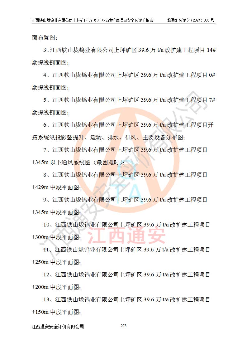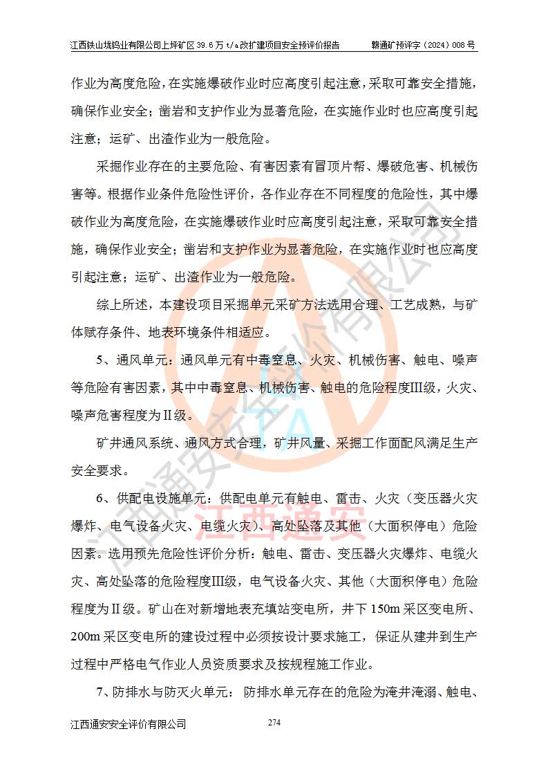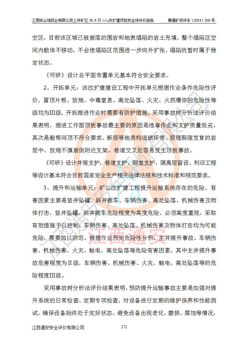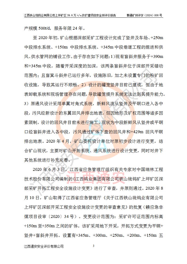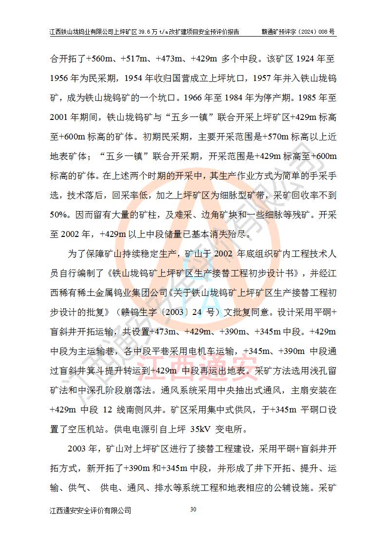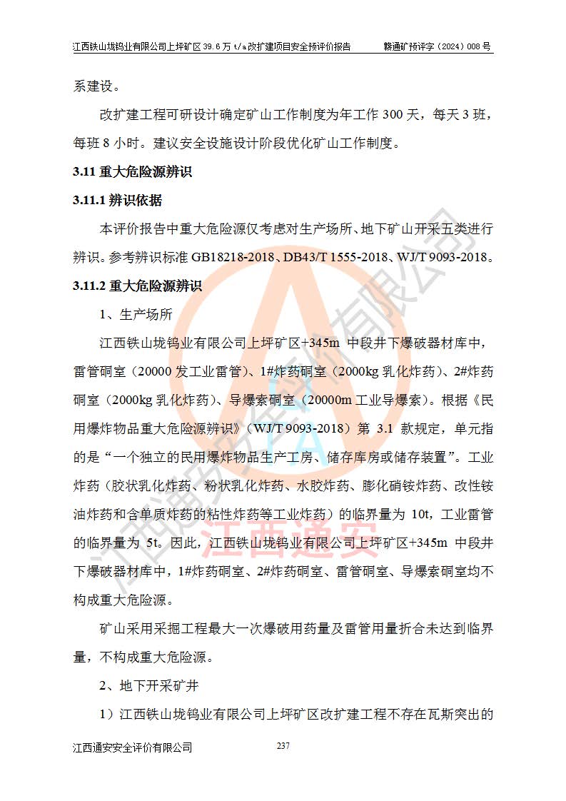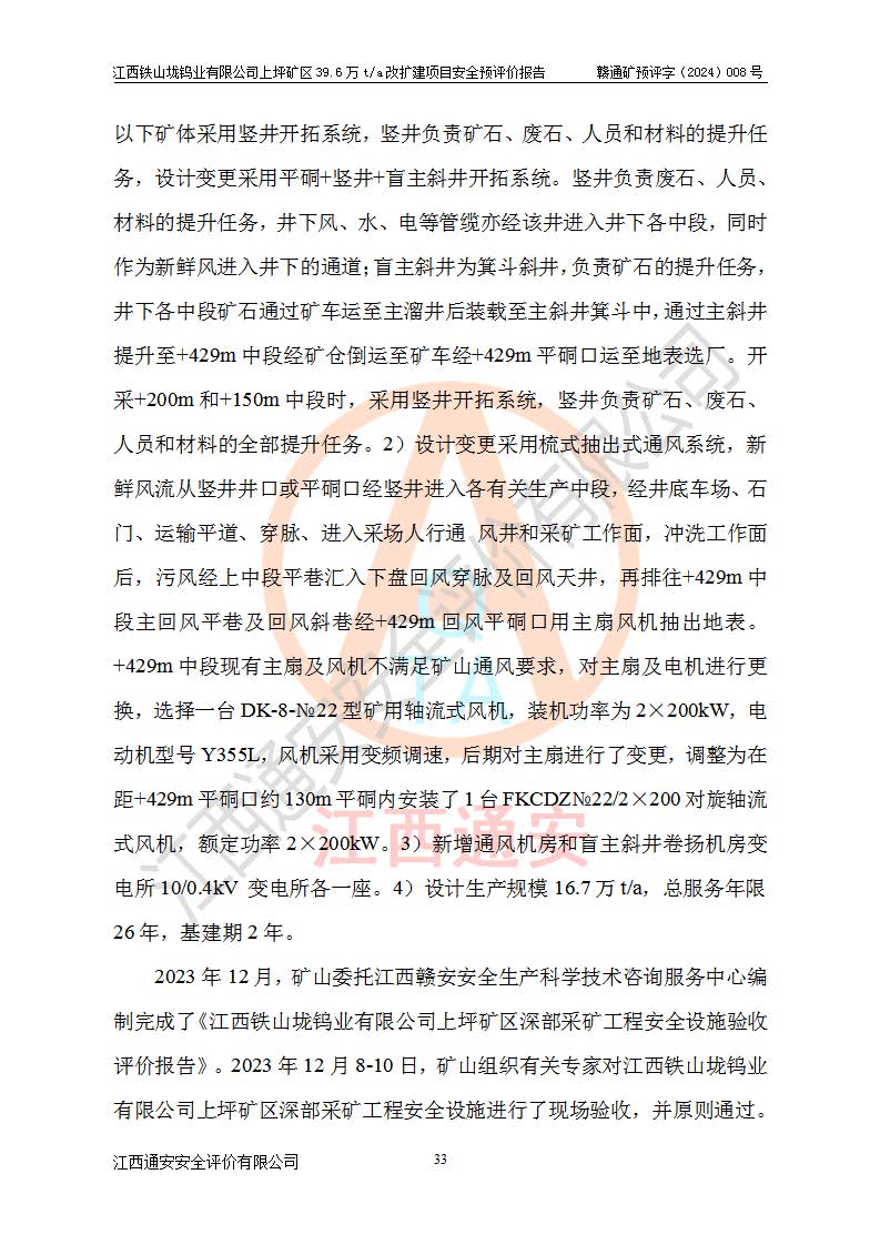 项目名称 | 江西铁山垅钨业有限公司上坪矿区39.6万t/a改扩建项目安全预评价报告 | ||||