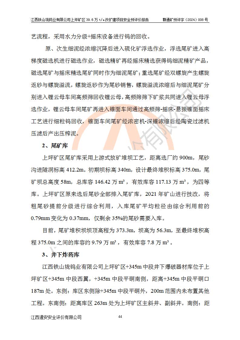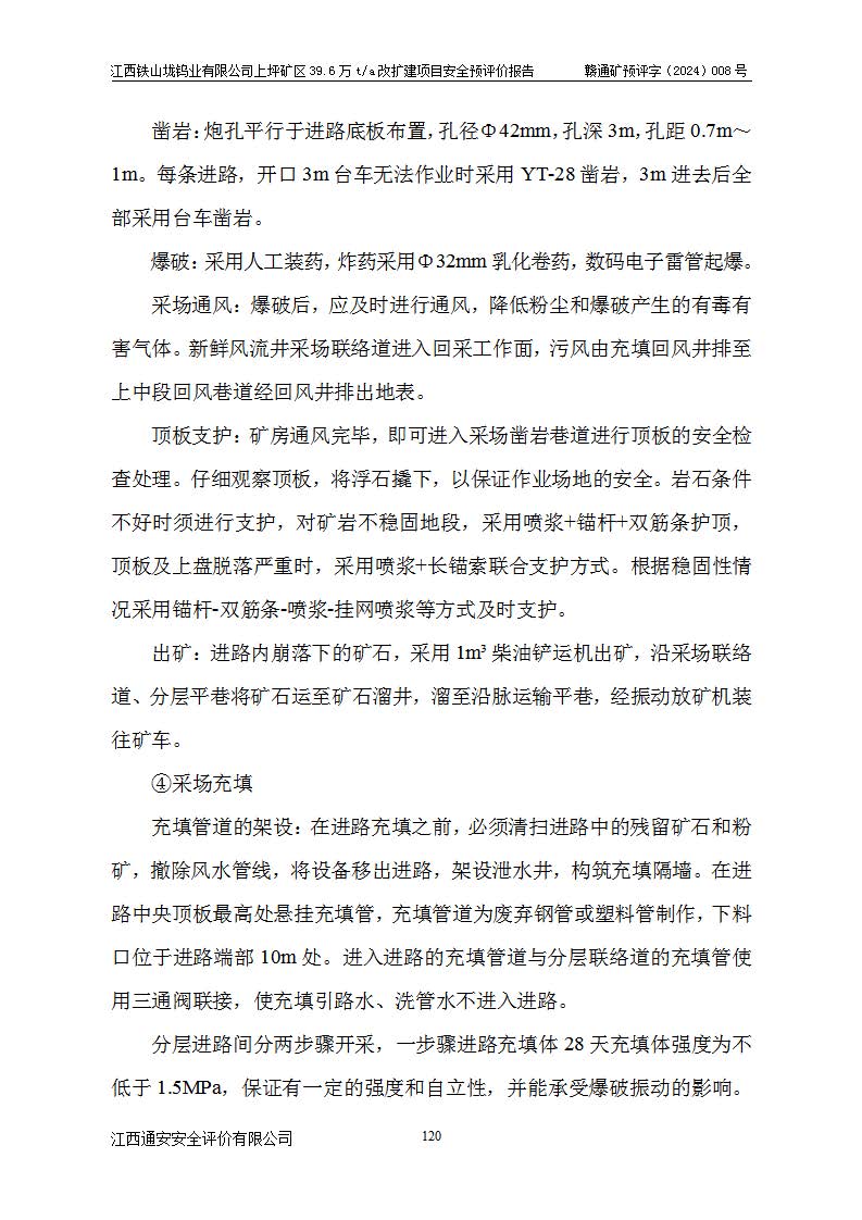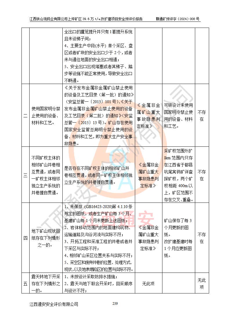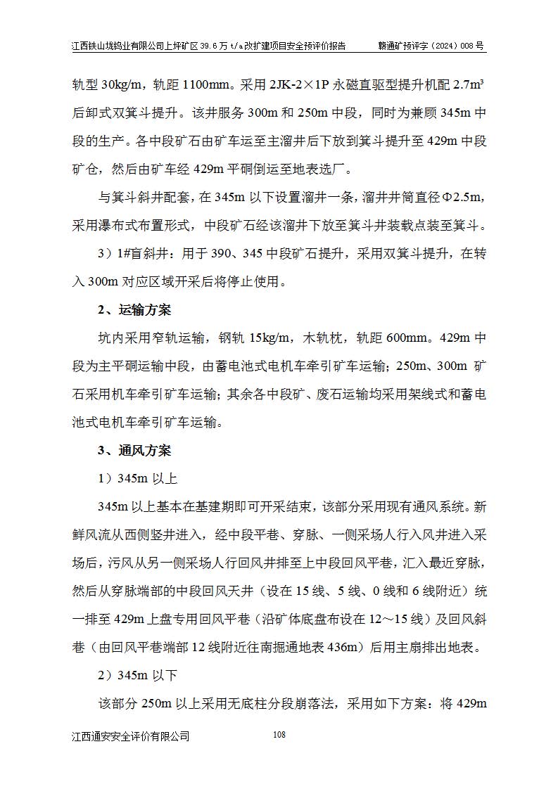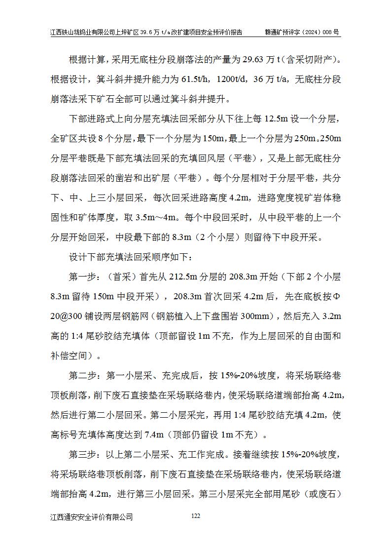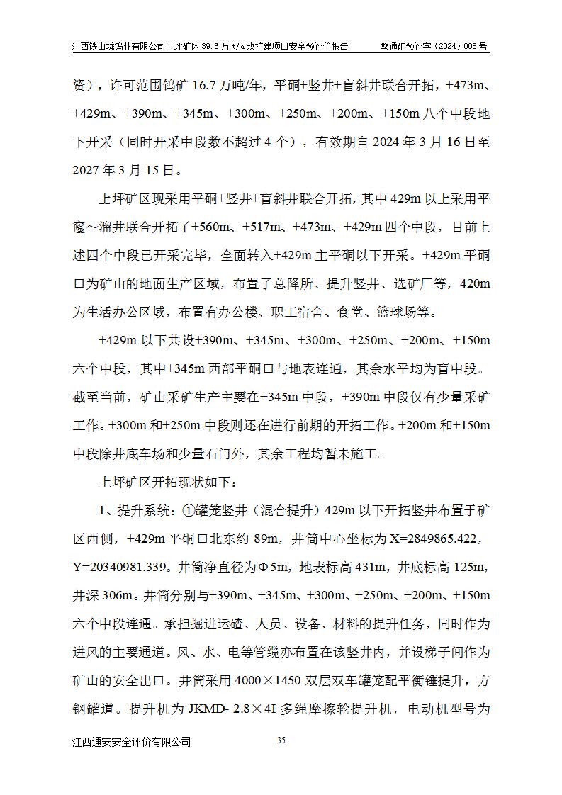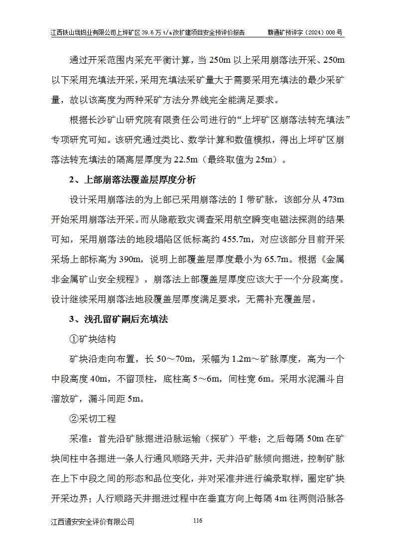 项目名称 | 江西铁山垅钨业有限公司上坪矿区39.6万t/a改扩建项目安全预评价报告 | ||||