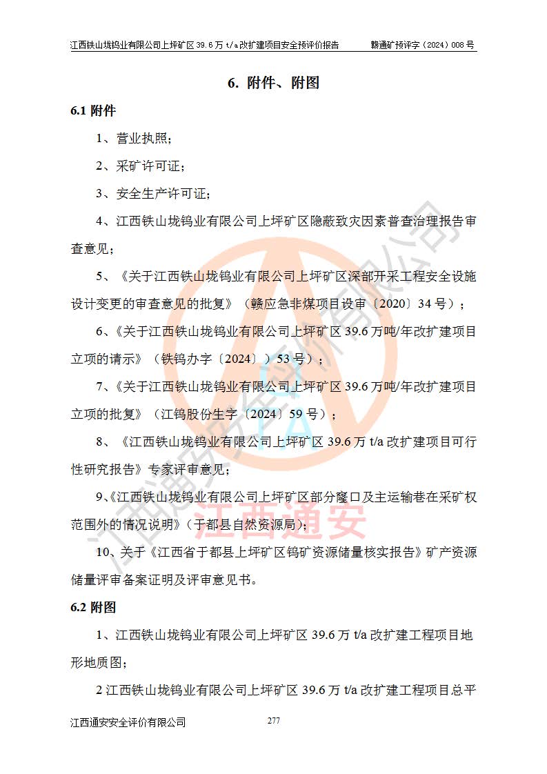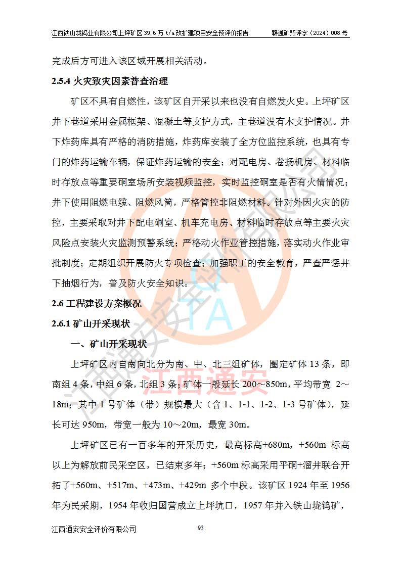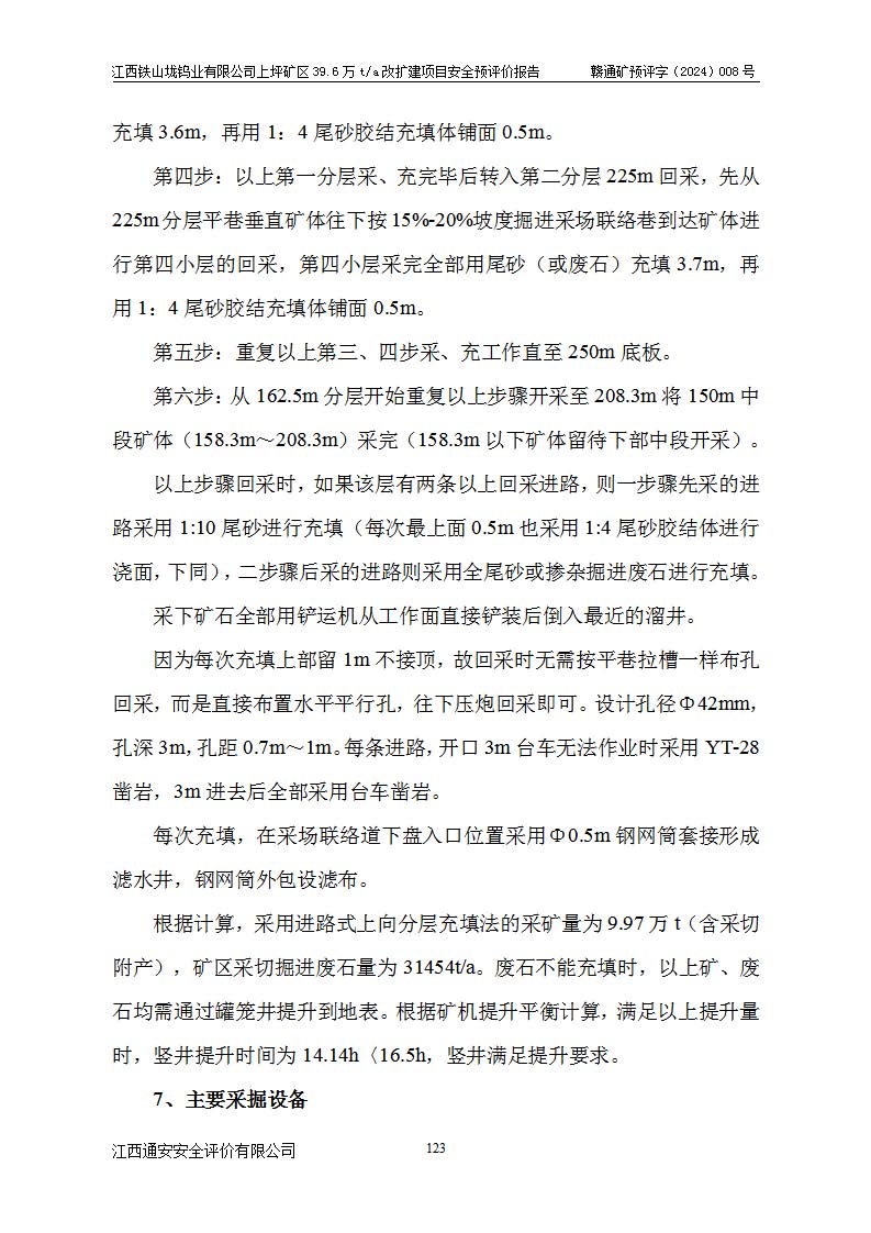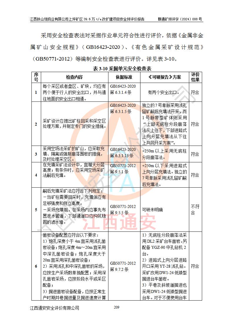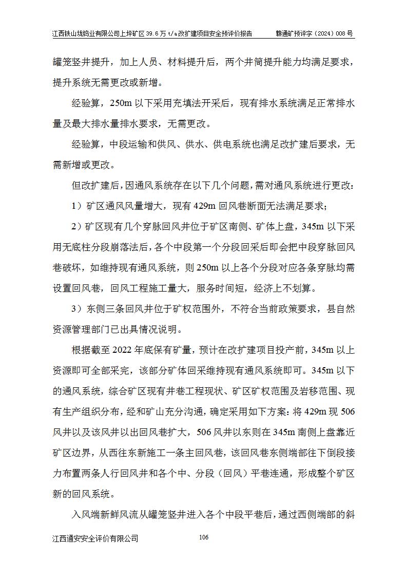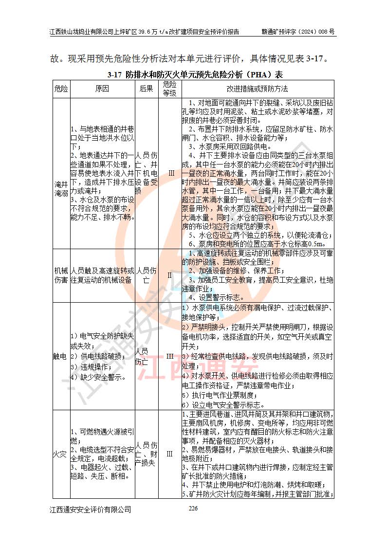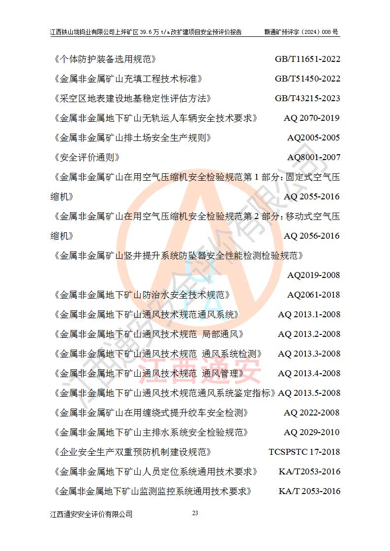 项目名称 | 江西铁山垅钨业有限公司上坪矿区39.6万t/a改扩建项目安全预评价报告 | ||||
