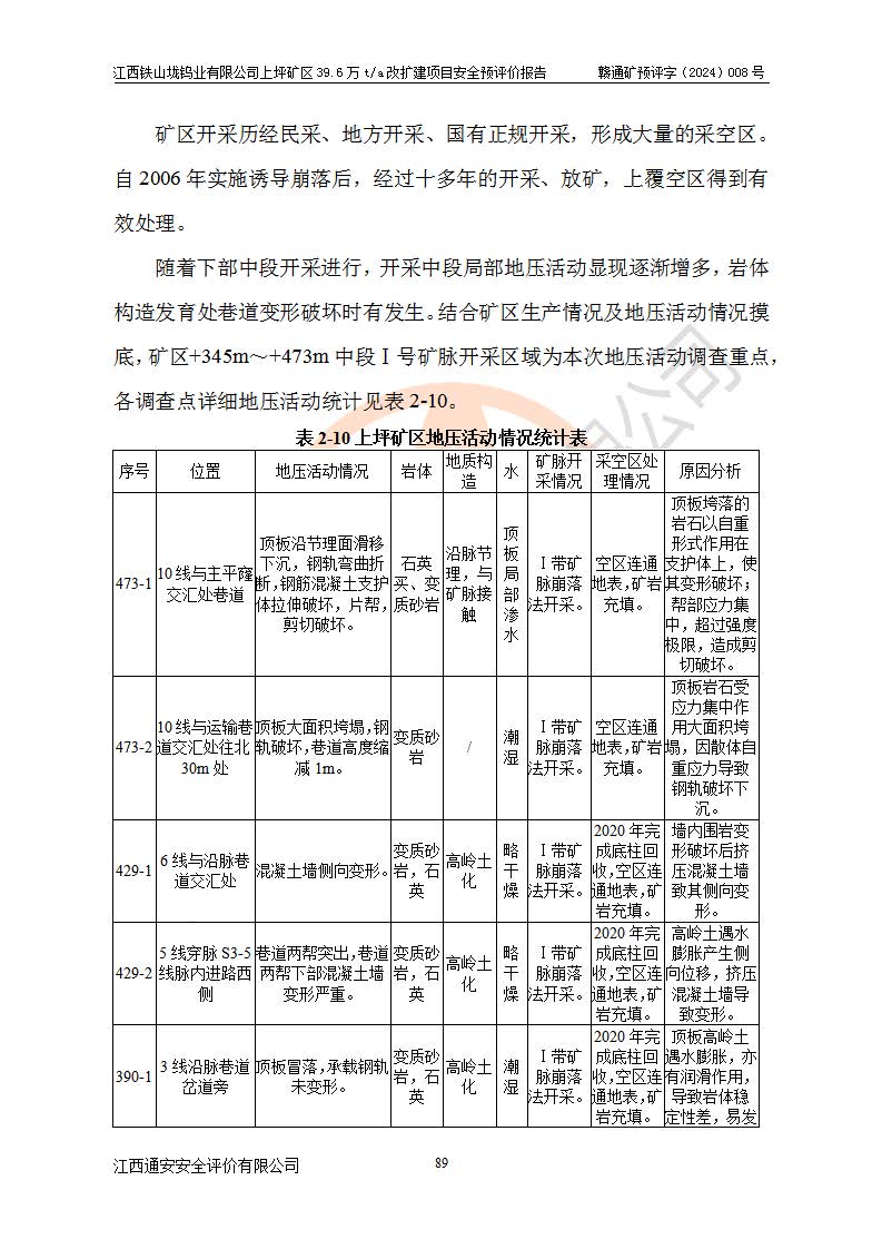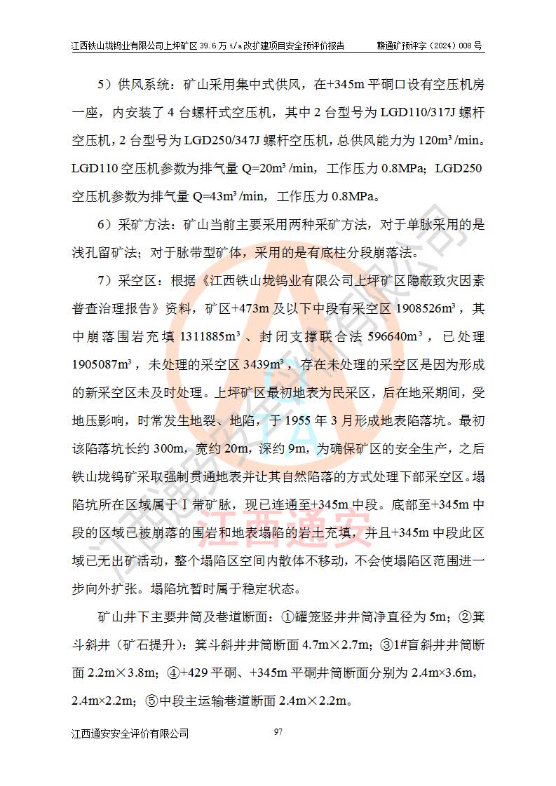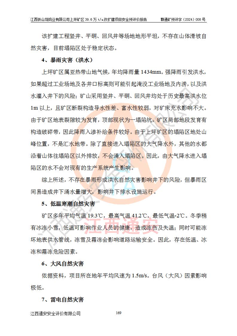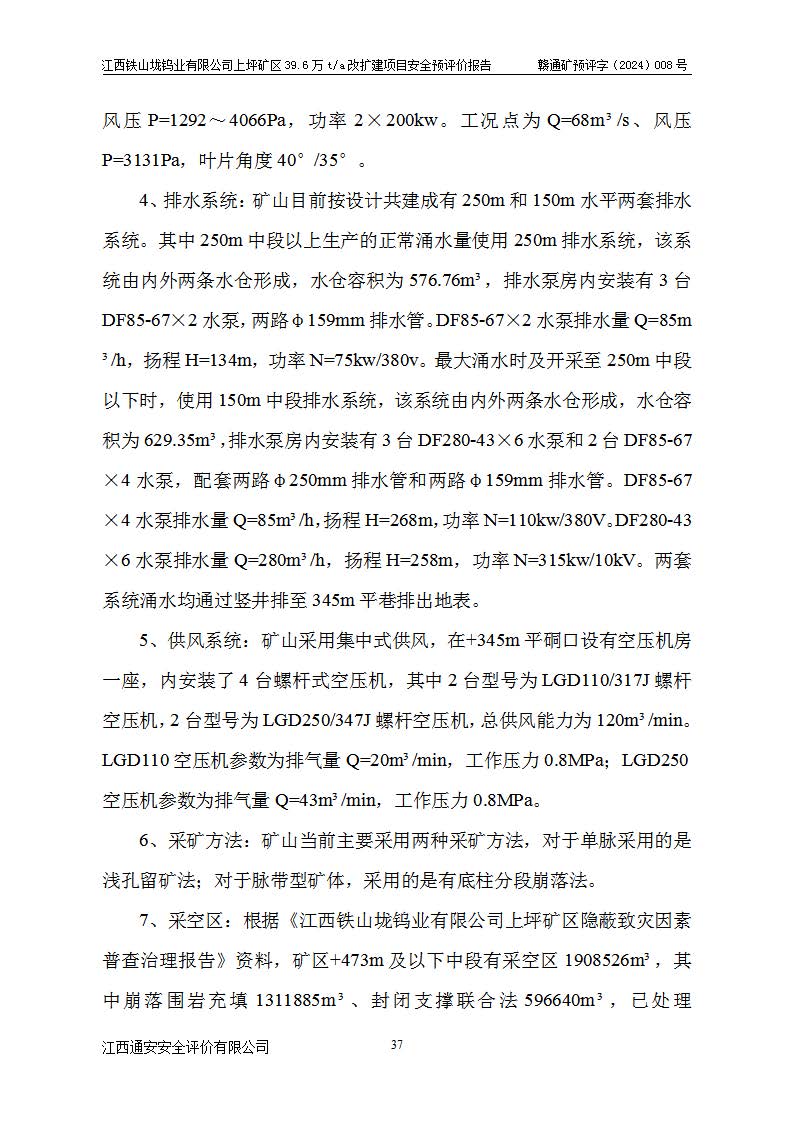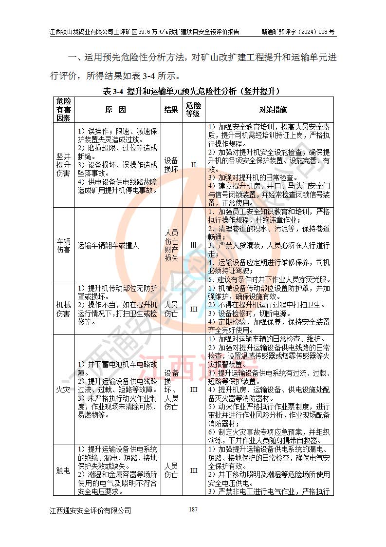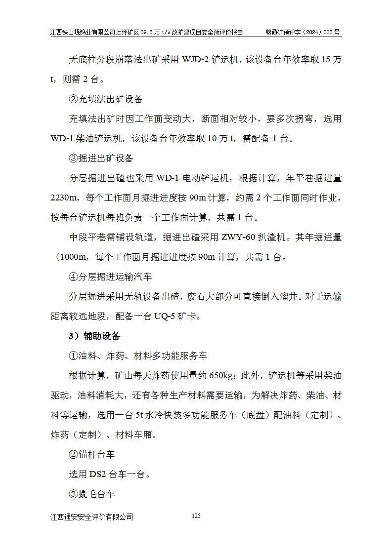 项目名称 | 江西铁山垅钨业有限公司上坪矿区39.6万t/a改扩建项目安全预评价报告 | ||||