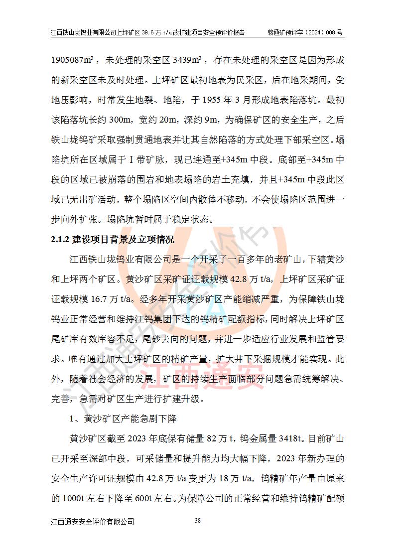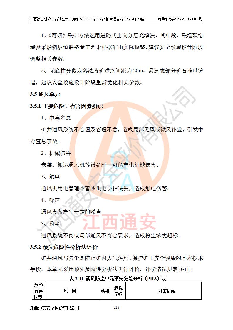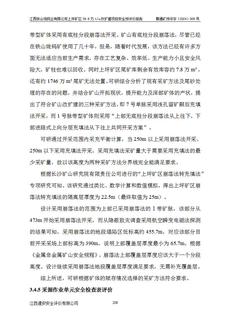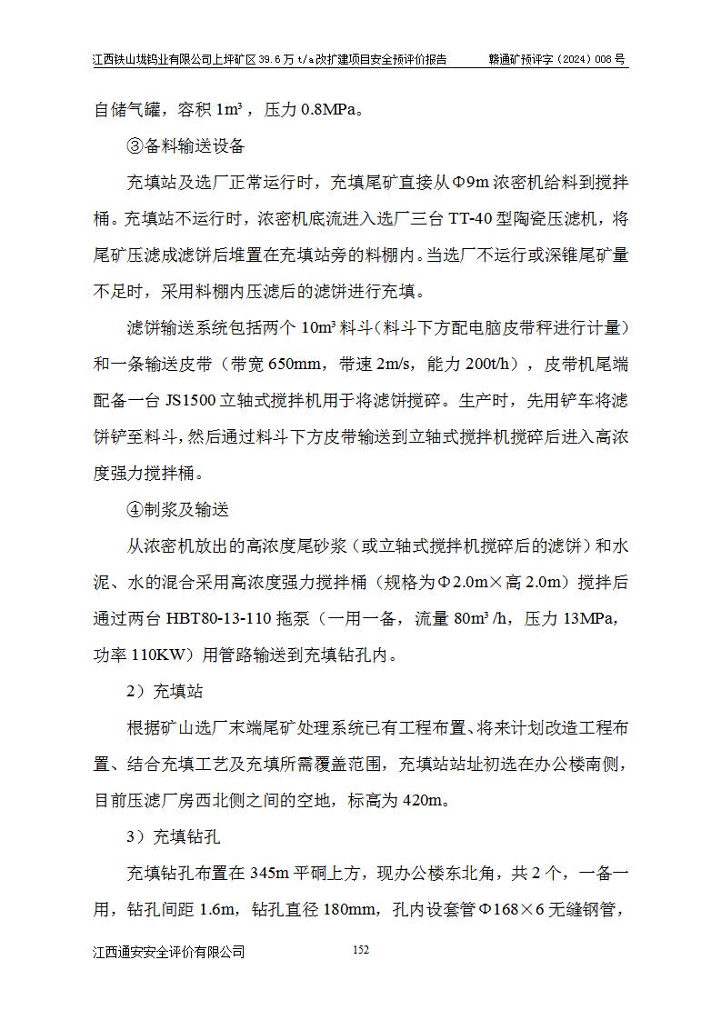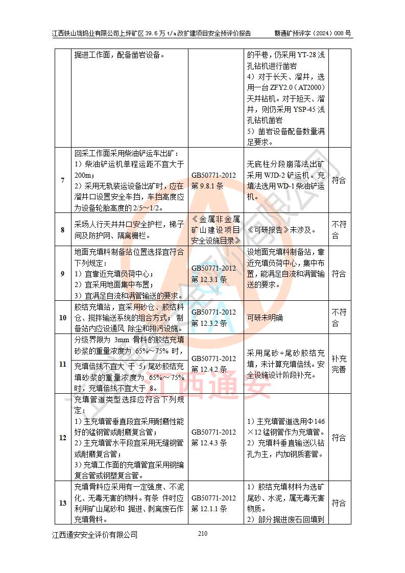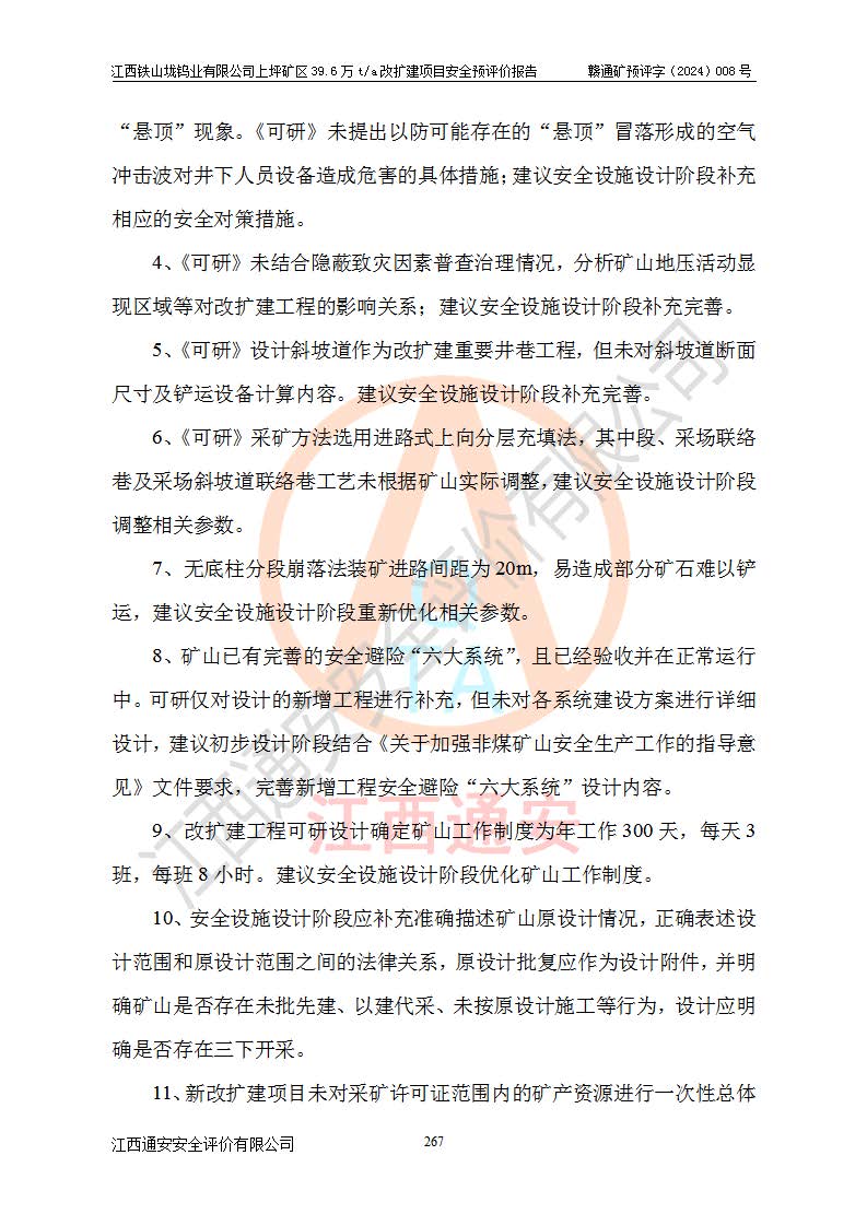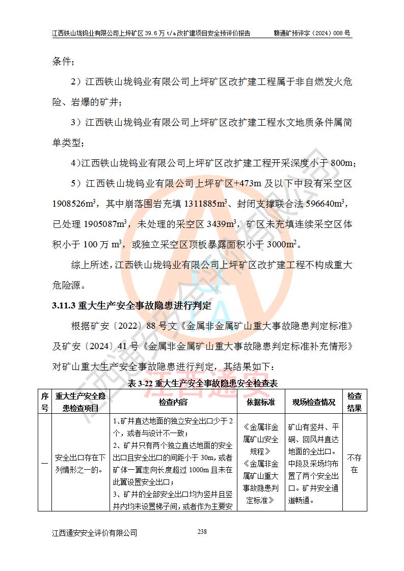 项目名称 | 江西铁山垅钨业有限公司上坪矿区39.6万t/a改扩建项目安全预评价报告 | ||||