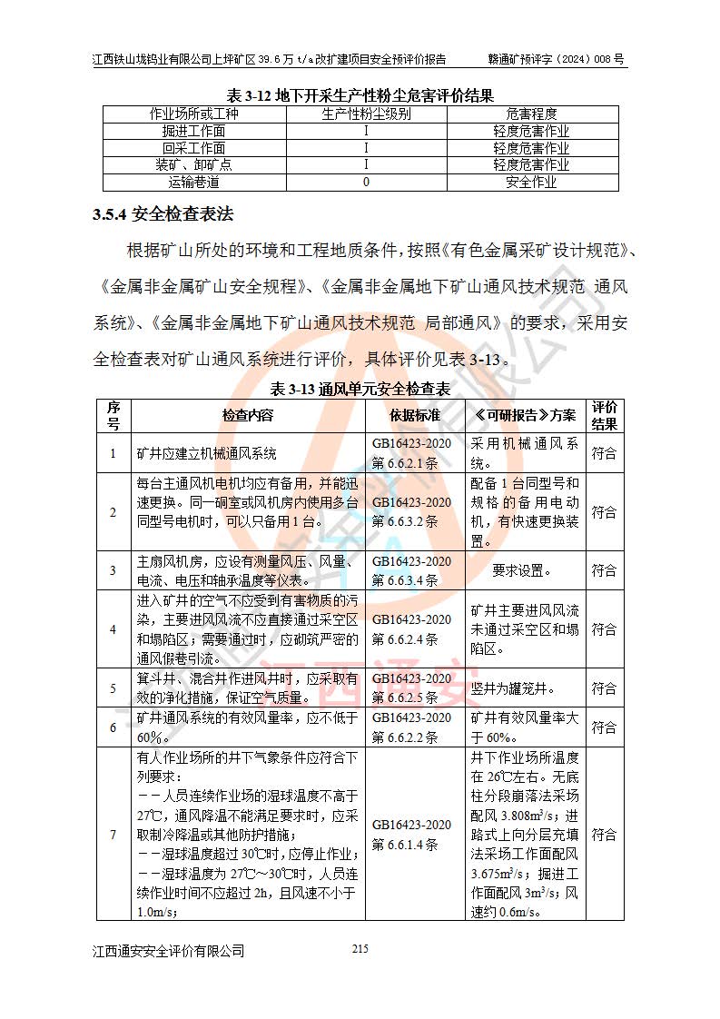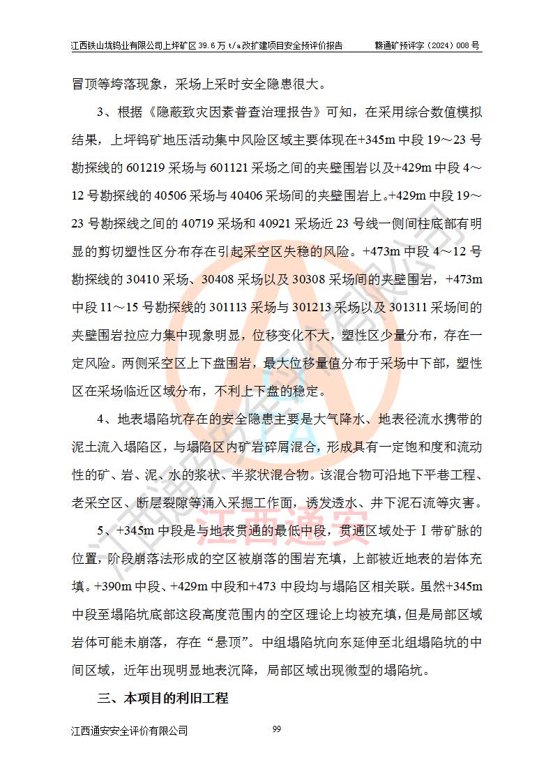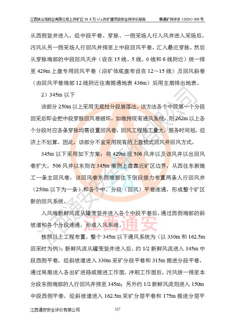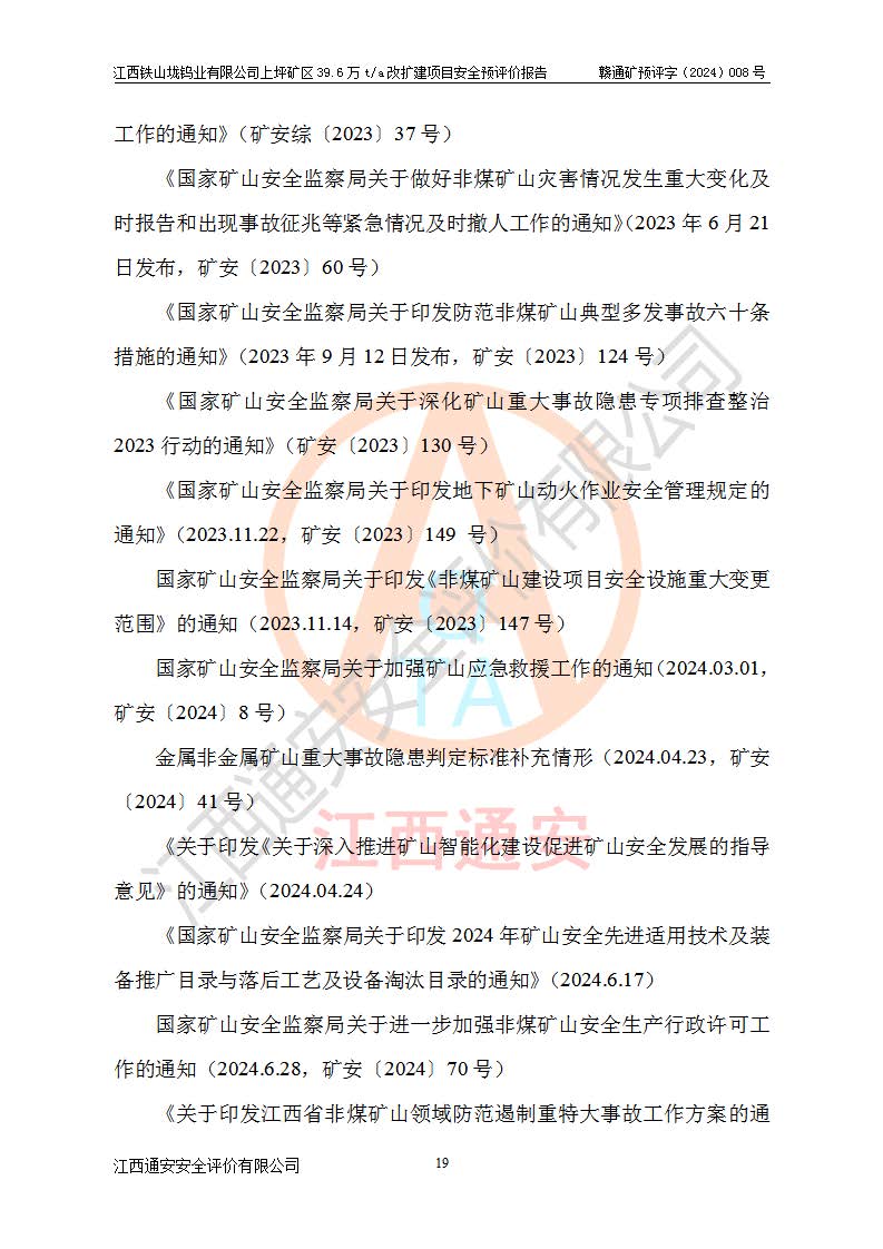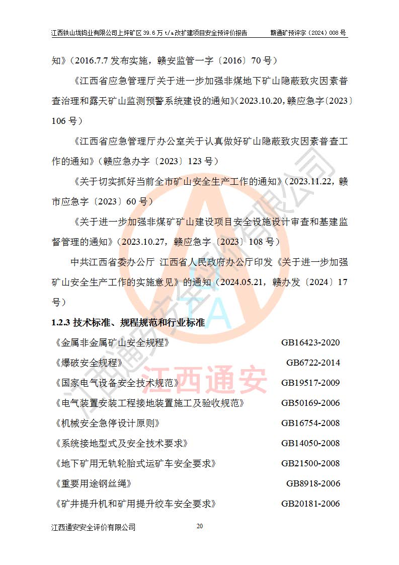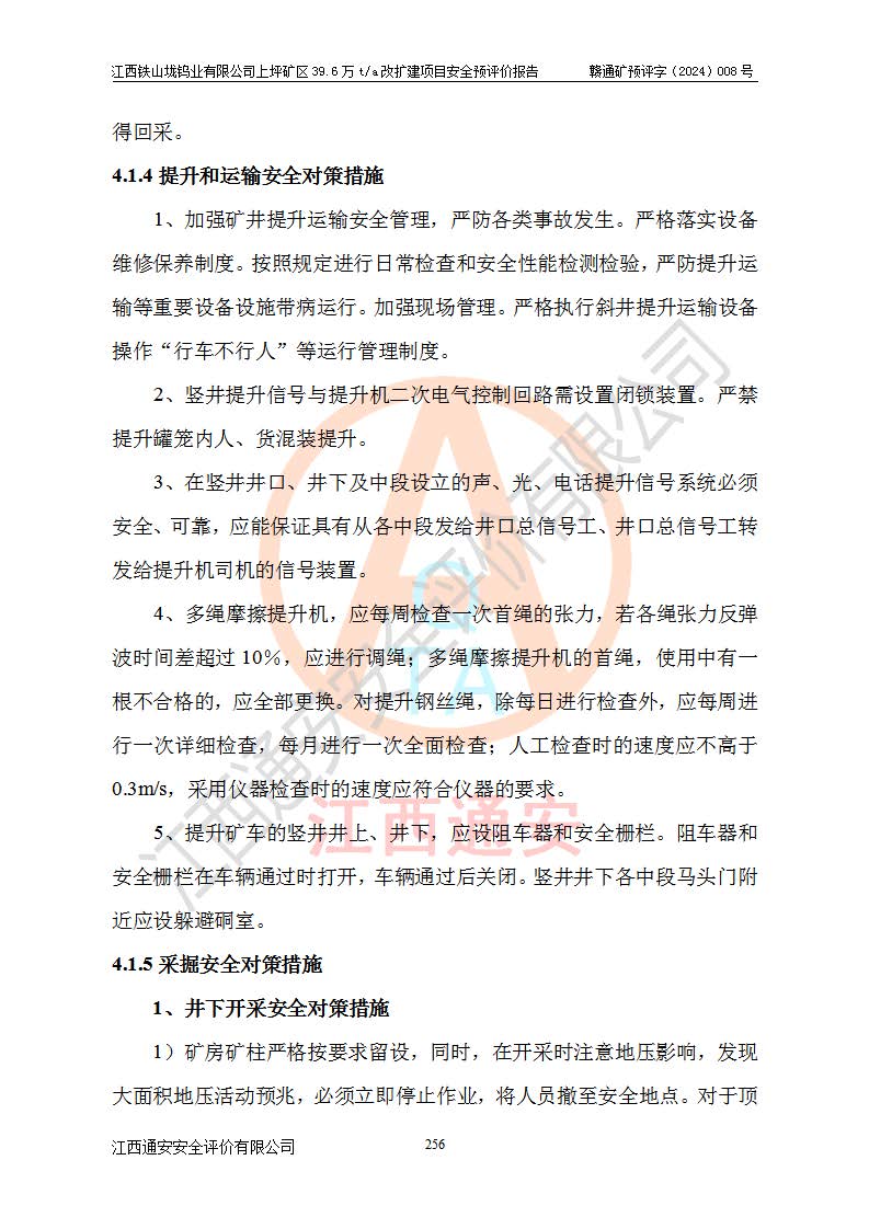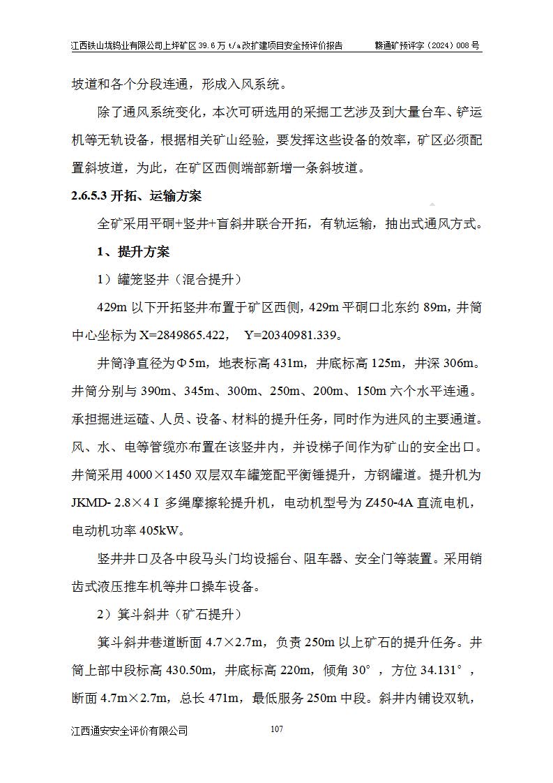 项目名称 | 江西铁山垅钨业有限公司上坪矿区39.6万t/a改扩建项目安全预评价报告 | ||||