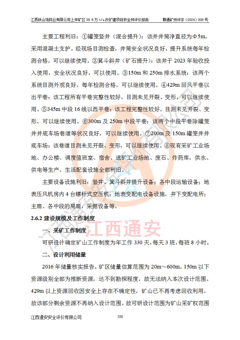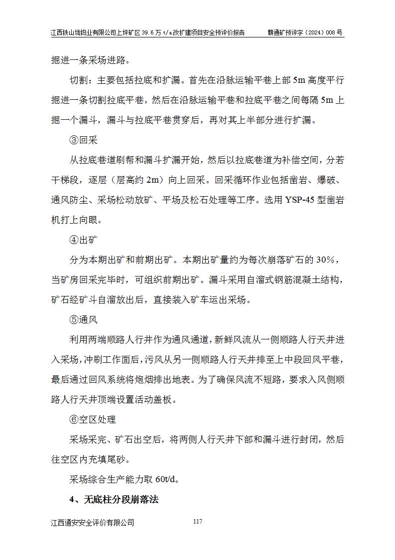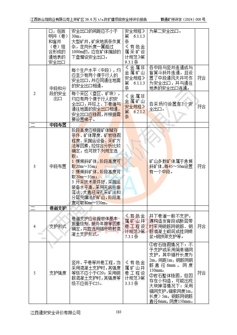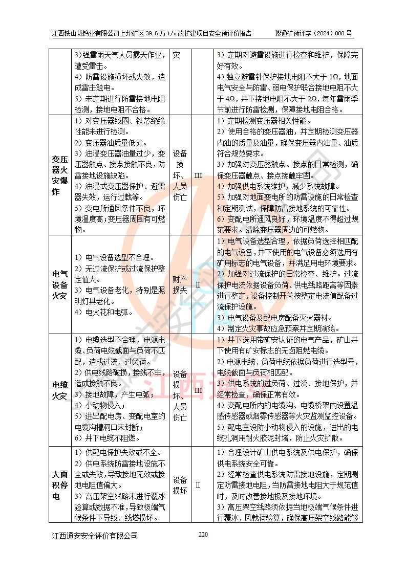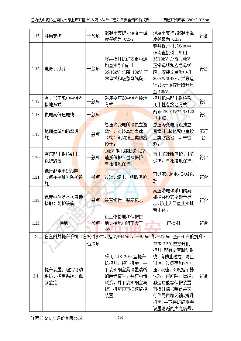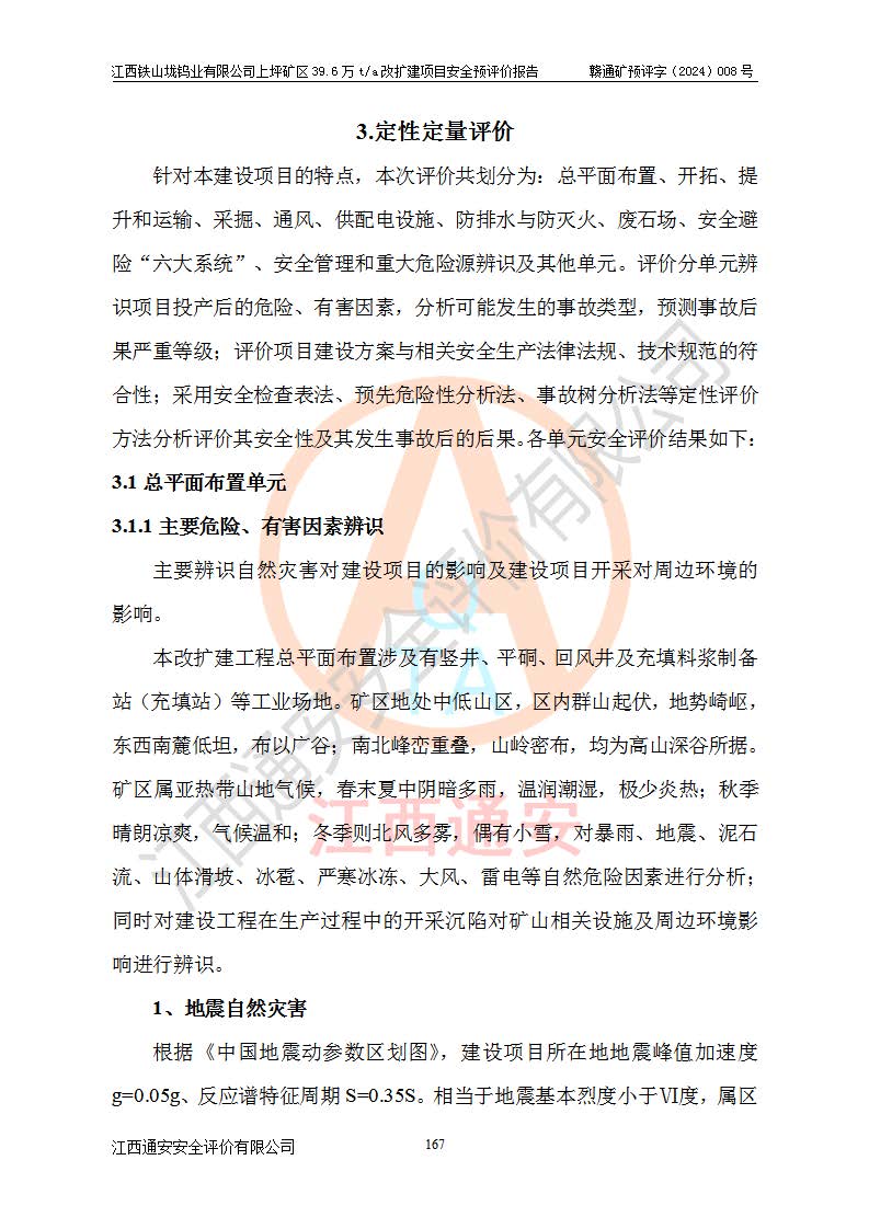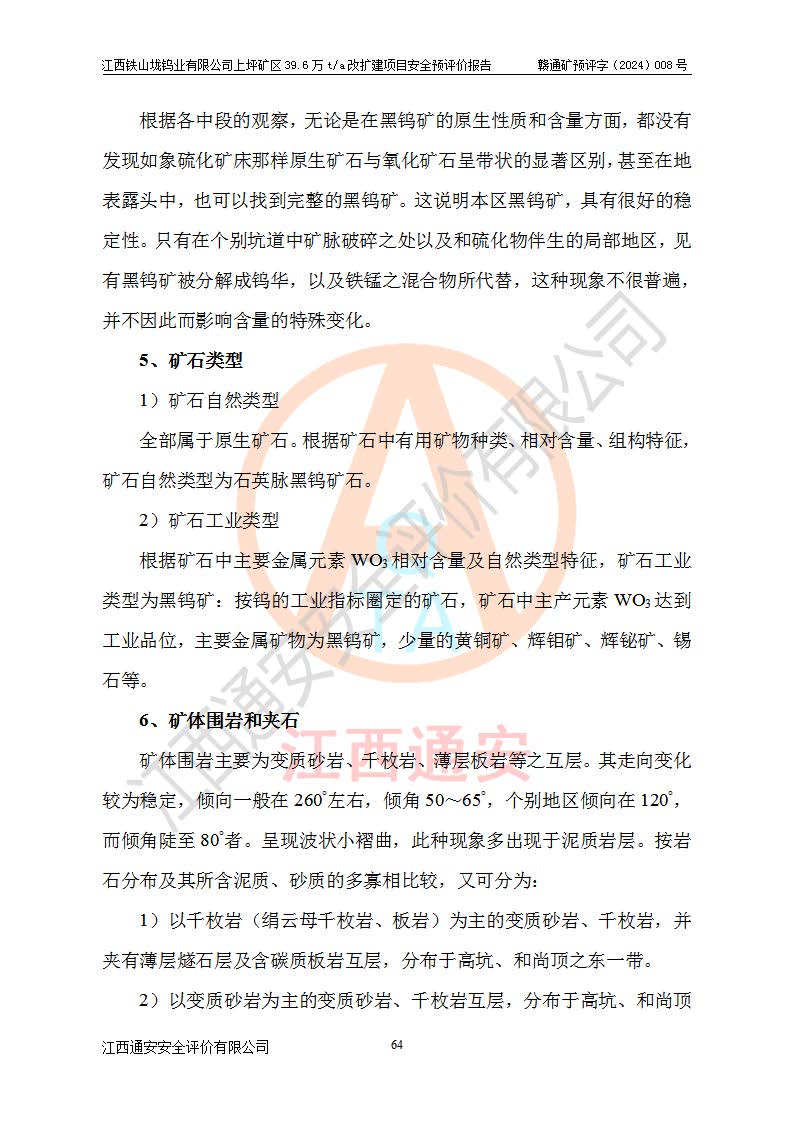 项目名称 | 江西铁山垅钨业有限公司上坪矿区39.6万t/a改扩建项目安全预评价报告 | ||||