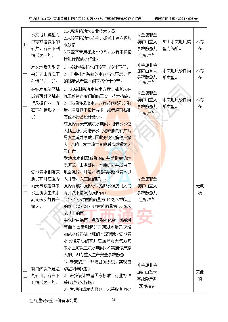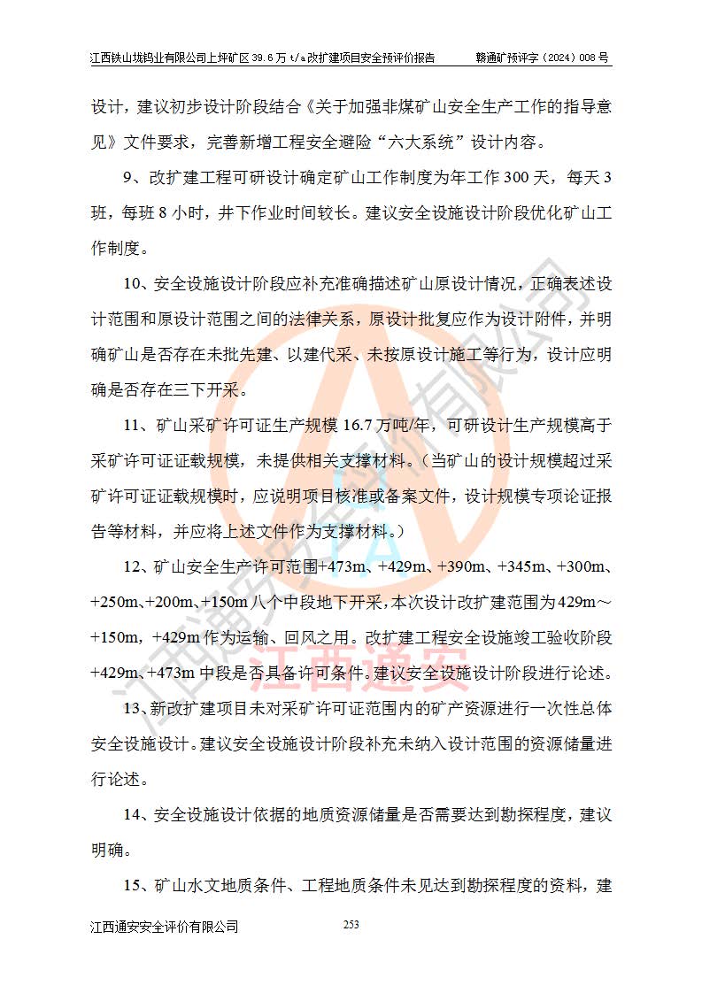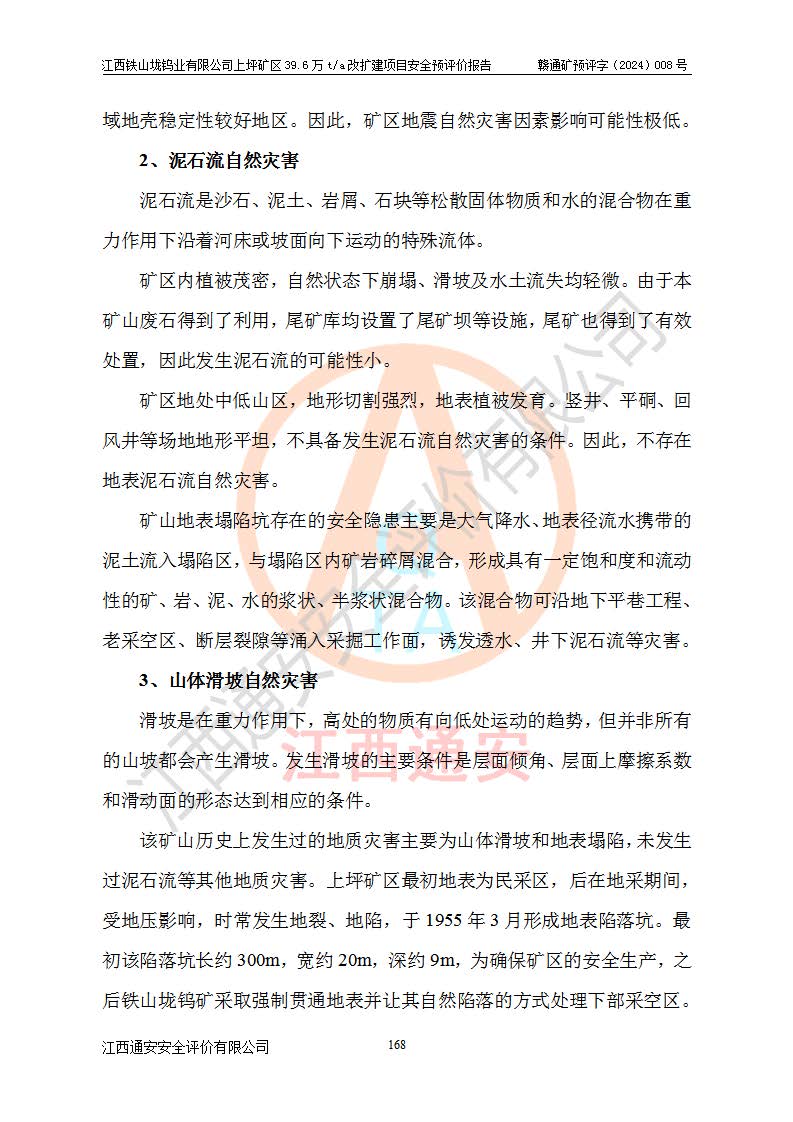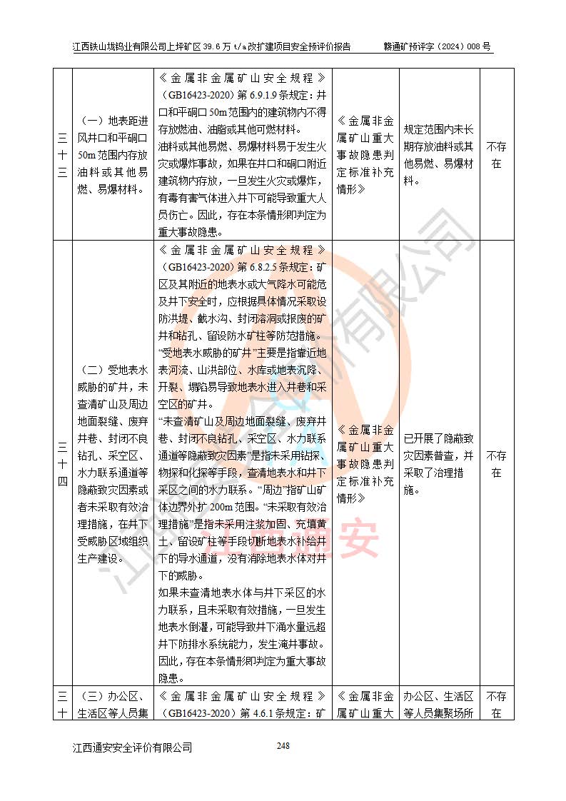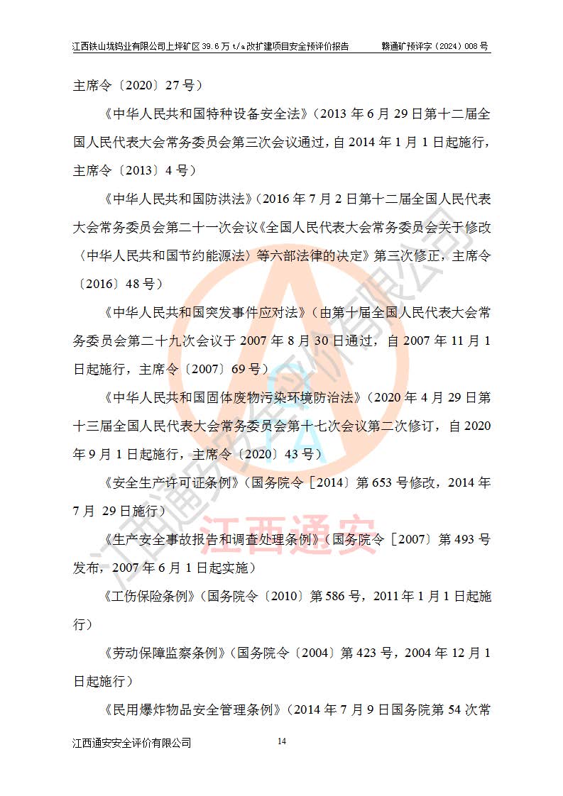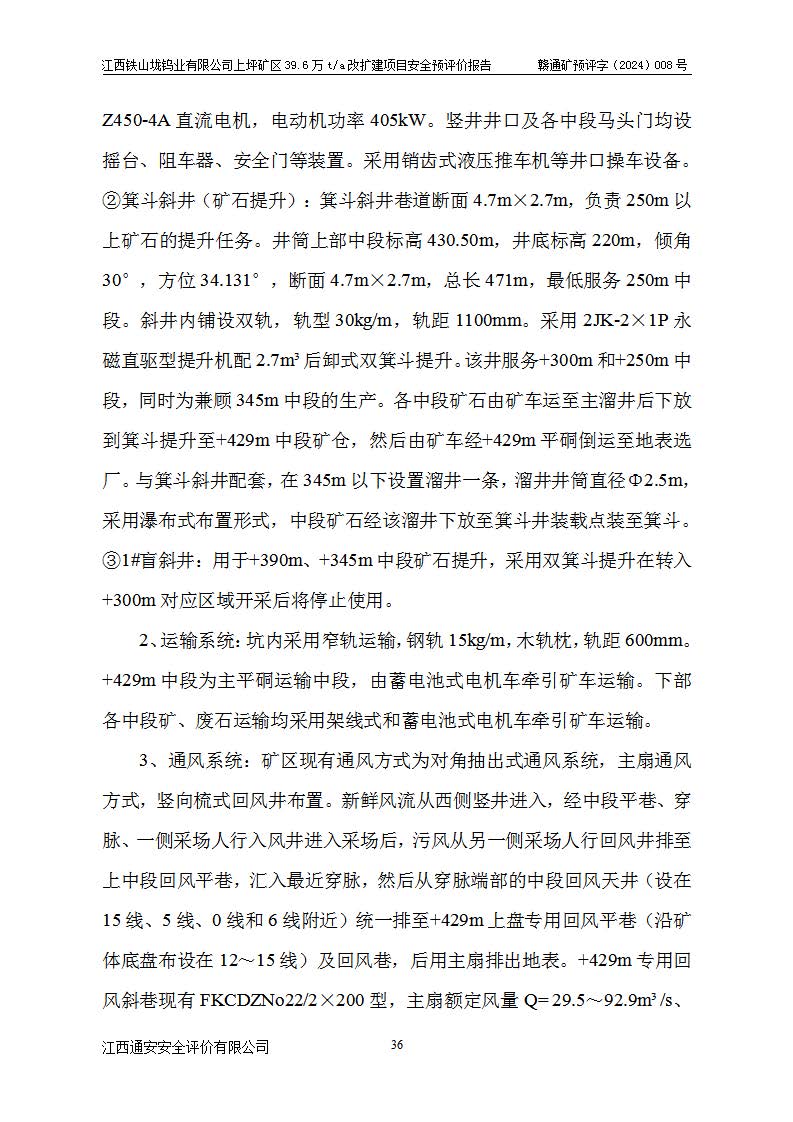 项目名称 | 江西铁山垅钨业有限公司上坪矿区39.6万t/a改扩建项目安全预评价报告 | ||||