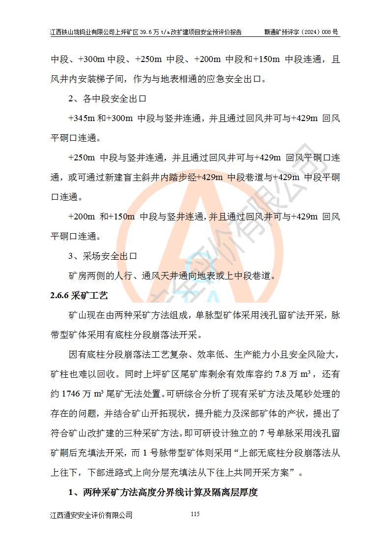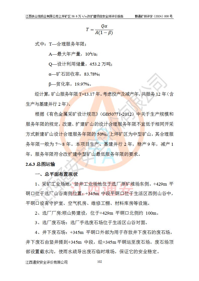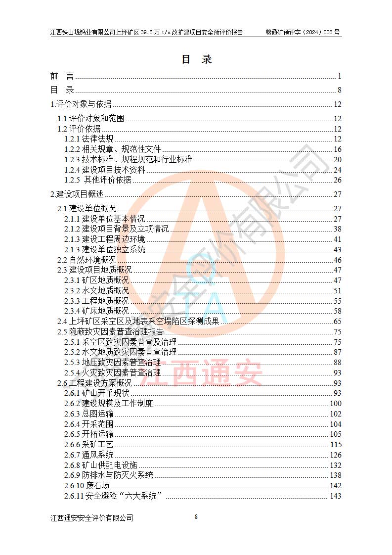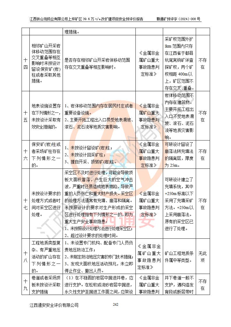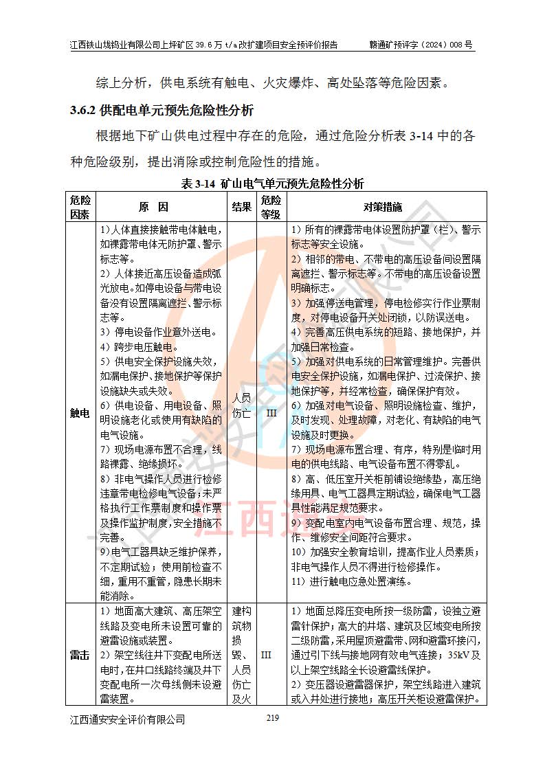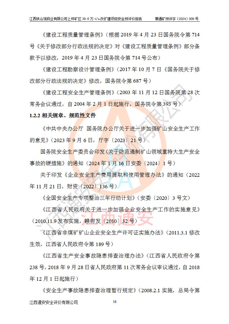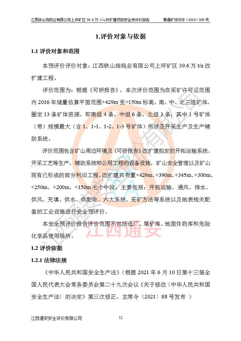 项目名称 | 江西铁山垅钨业有限公司上坪矿区39.6万t/a改扩建项目安全预评价报告 | ||||