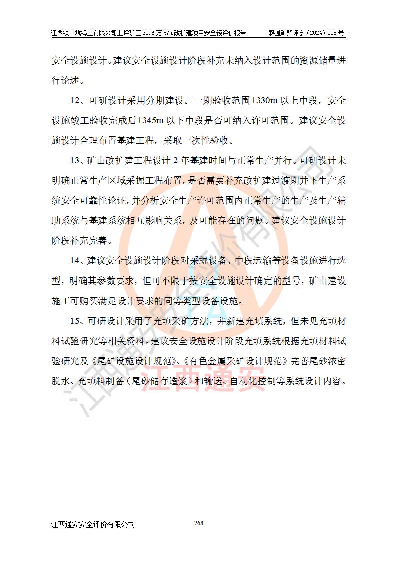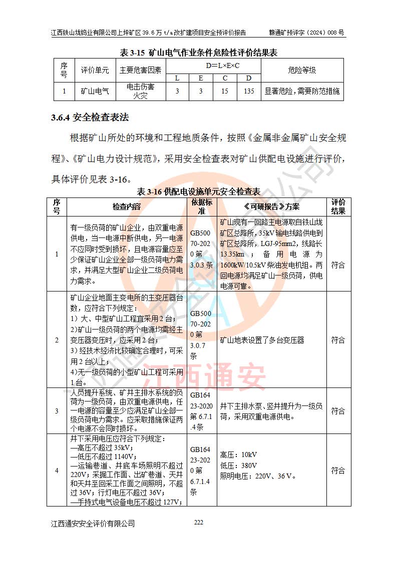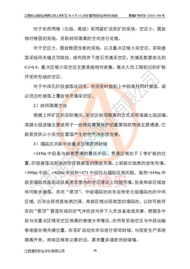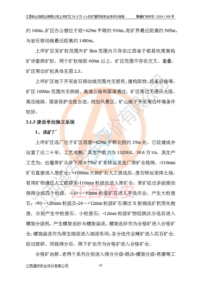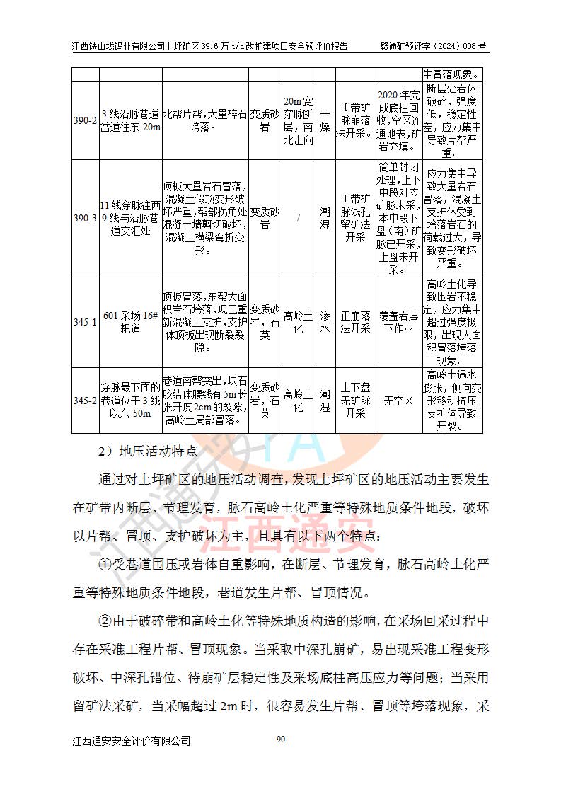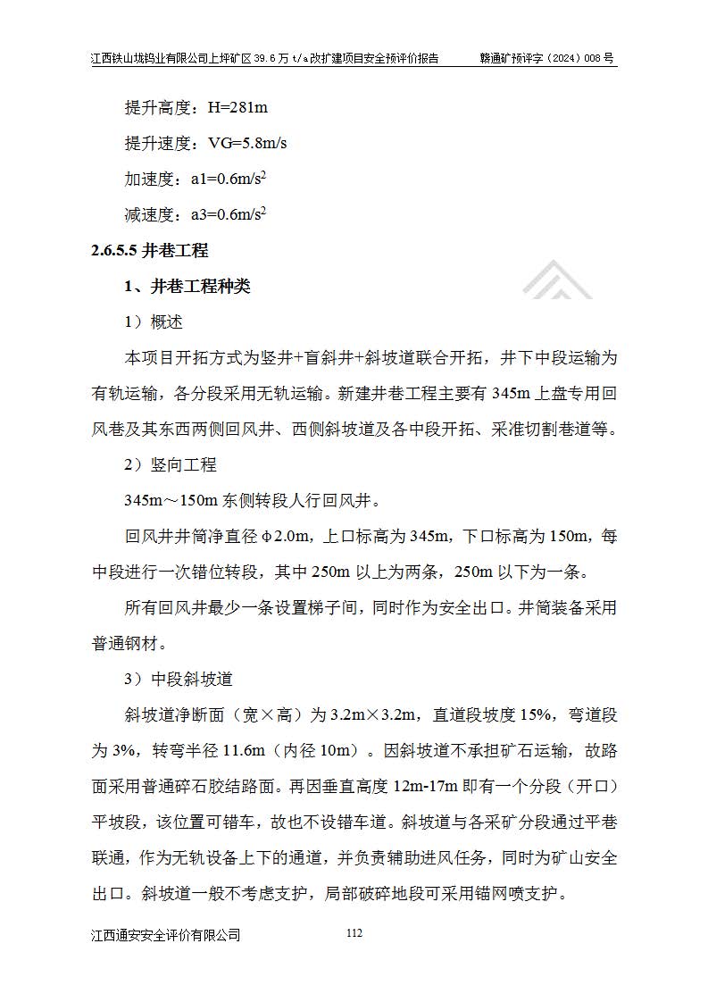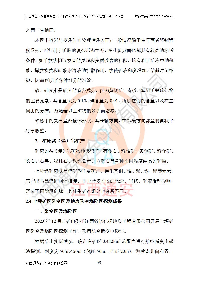项目名称 | 江西铁山垅钨业有限公司上坪矿区39.6万t/a改扩建项目安全预评价报告 | ||||