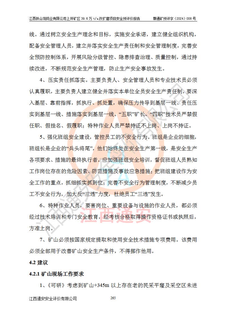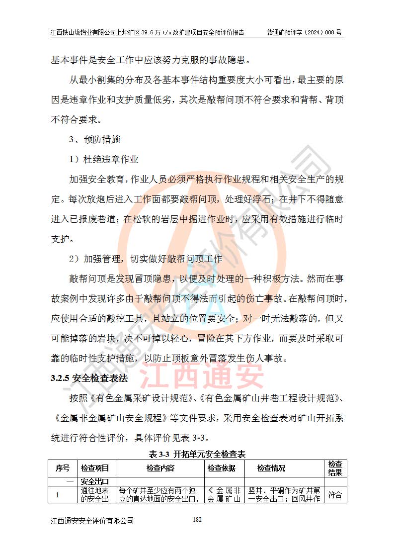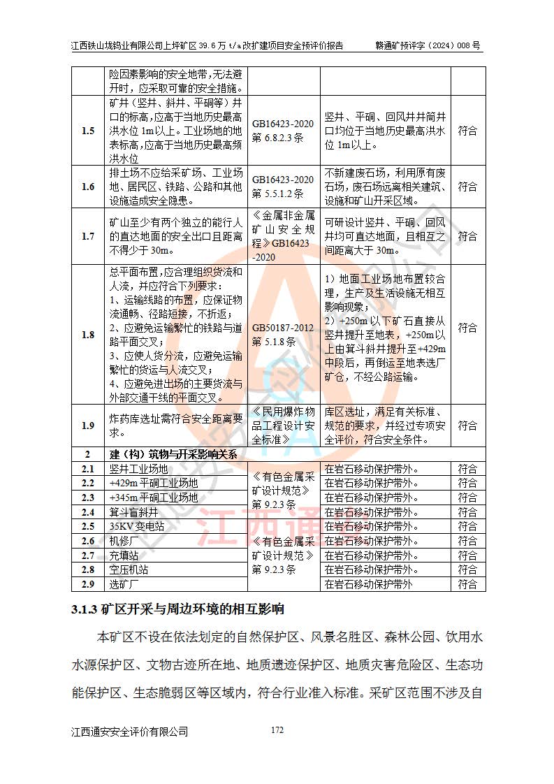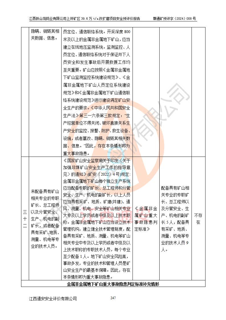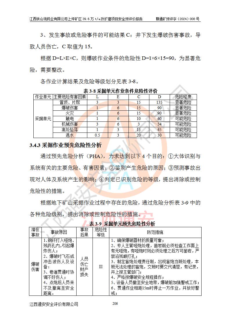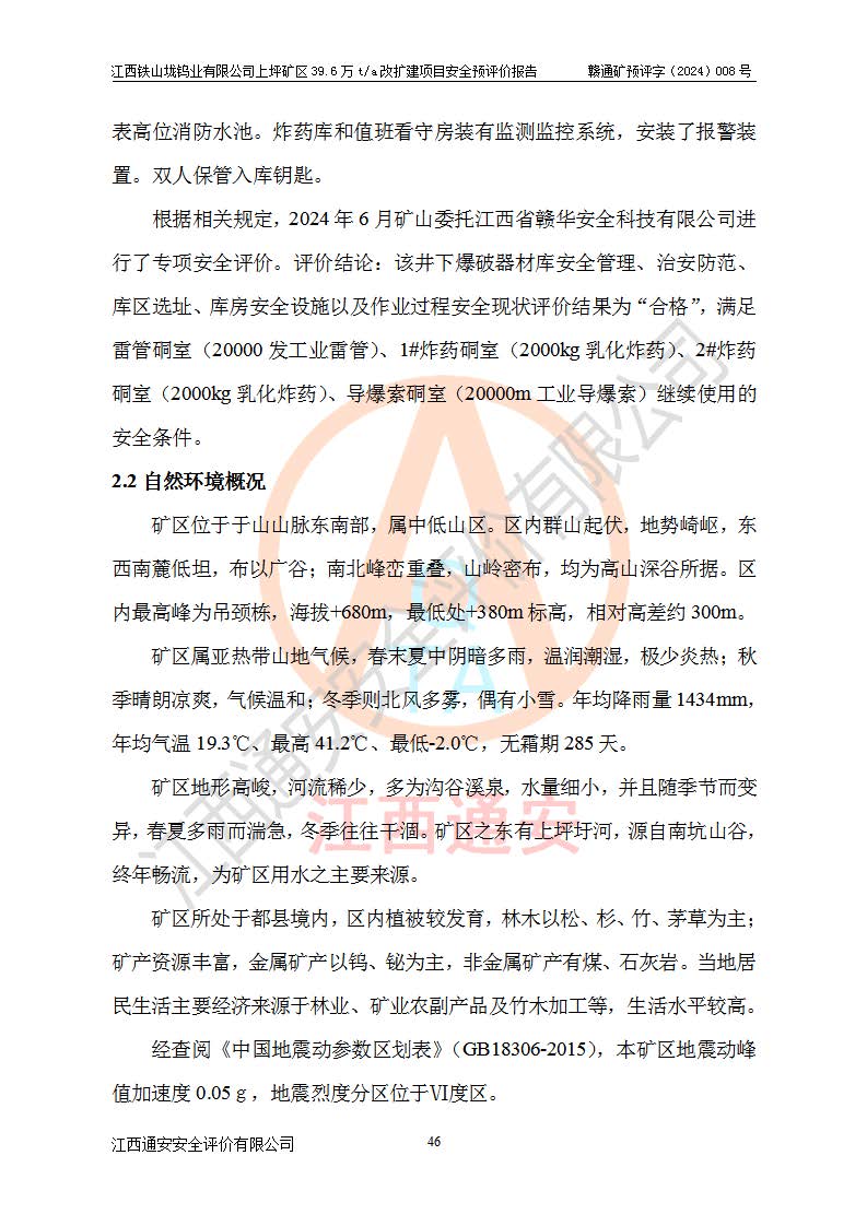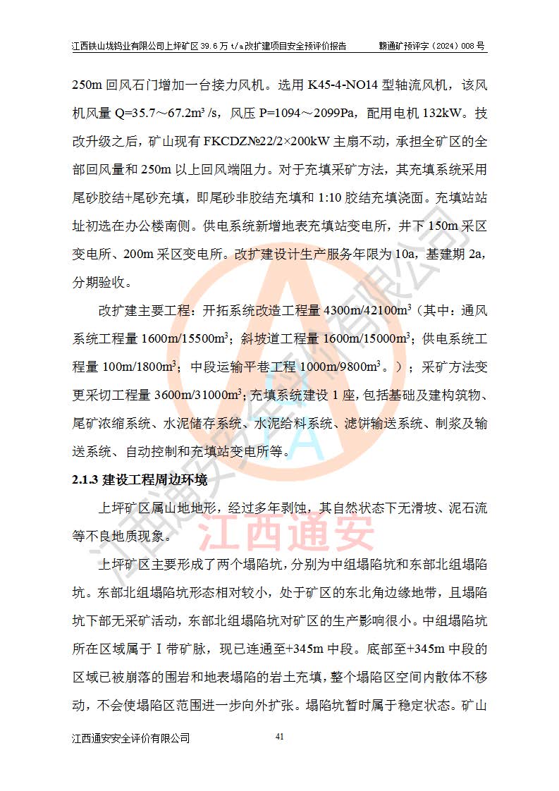 项目名称 | 江西铁山垅钨业有限公司上坪矿区39.6万t/a改扩建项目安全预评价报告 | ||||