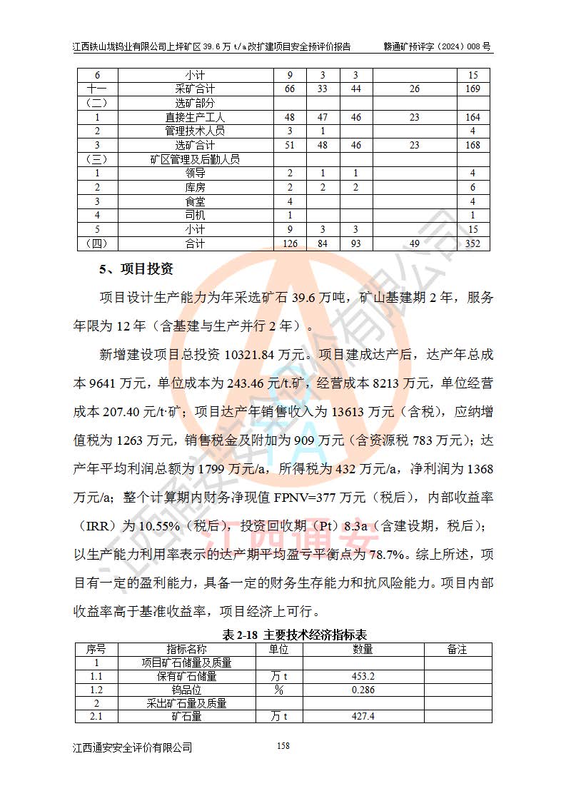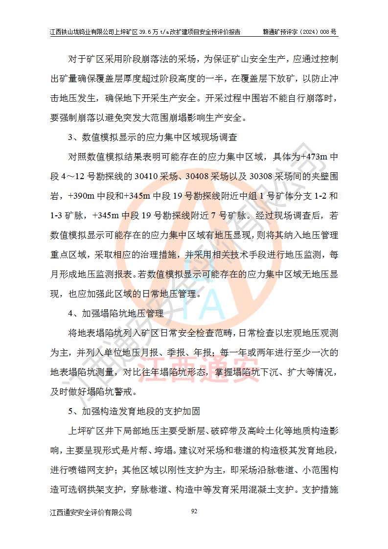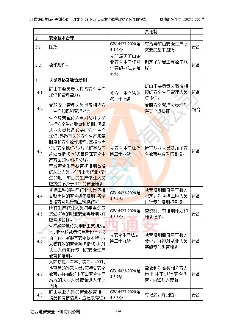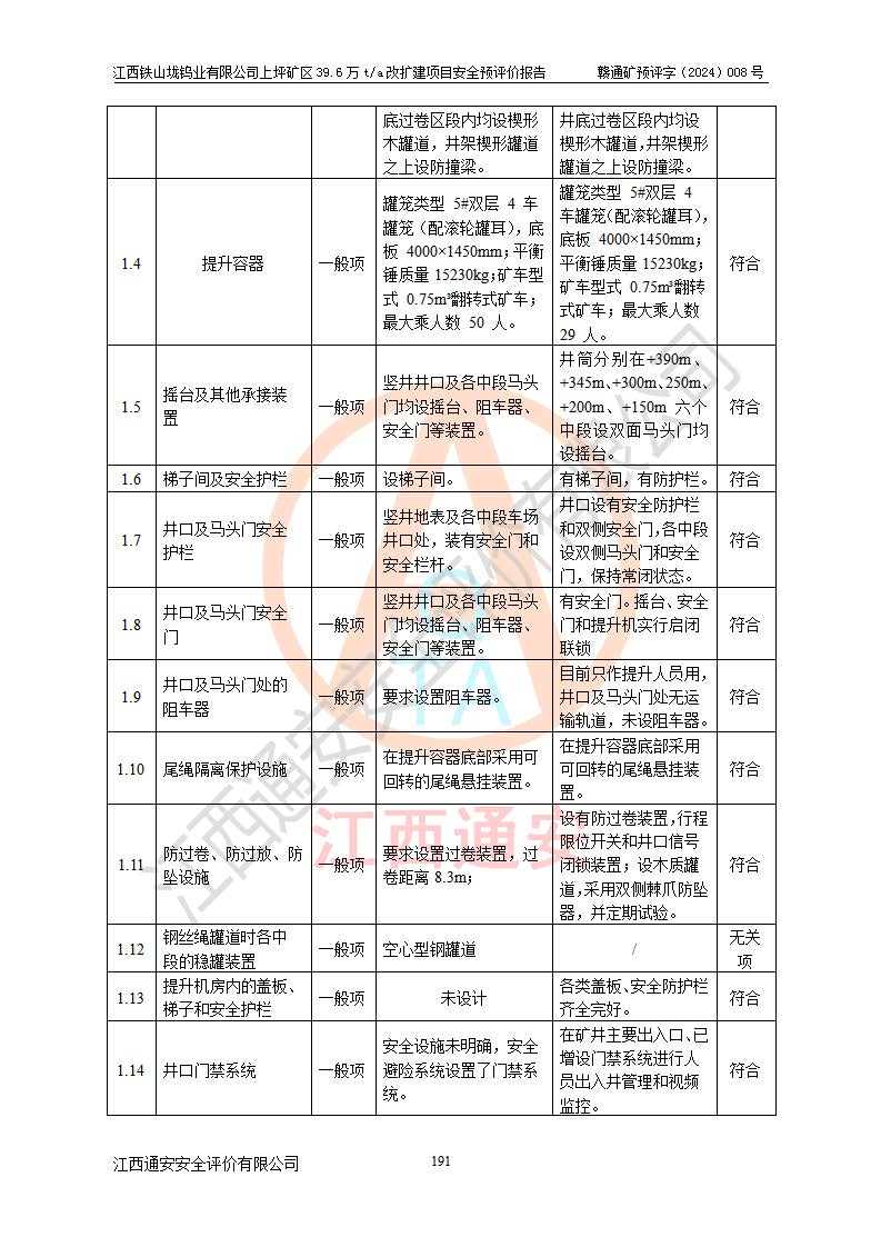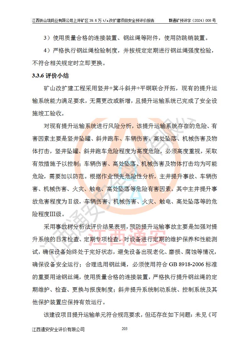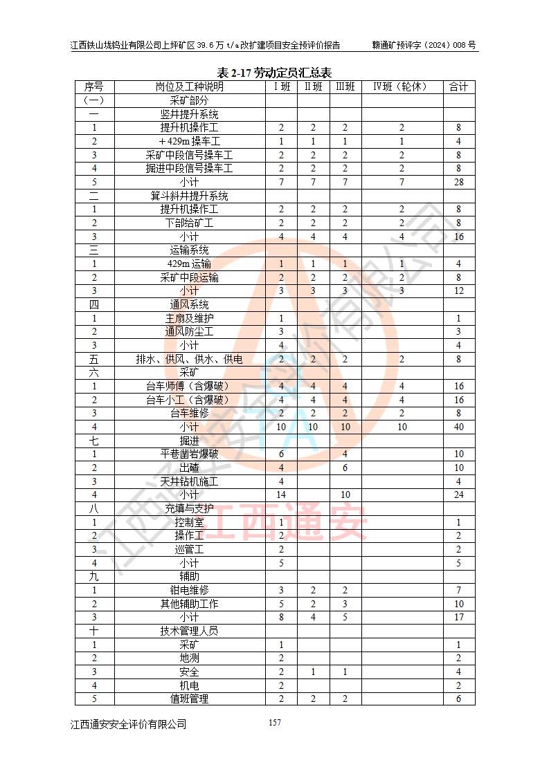 项目名称 | 江西铁山垅钨业有限公司上坪矿区39.6万t/a改扩建项目安全预评价报告 | ||||