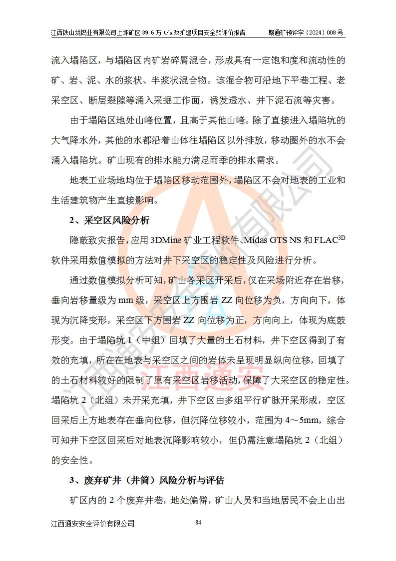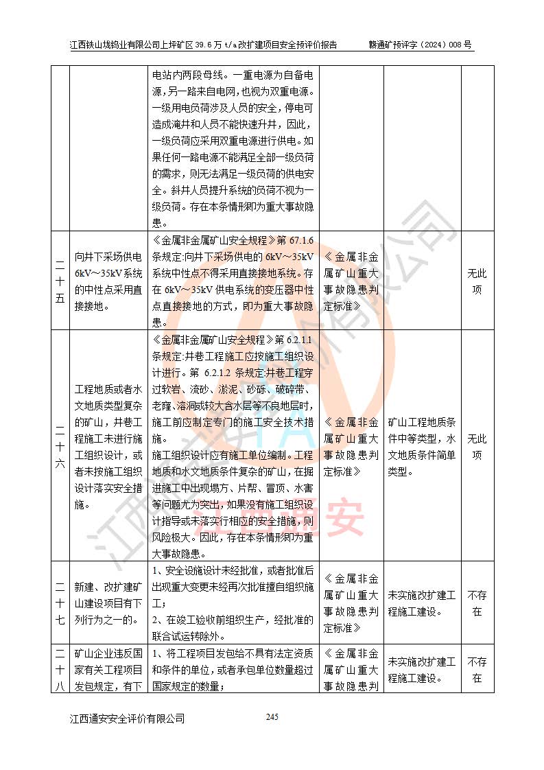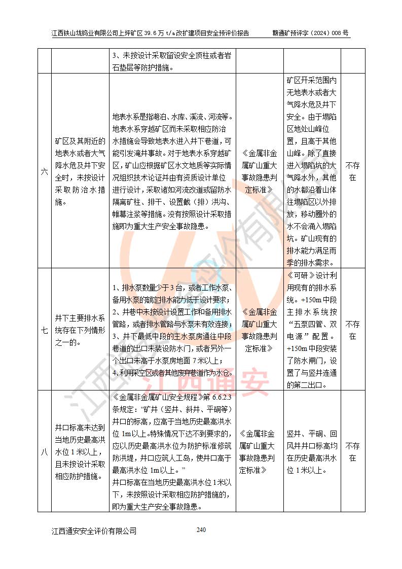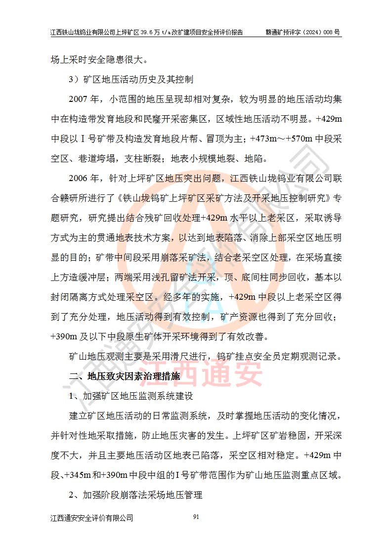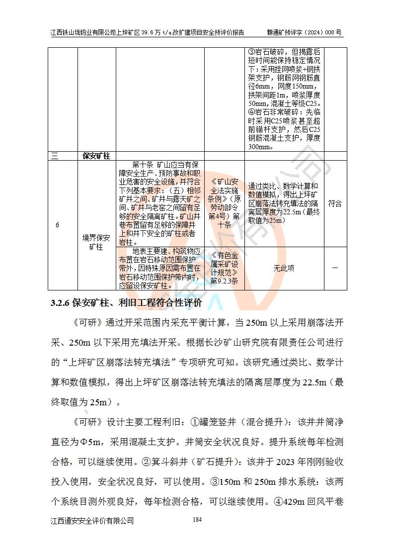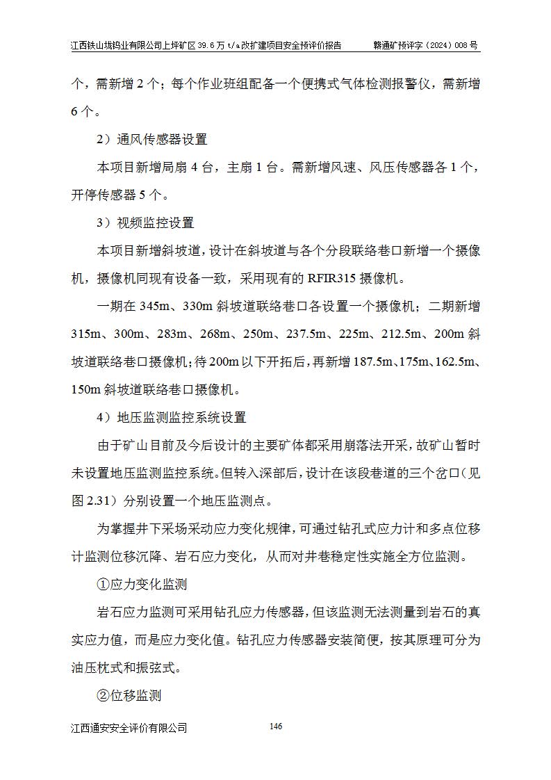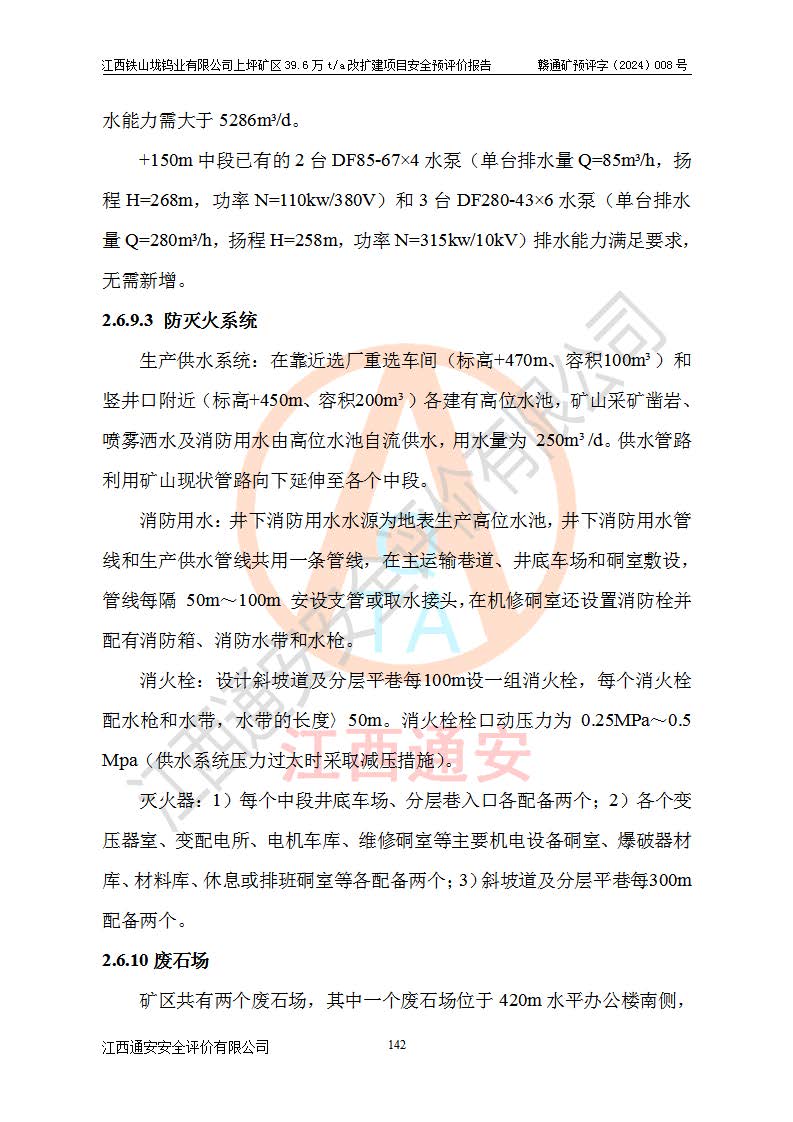 项目名称 | 江西铁山垅钨业有限公司上坪矿区39.6万t/a改扩建项目安全预评价报告 | ||||