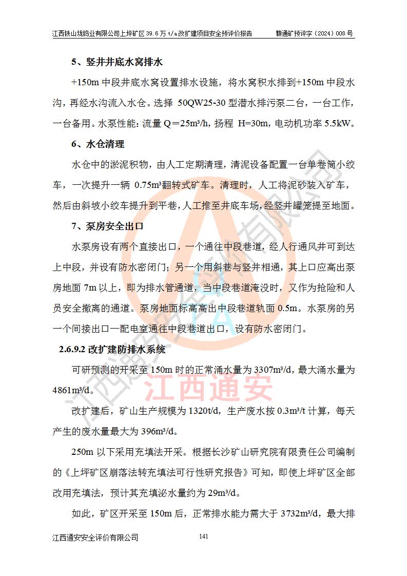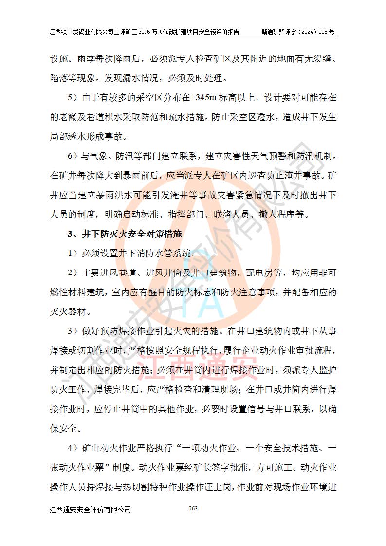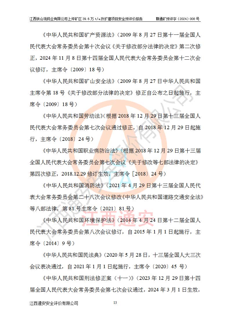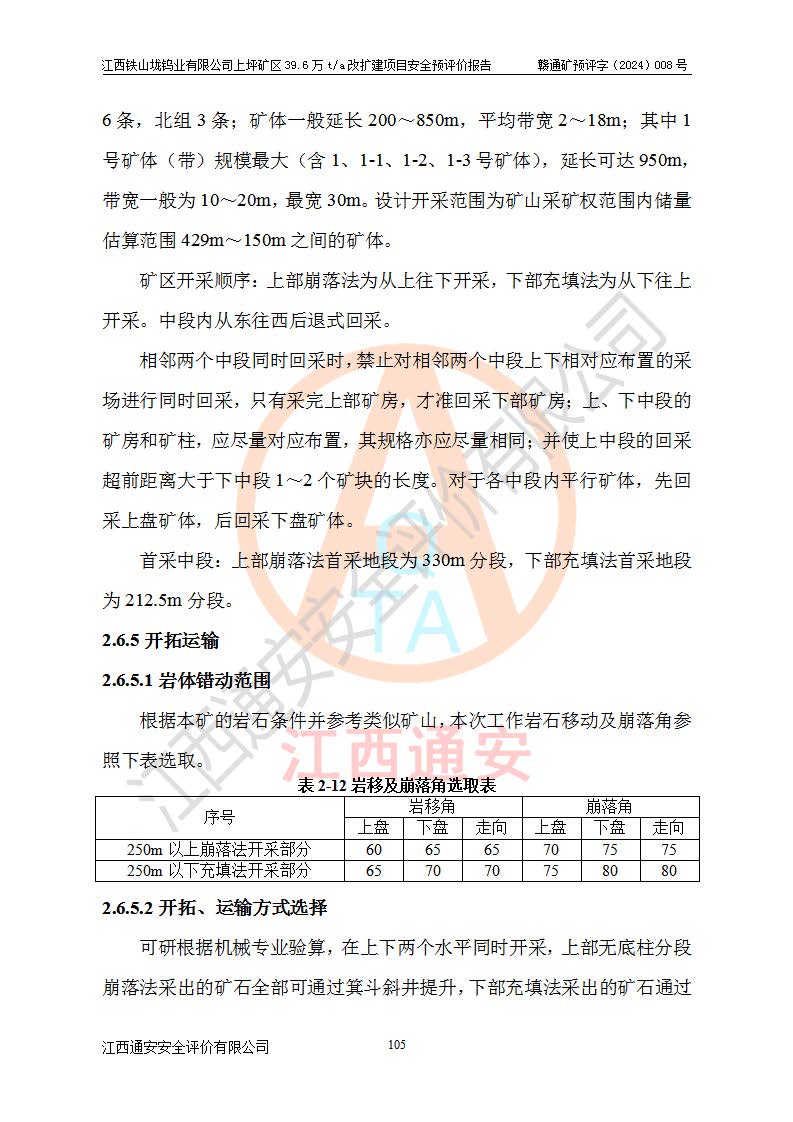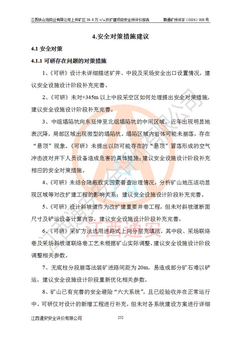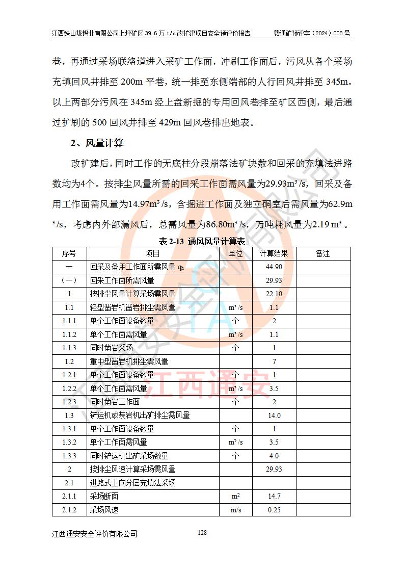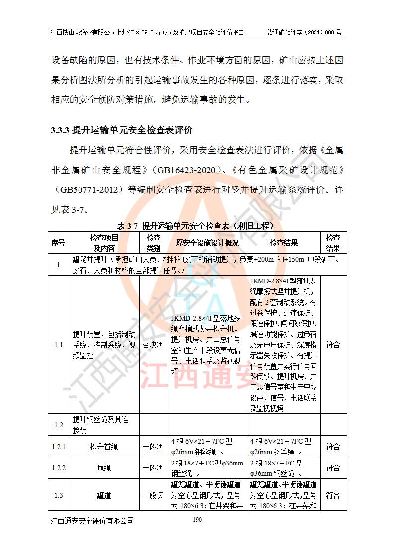 项目名称 | 江西铁山垅钨业有限公司上坪矿区39.6万t/a改扩建项目安全预评价报告 | ||||
