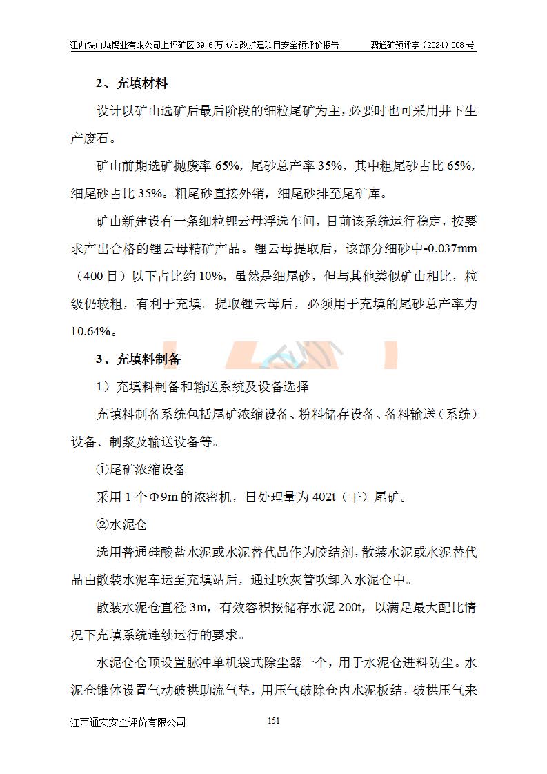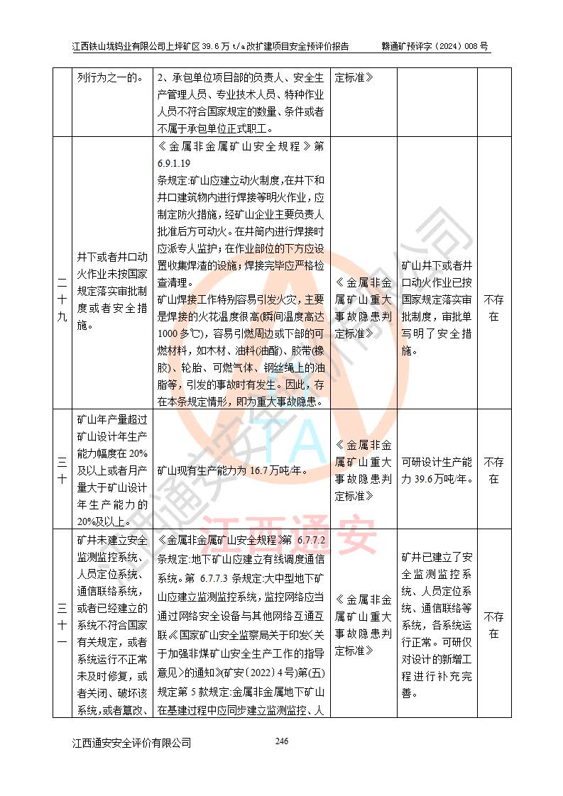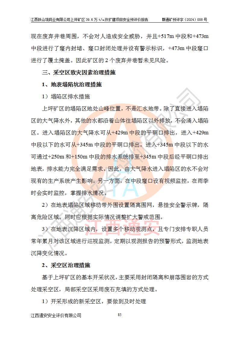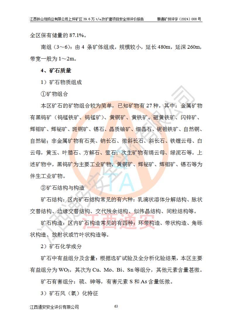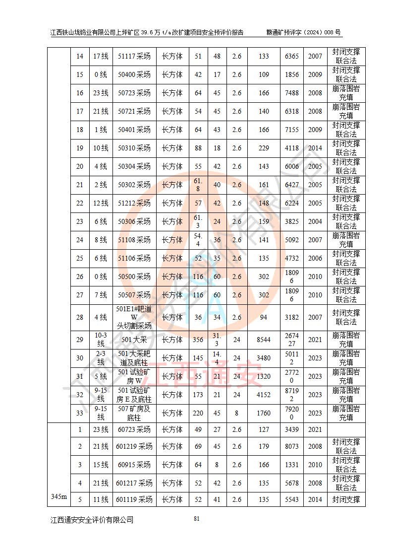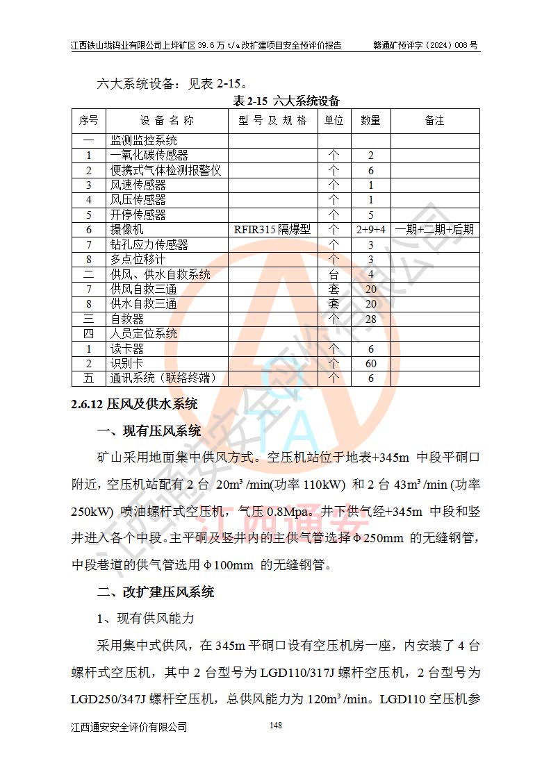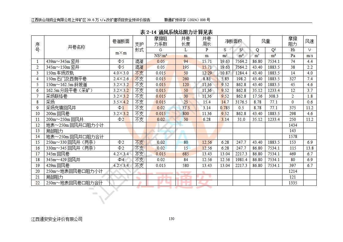 项目名称 | 江西铁山垅钨业有限公司上坪矿区39.6万t/a改扩建项目安全预评价报告 | ||||