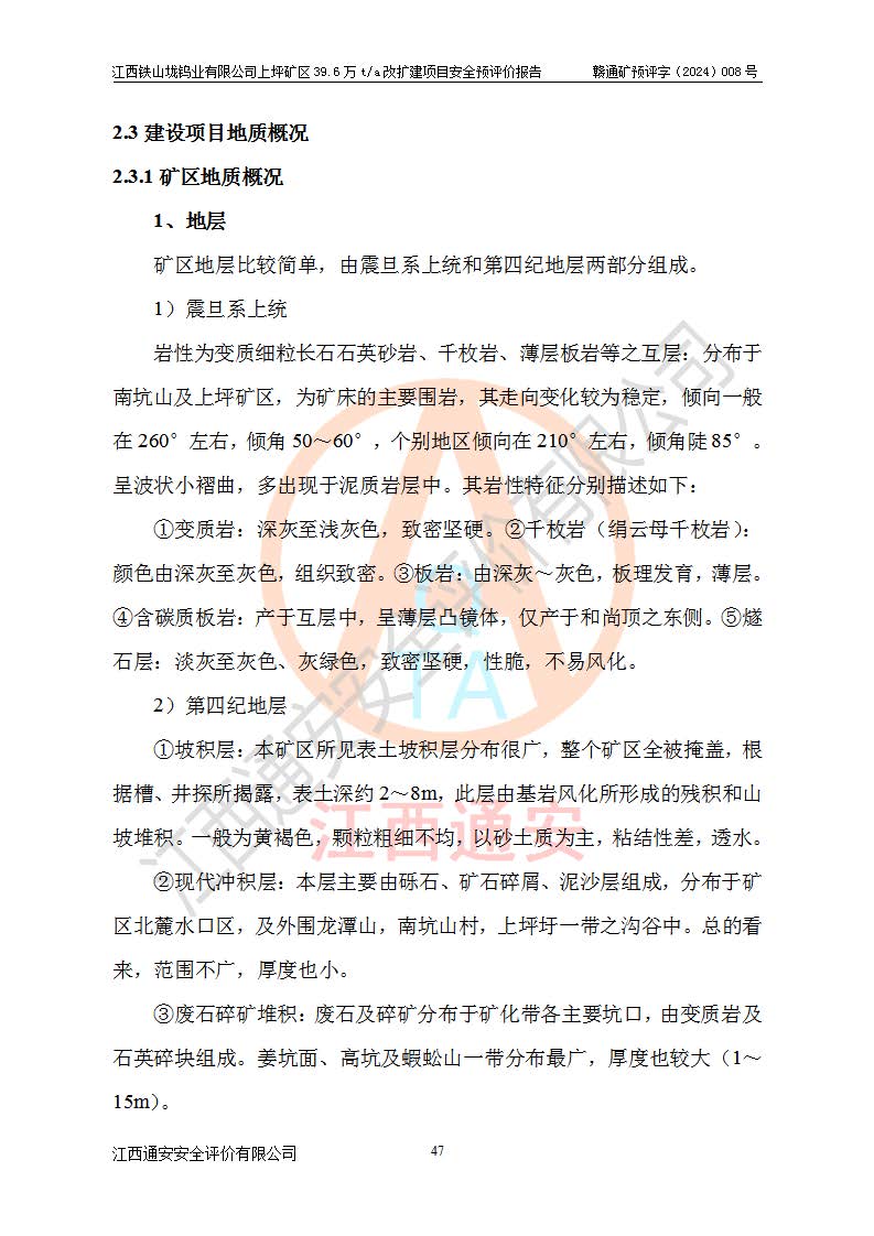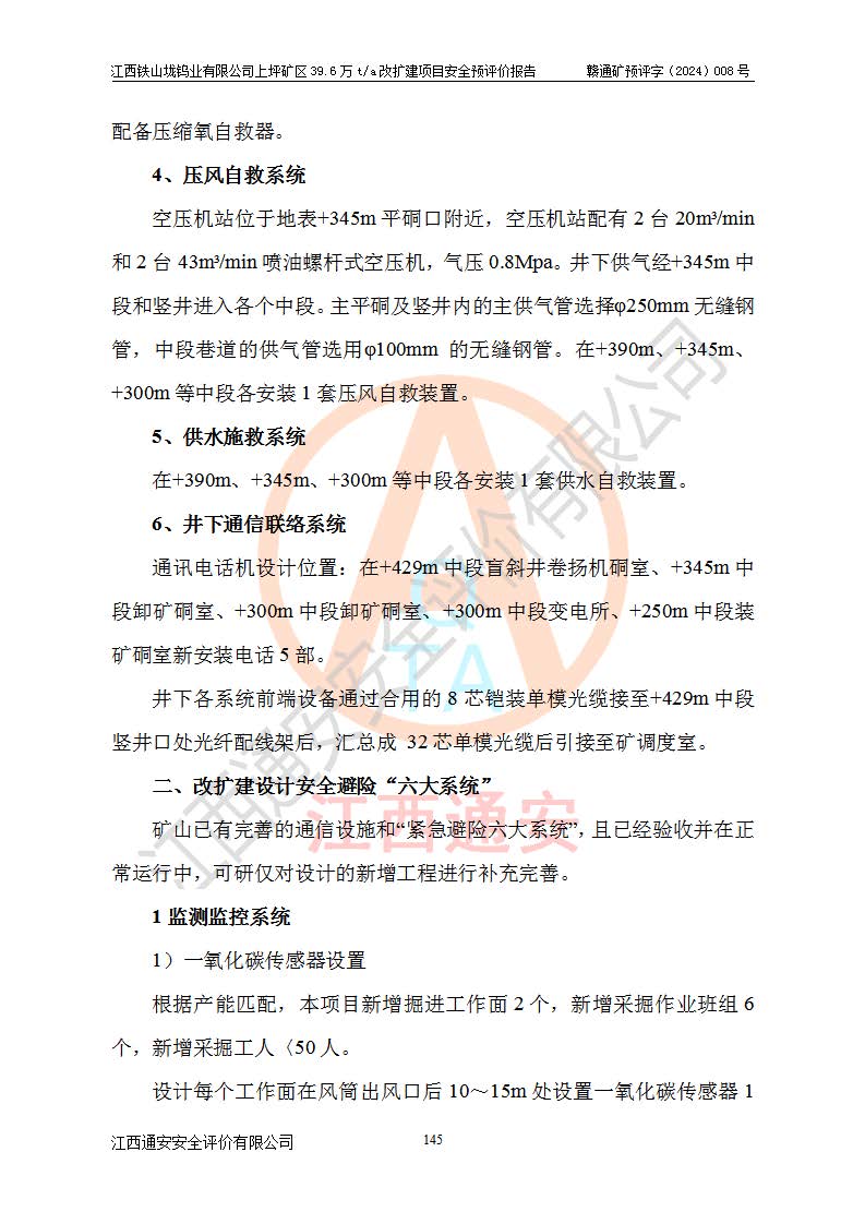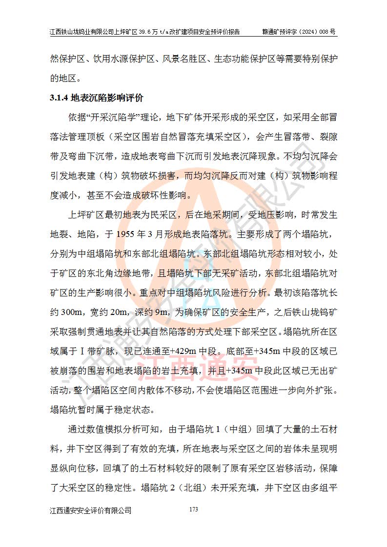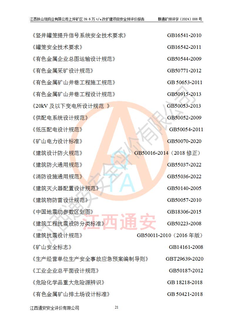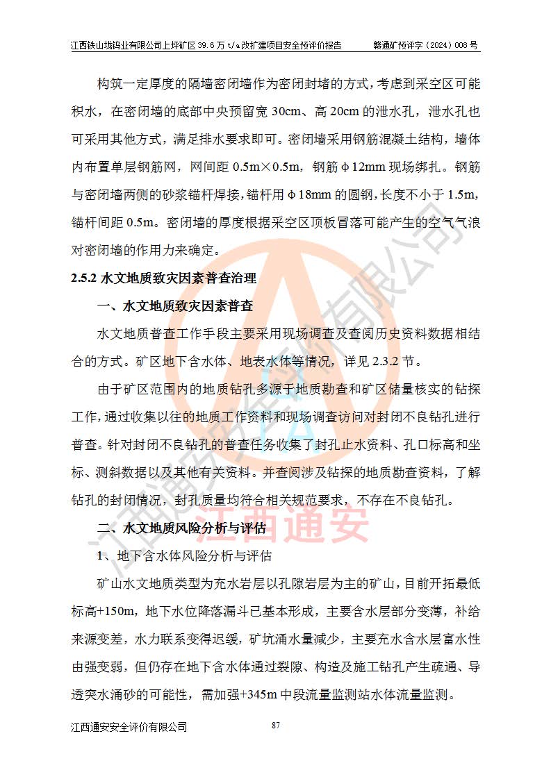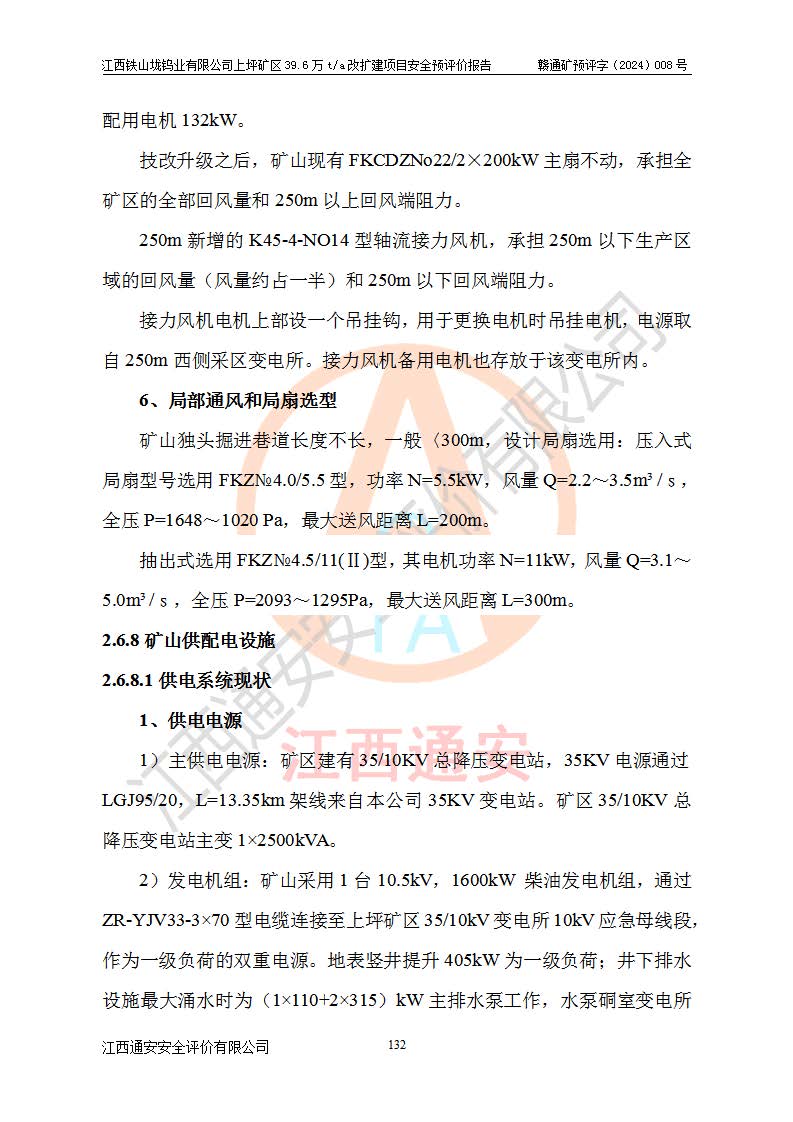 项目名称 | 江西铁山垅钨业有限公司上坪矿区39.6万t/a改扩建项目安全预评价报告 | ||||