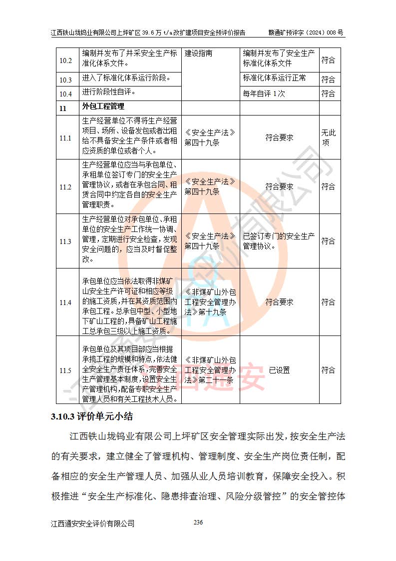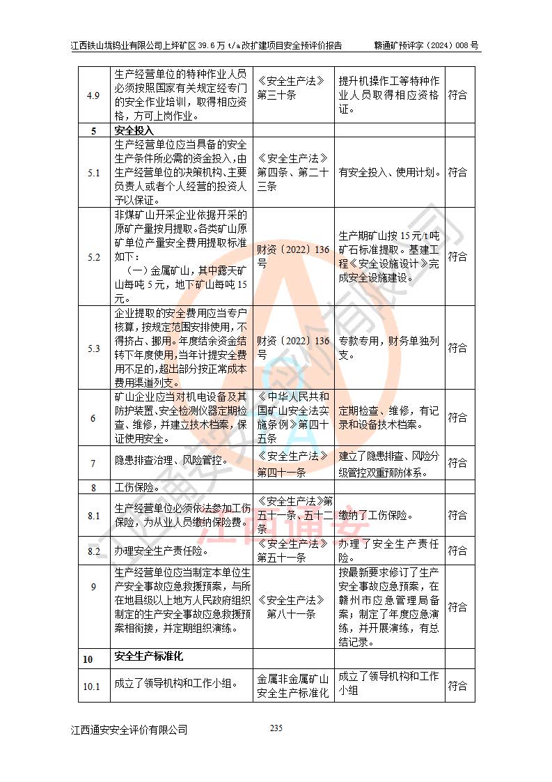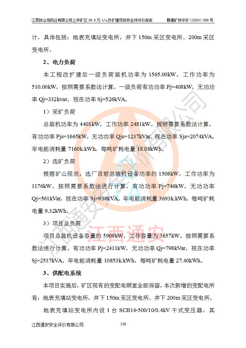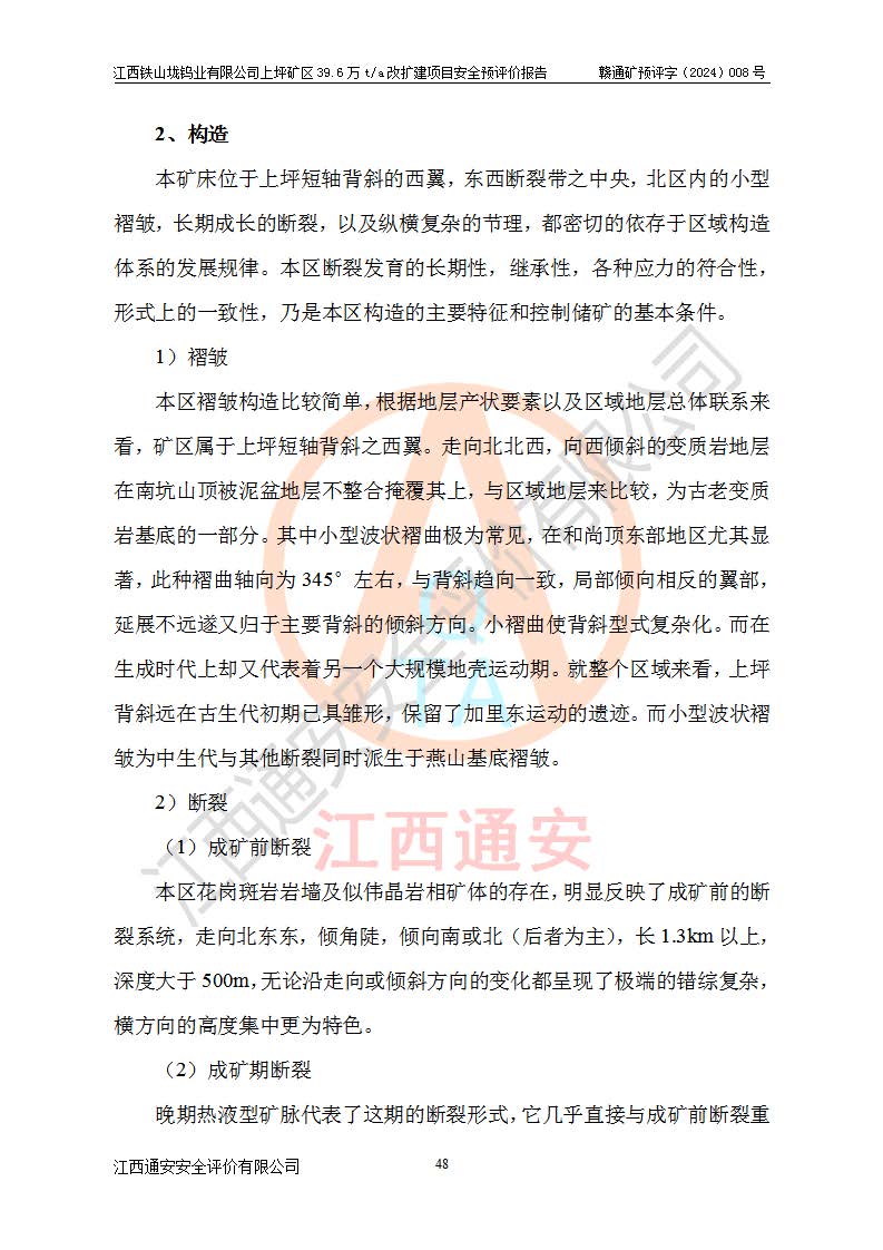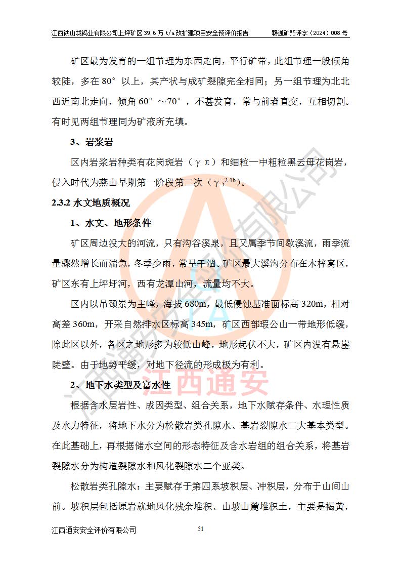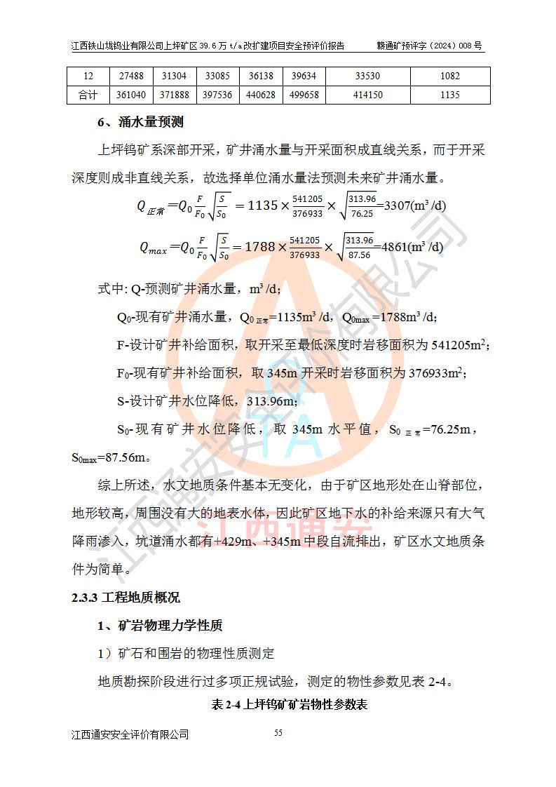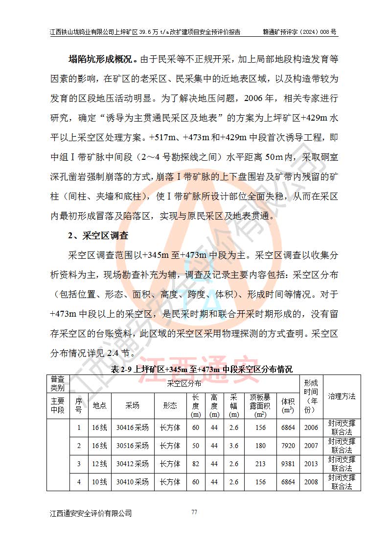 项目名称 | 江西铁山垅钨业有限公司上坪矿区39.6万t/a改扩建项目安全预评价报告 | ||||