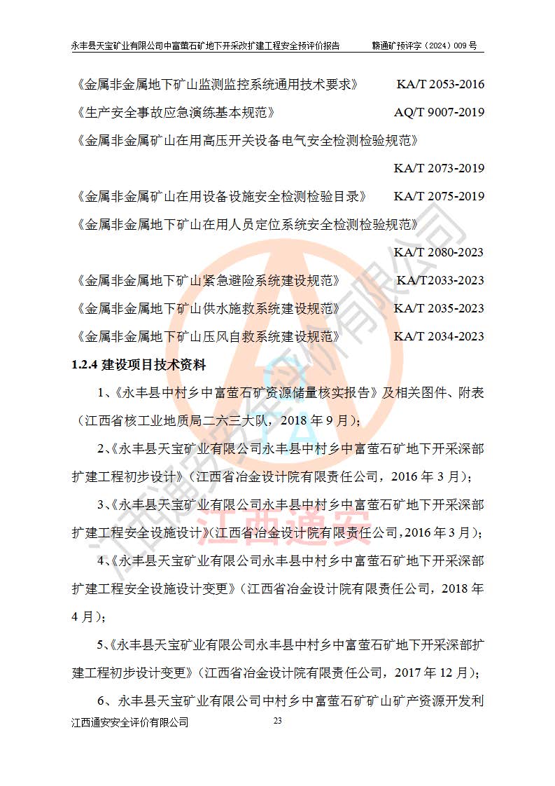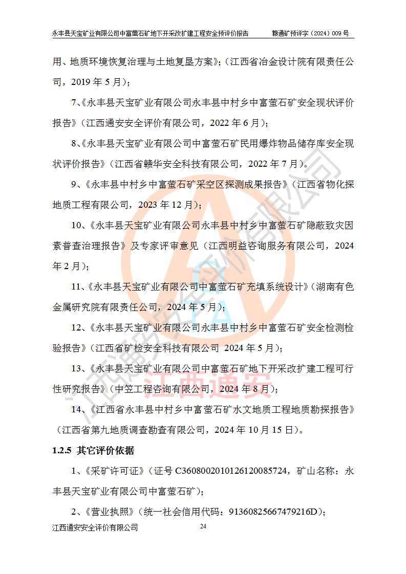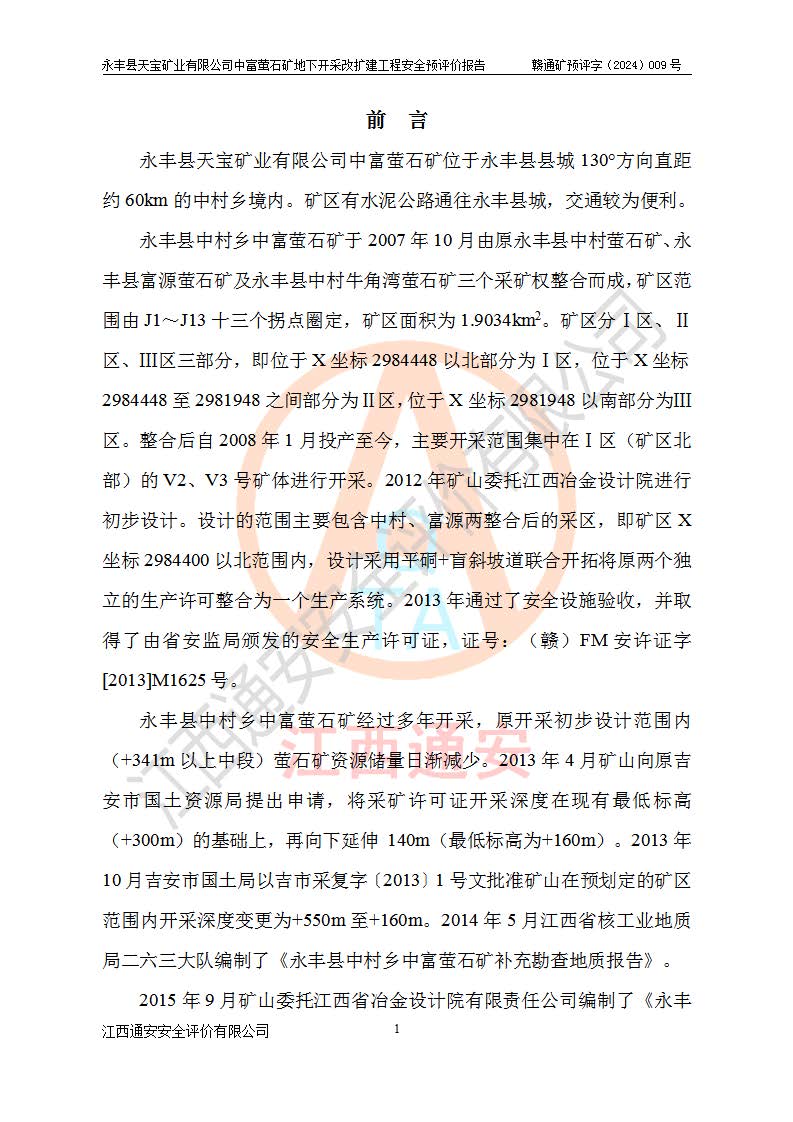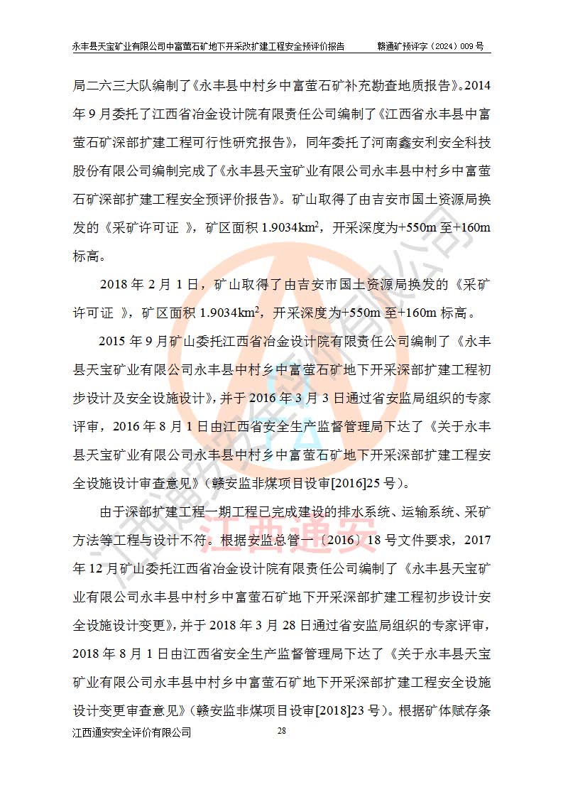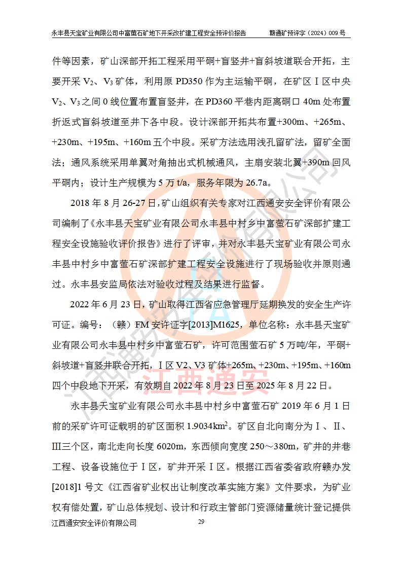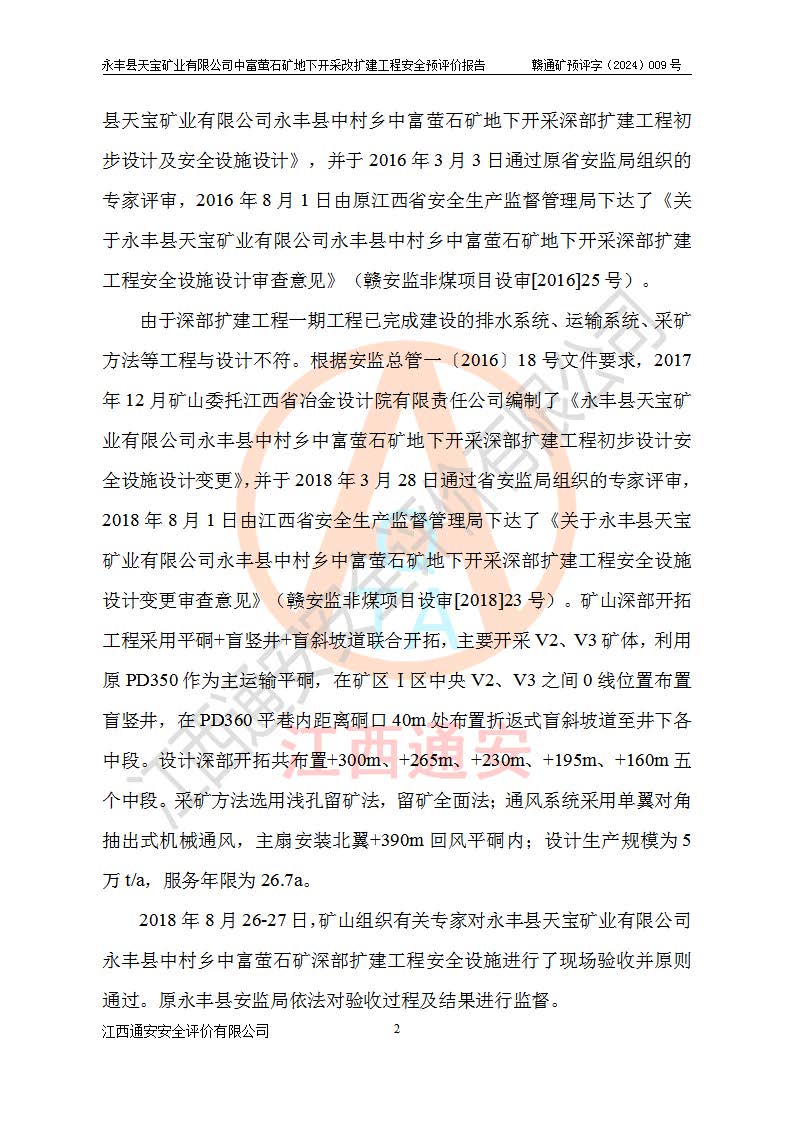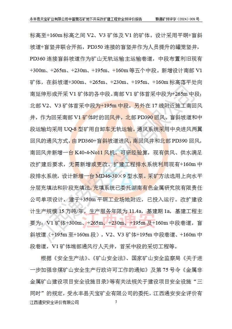 项目名称 | 永丰县天宝矿业有限公司中富萤石矿地下开采改扩建工程安全预评价报告 | ||||