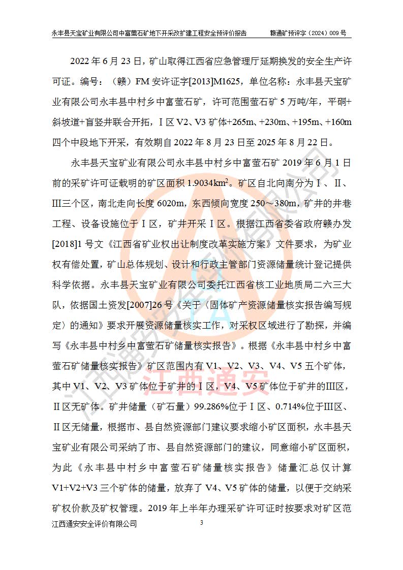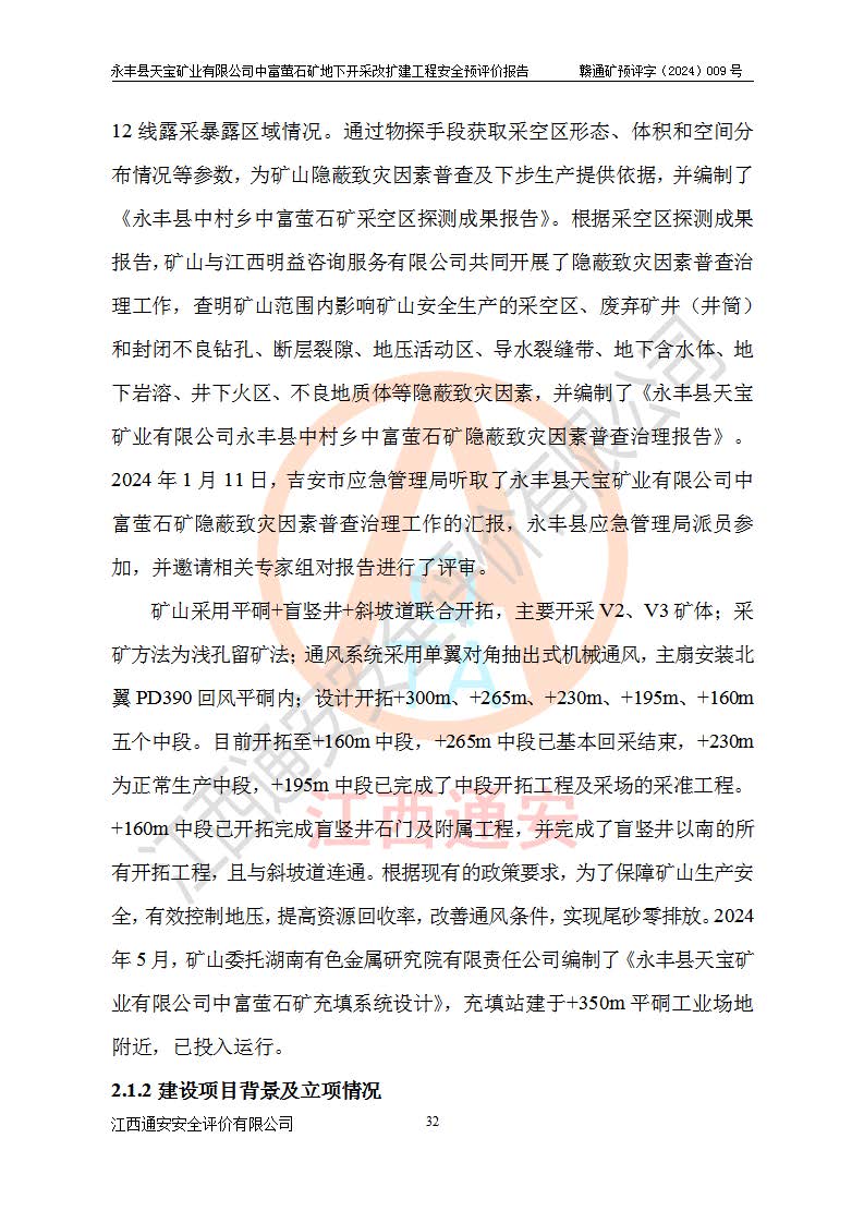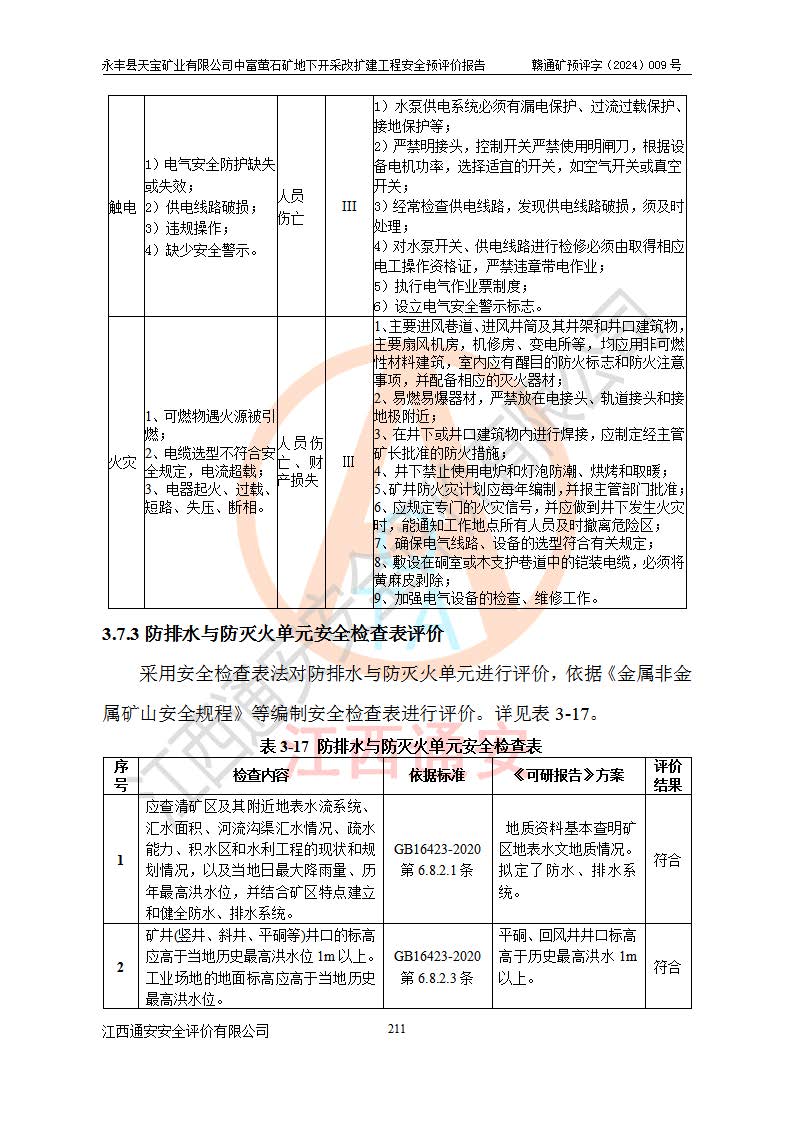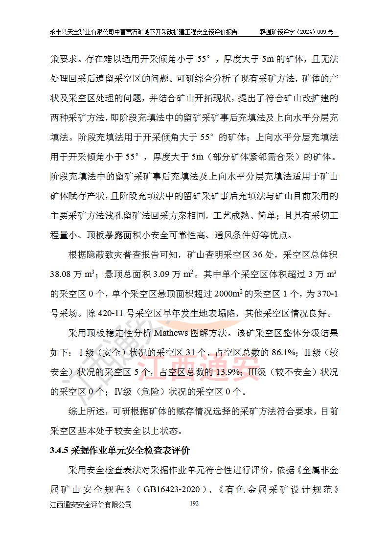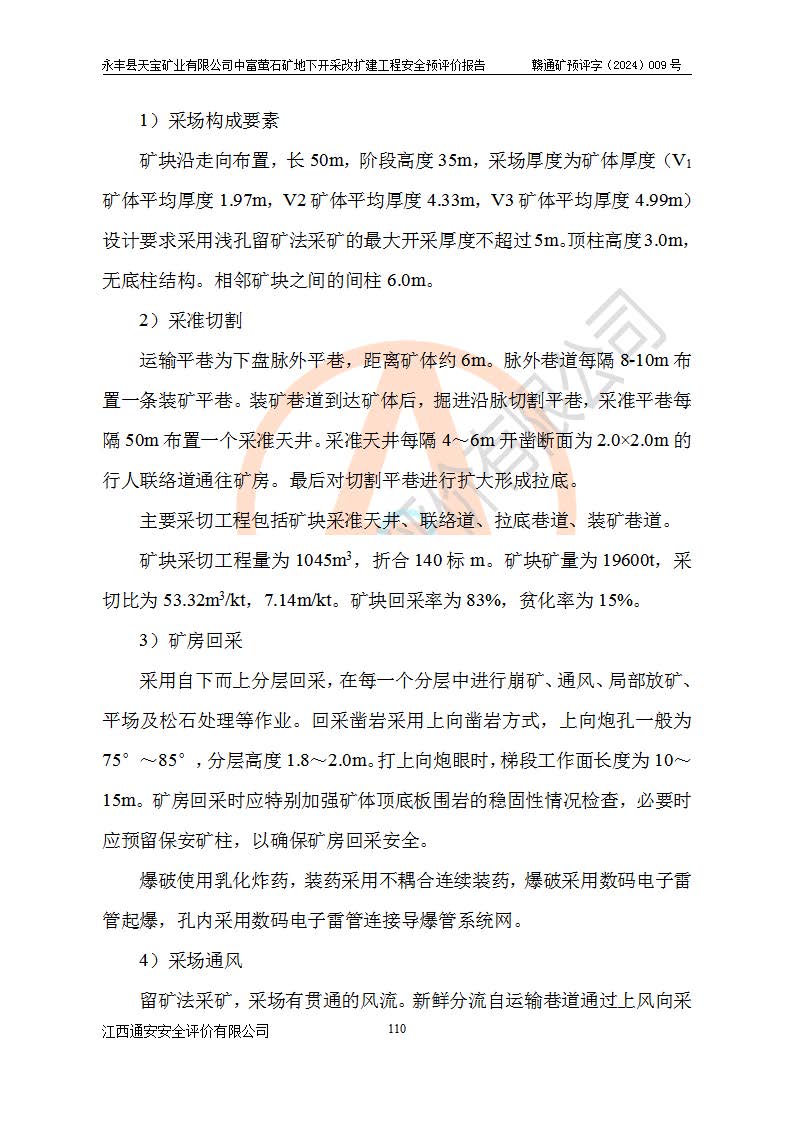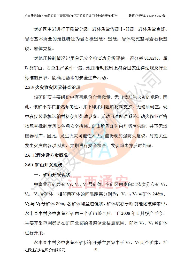 项目名称 | 永丰县天宝矿业有限公司中富萤石矿地下开采改扩建工程安全预评价报告 | ||||