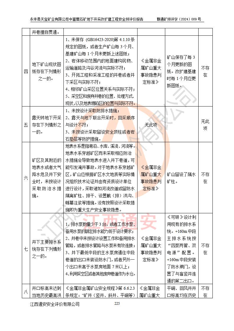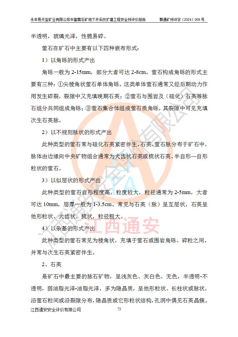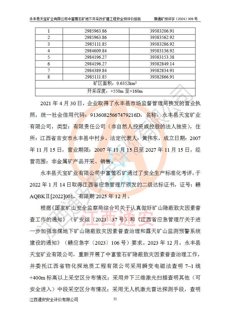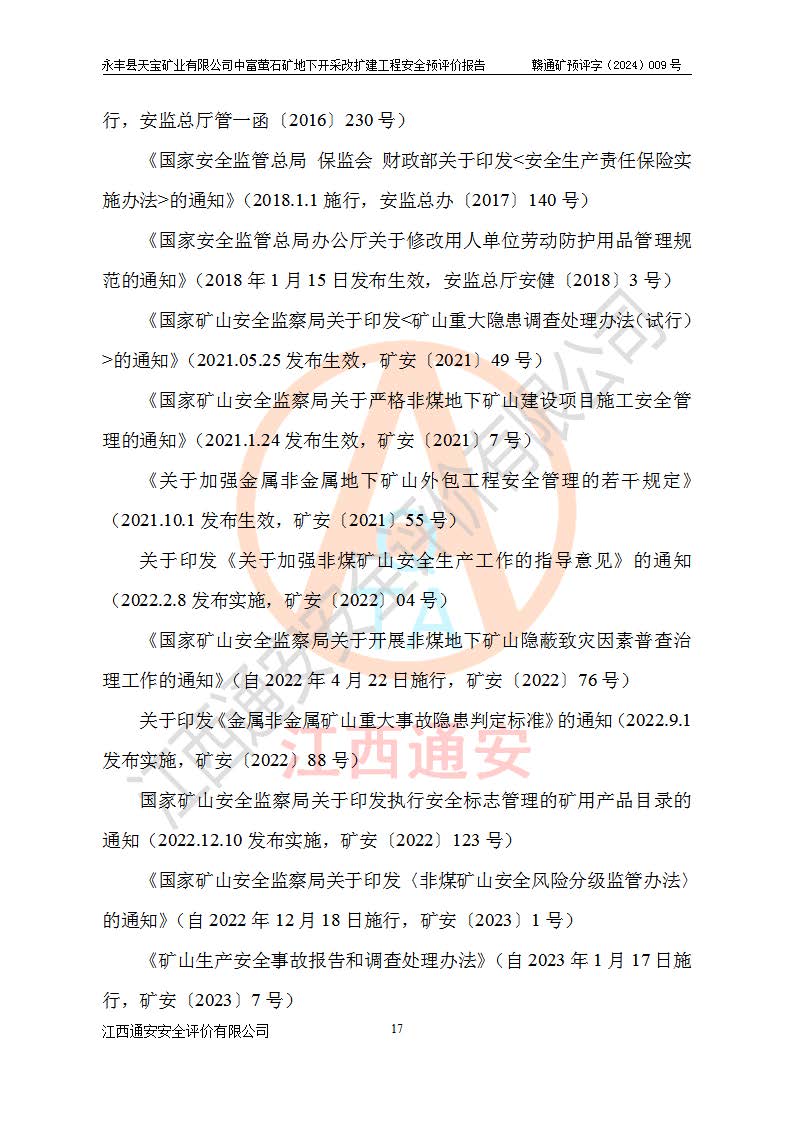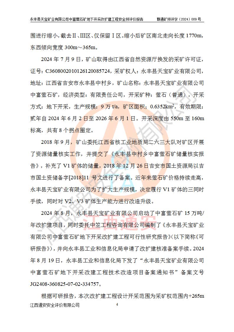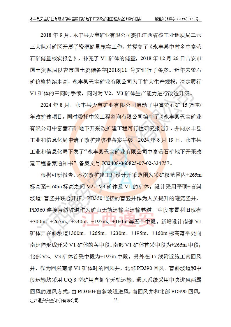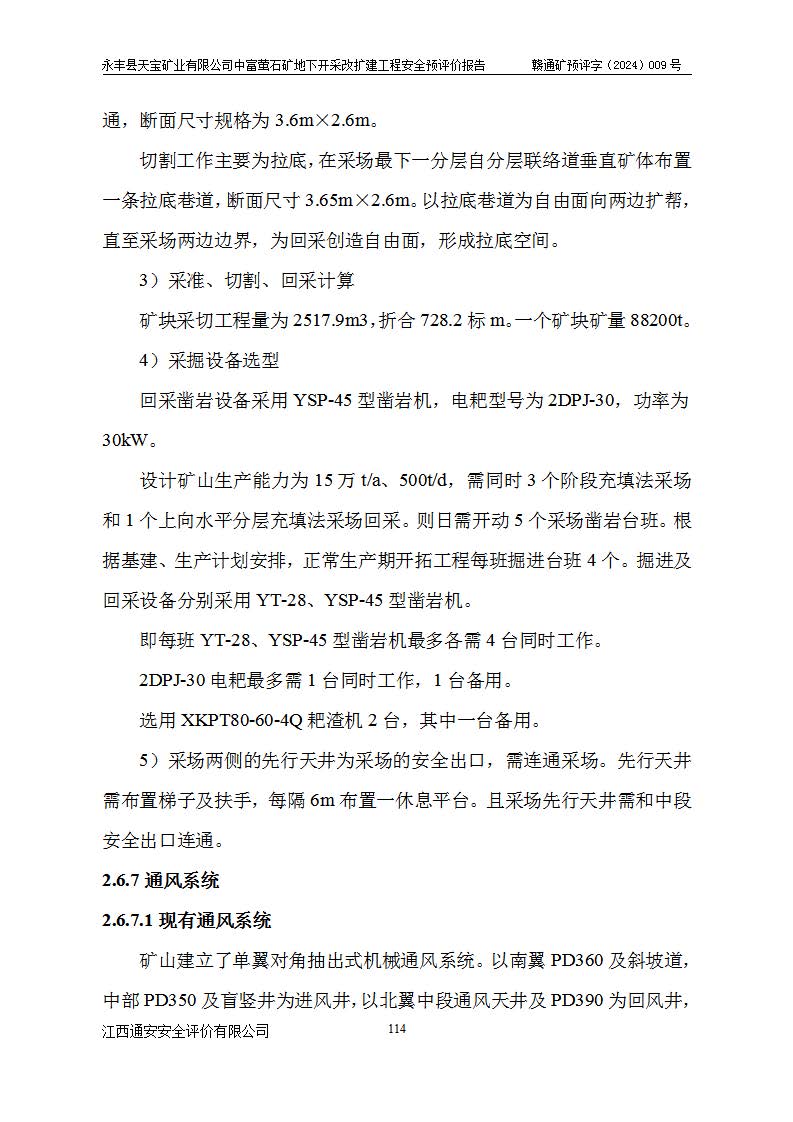 项目名称 | 永丰县天宝矿业有限公司中富萤石矿地下开采改扩建工程安全预评价报告 | ||||