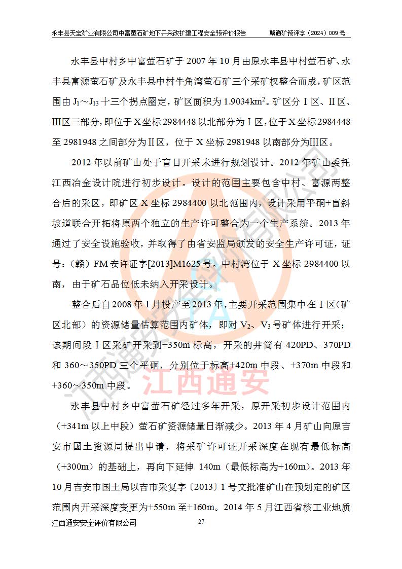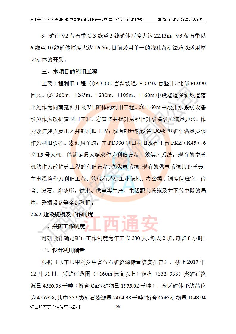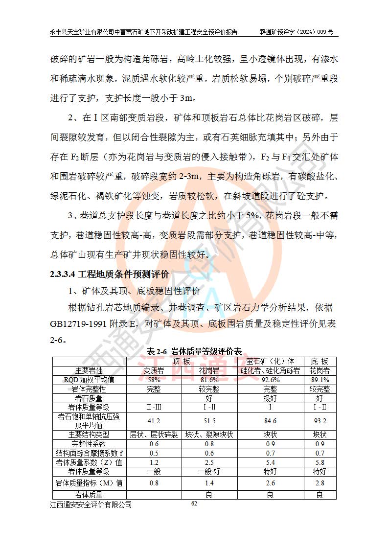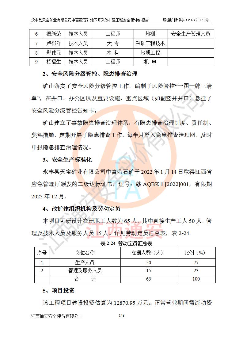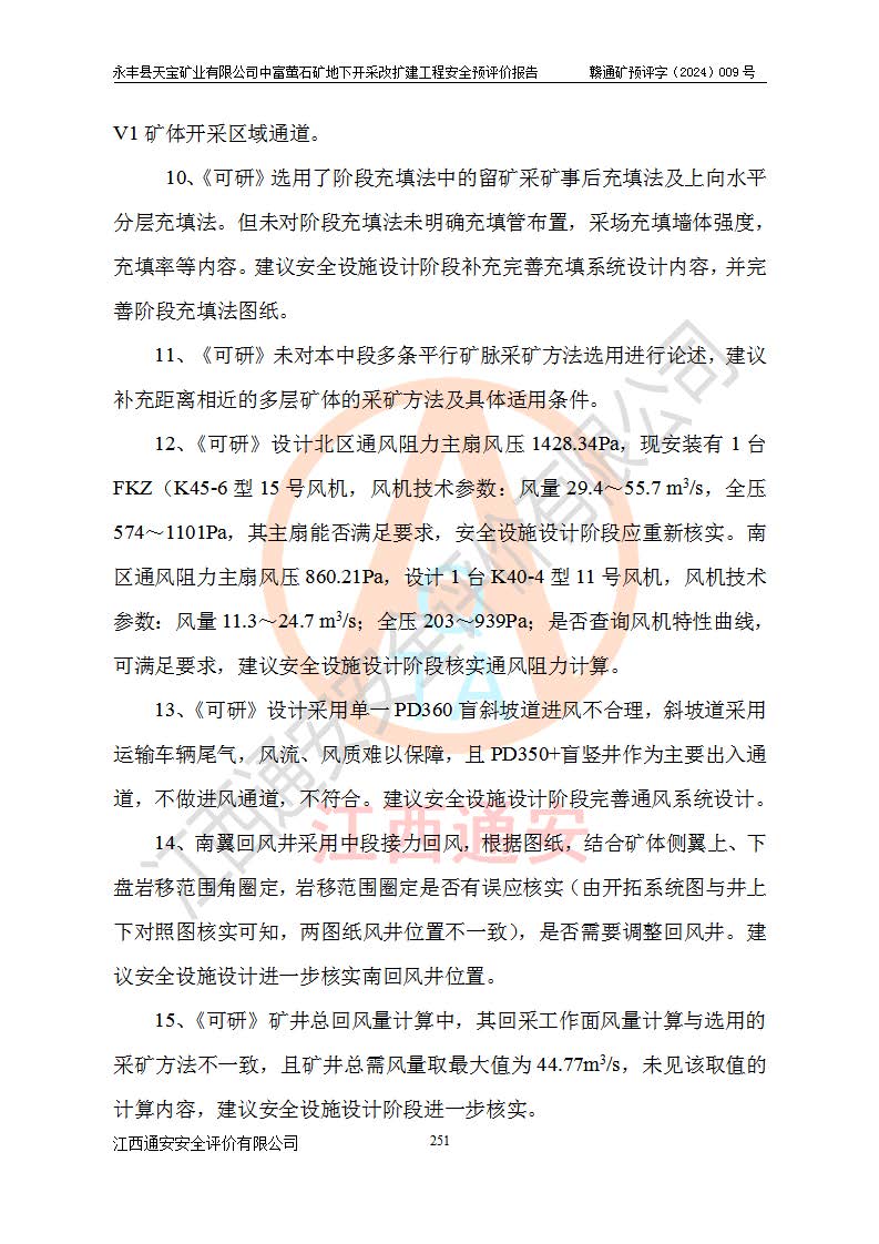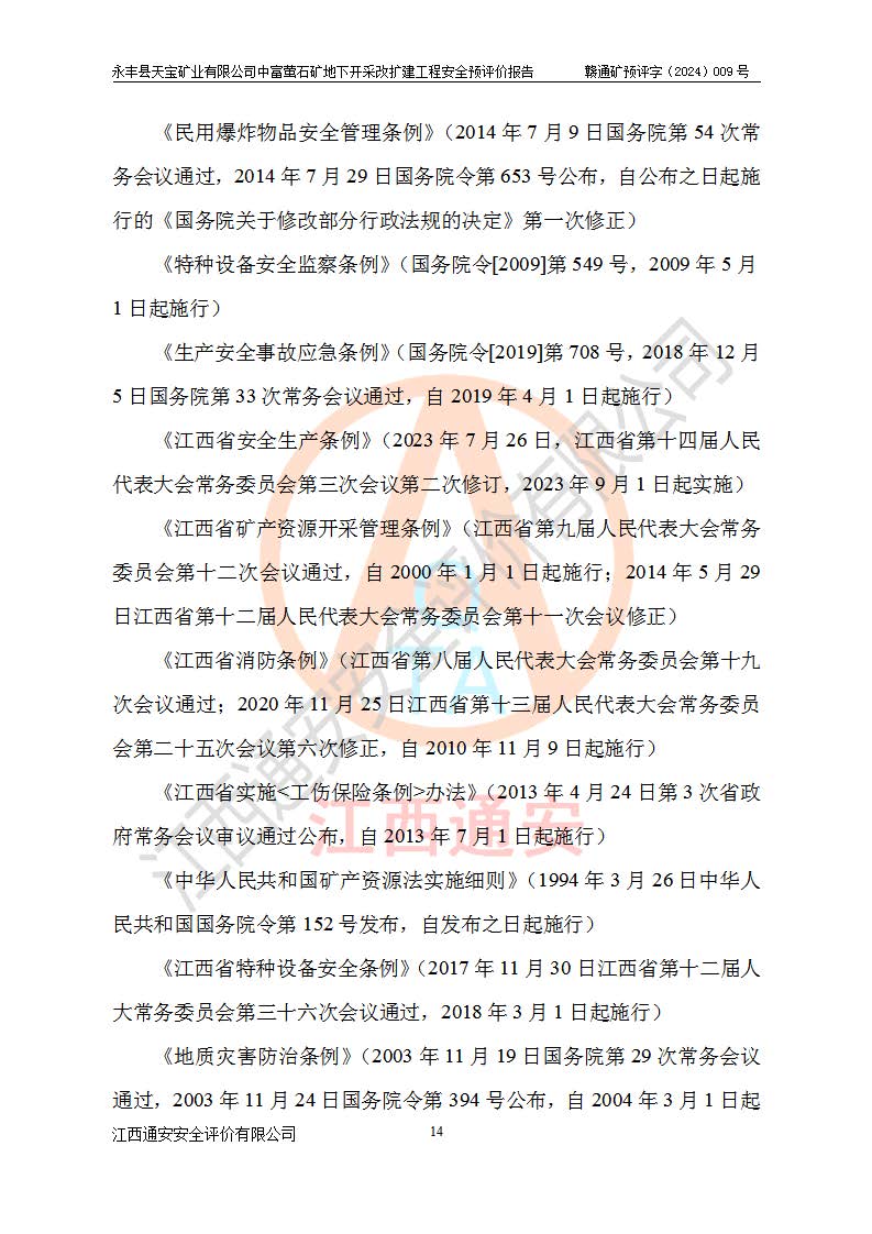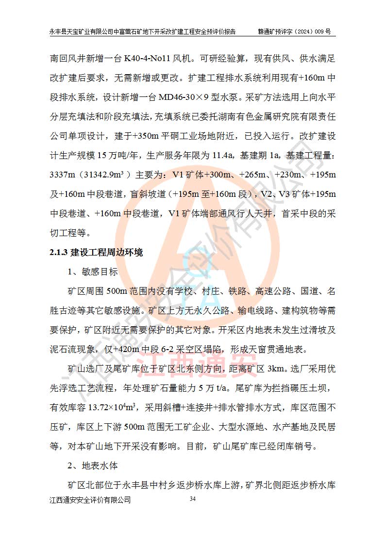 项目名称 | 永丰县天宝矿业有限公司中富萤石矿地下开采改扩建工程安全预评价报告 | ||||