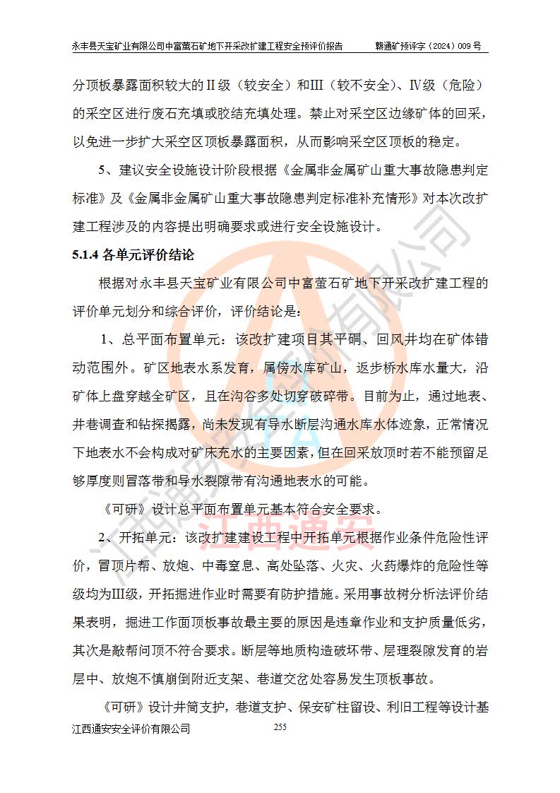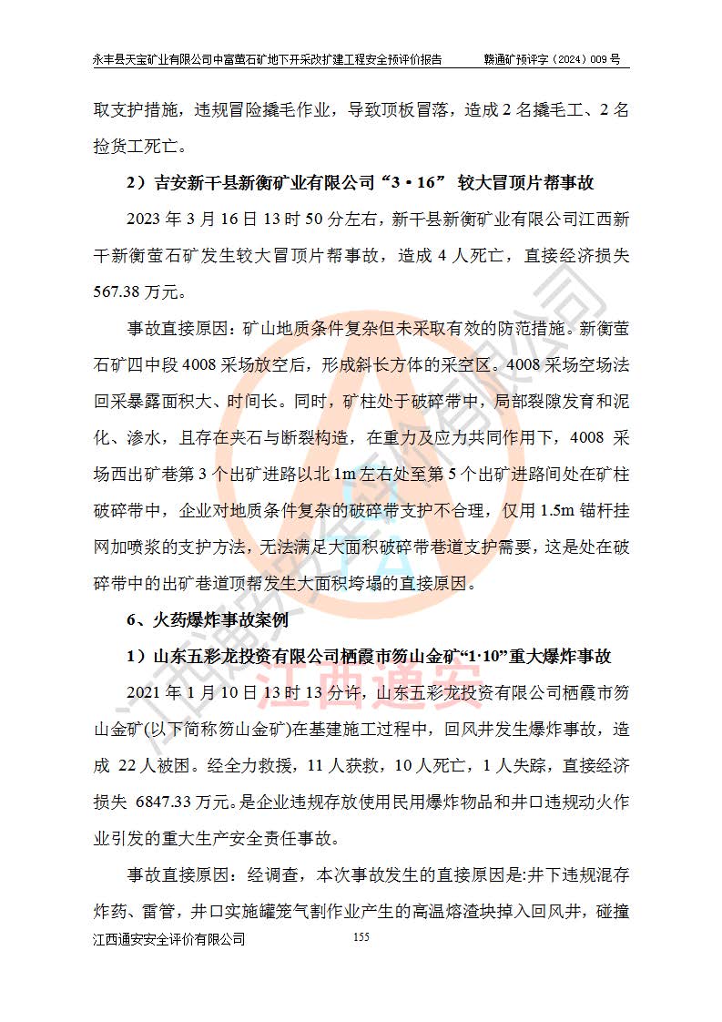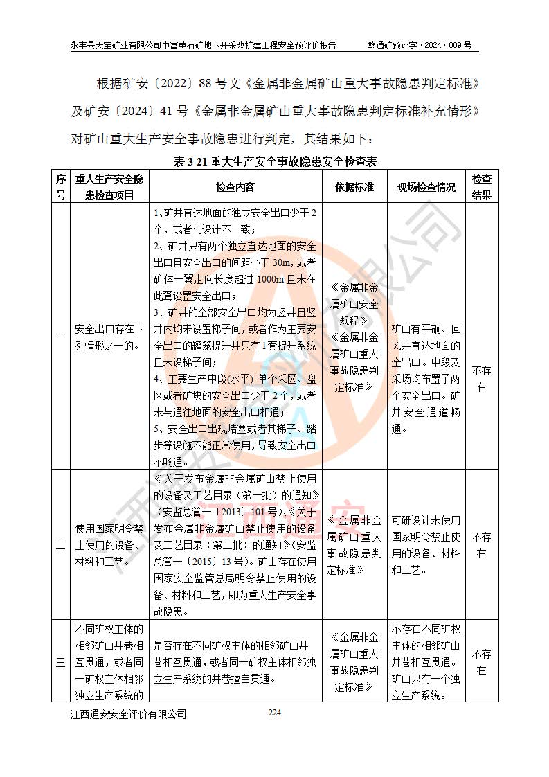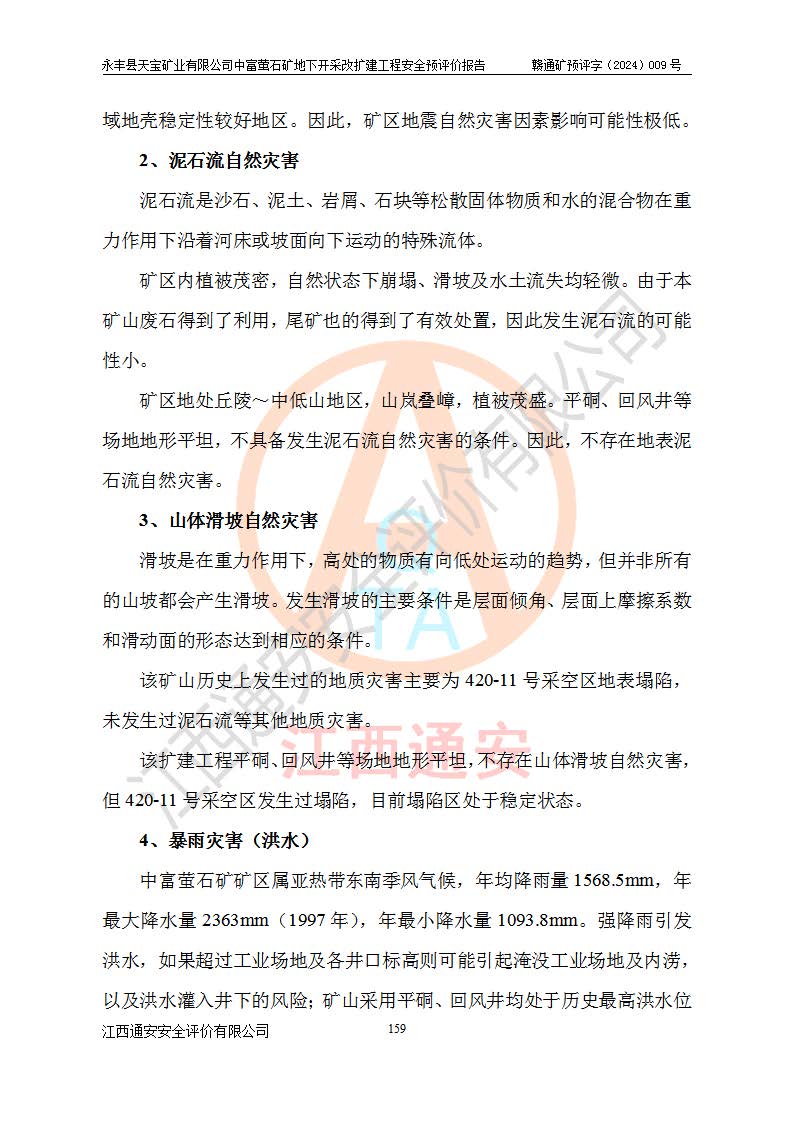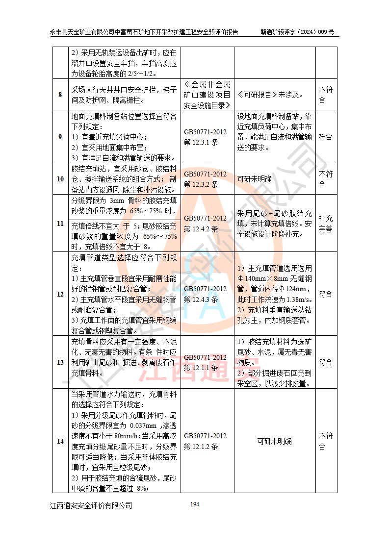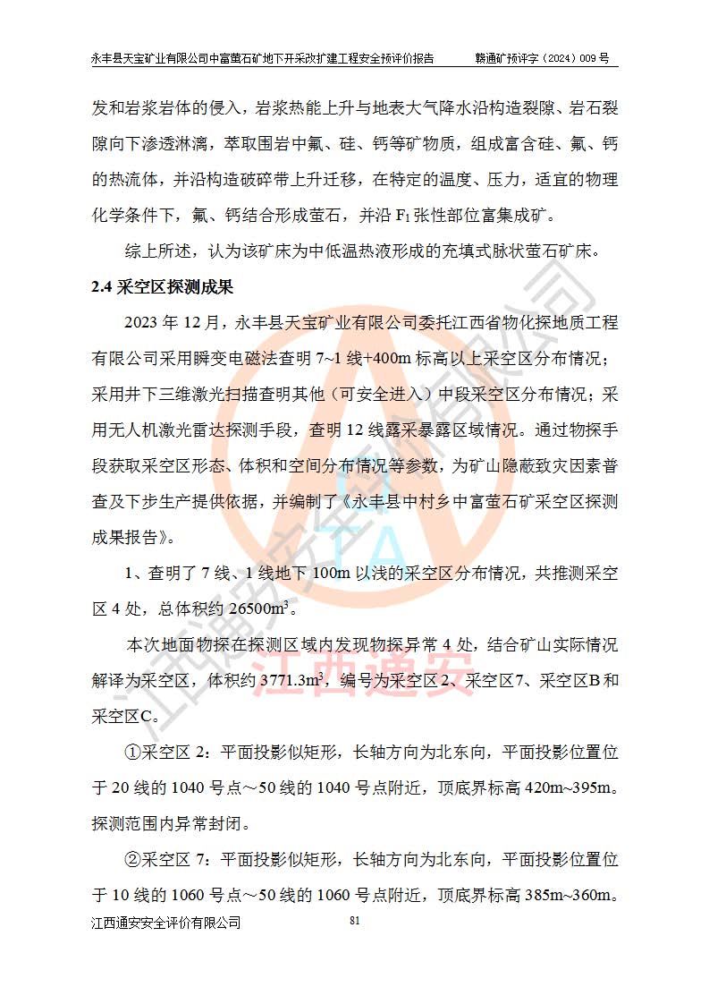 项目名称 | 永丰县天宝矿业有限公司中富萤石矿地下开采改扩建工程安全预评价报告 | ||||