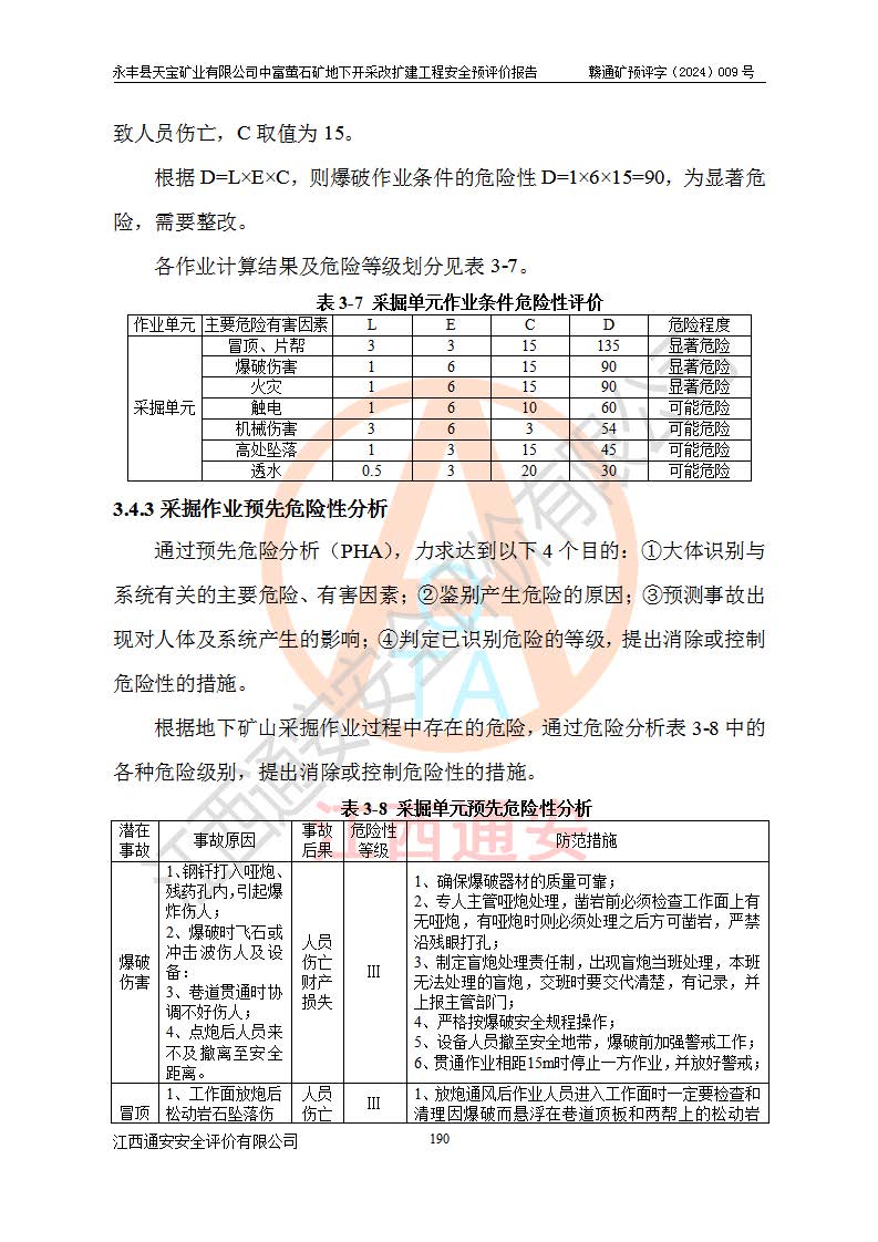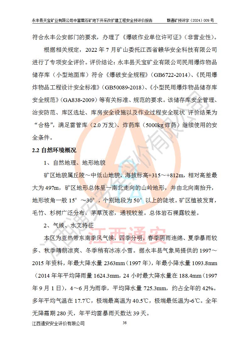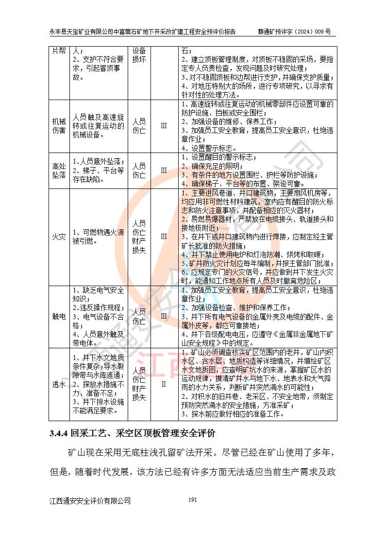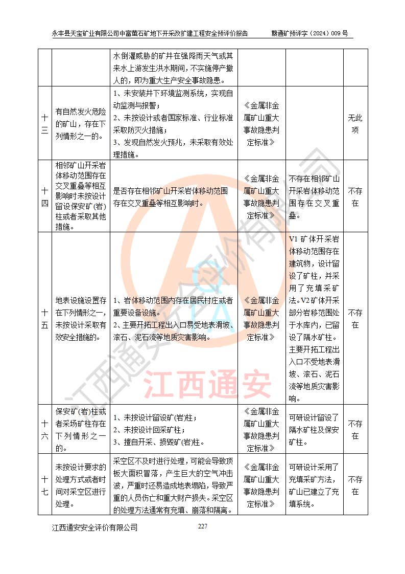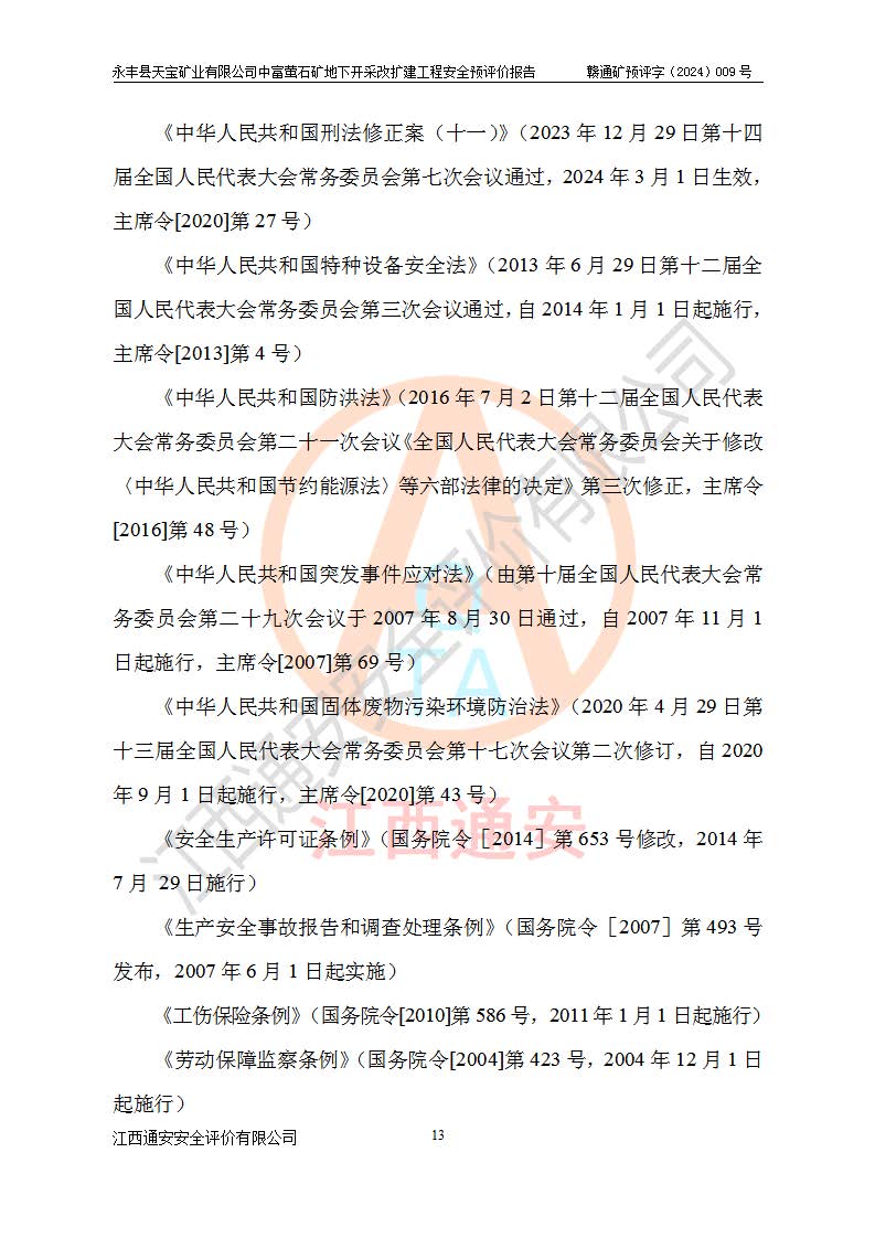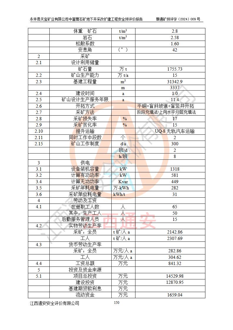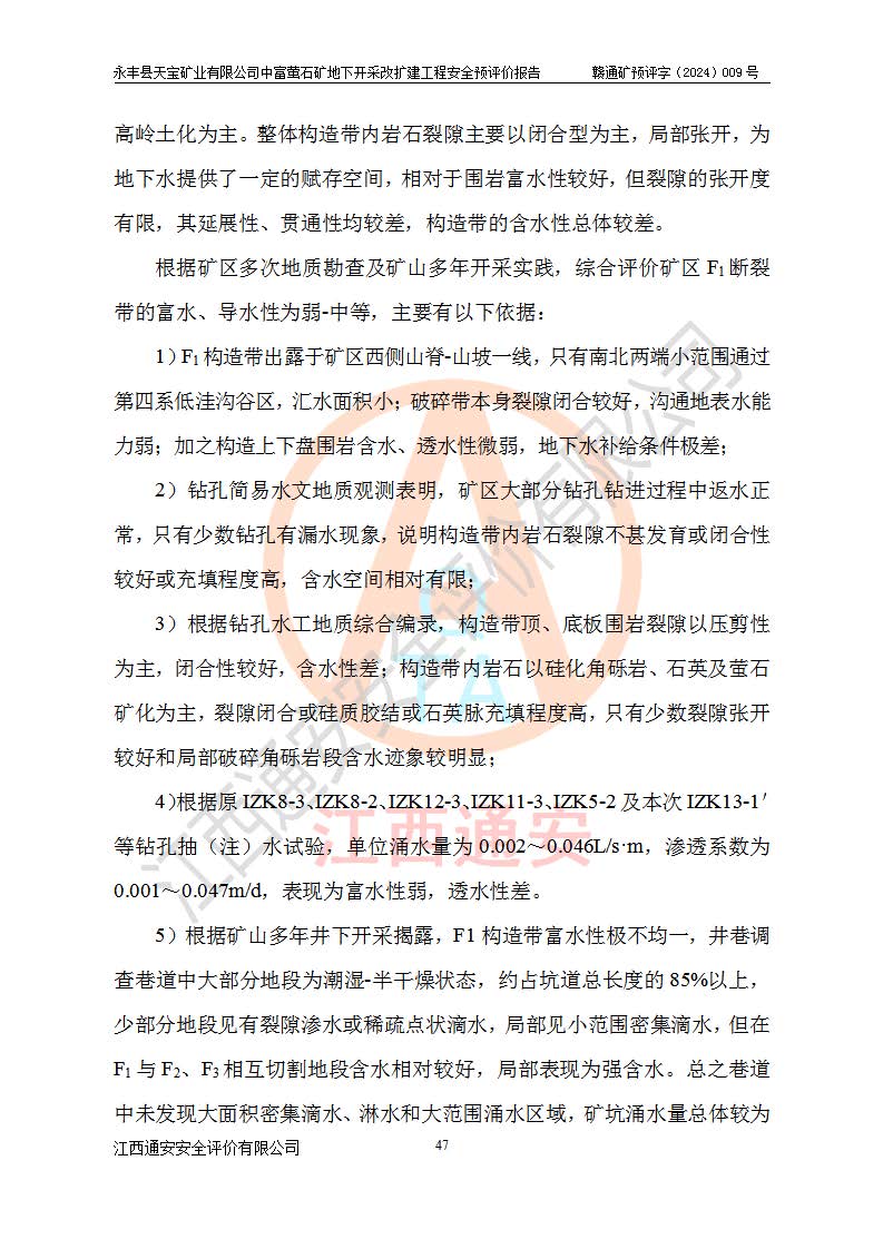项目名称 | 永丰县天宝矿业有限公司中富萤石矿地下开采改扩建工程安全预评价报告 | ||||
