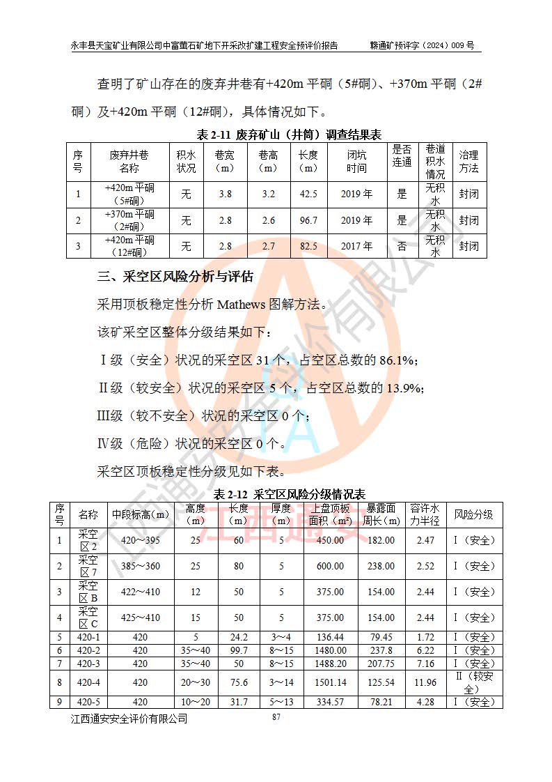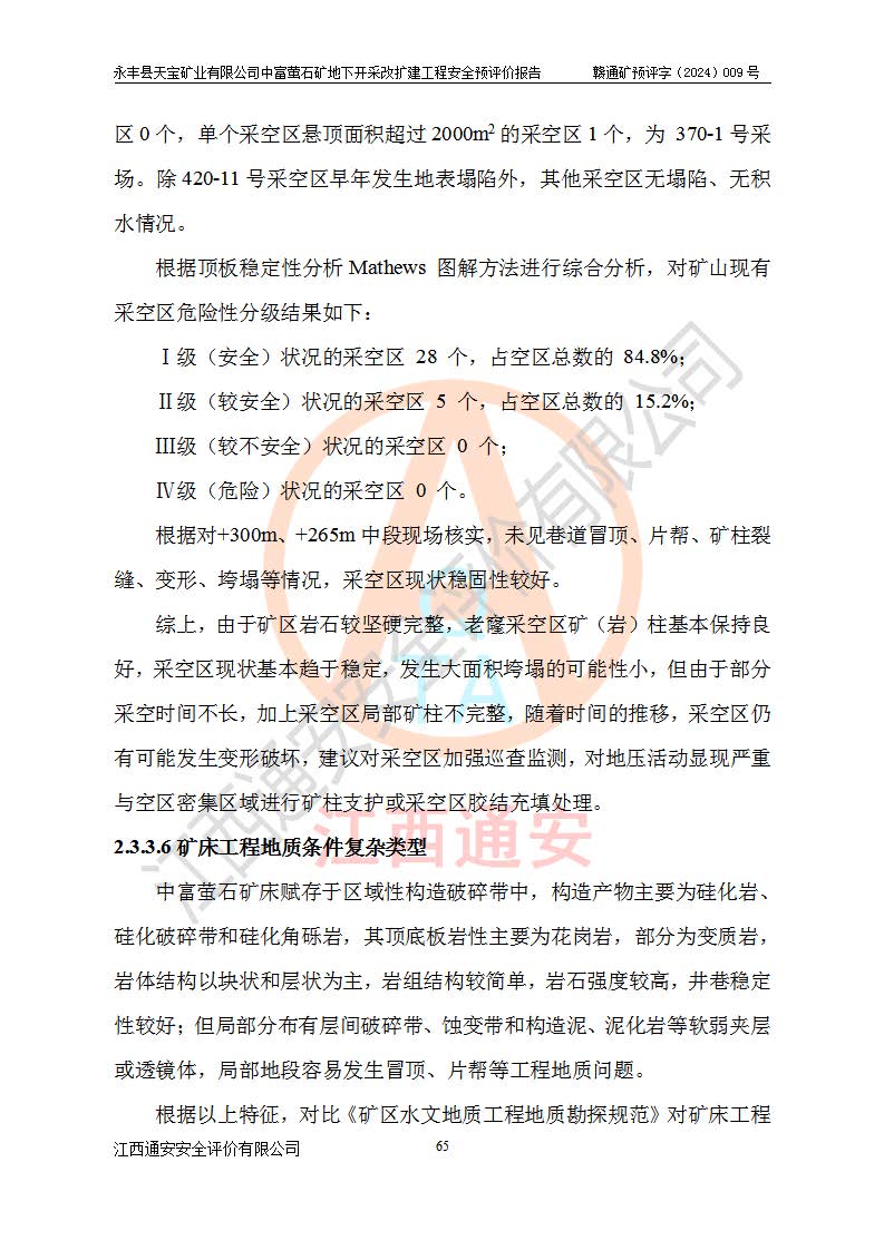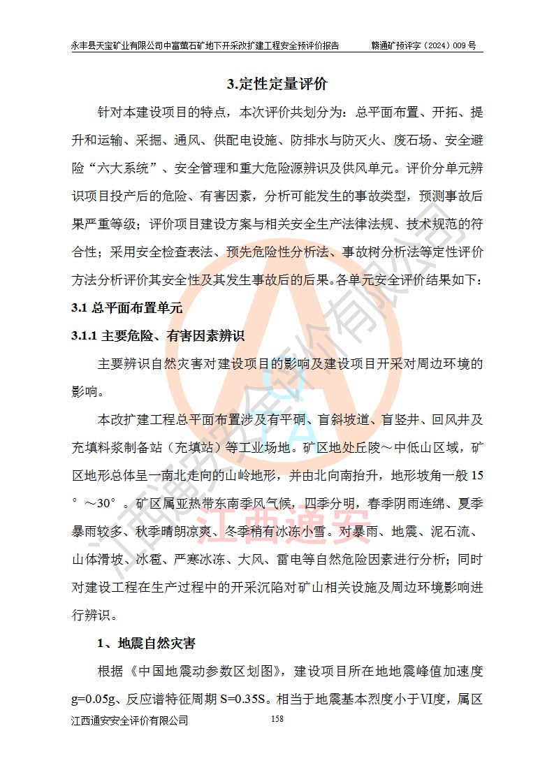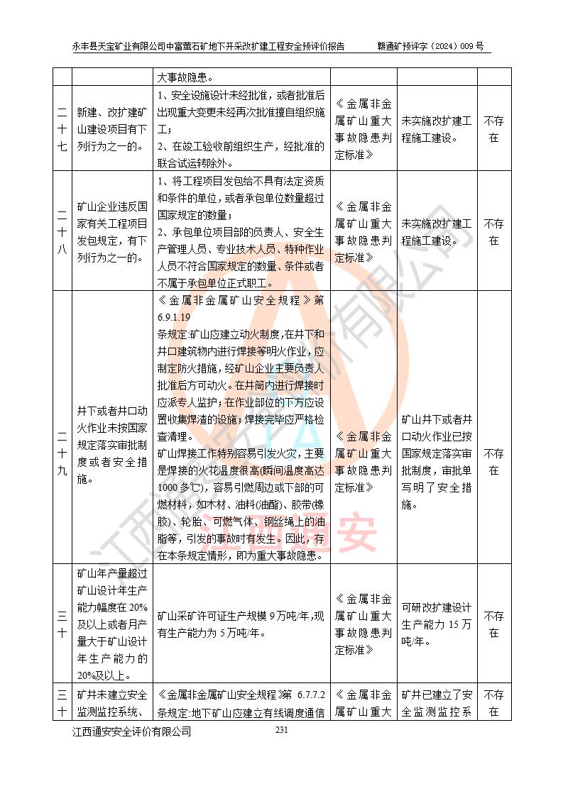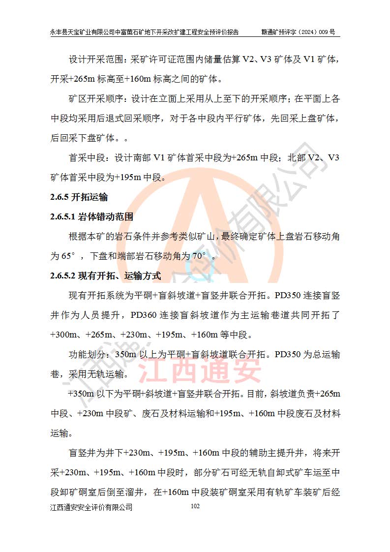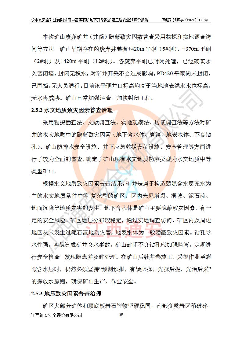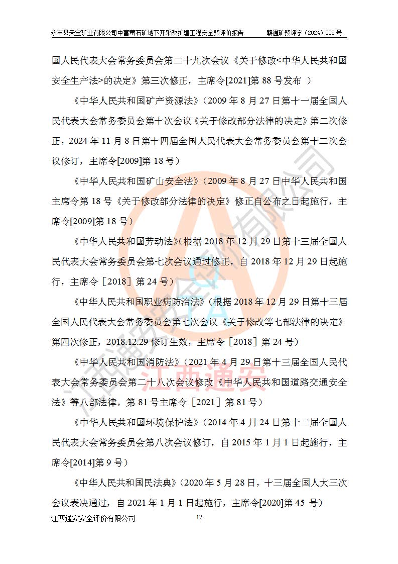 项目名称 | 永丰县天宝矿业有限公司中富萤石矿地下开采改扩建工程安全预评价报告 | ||||