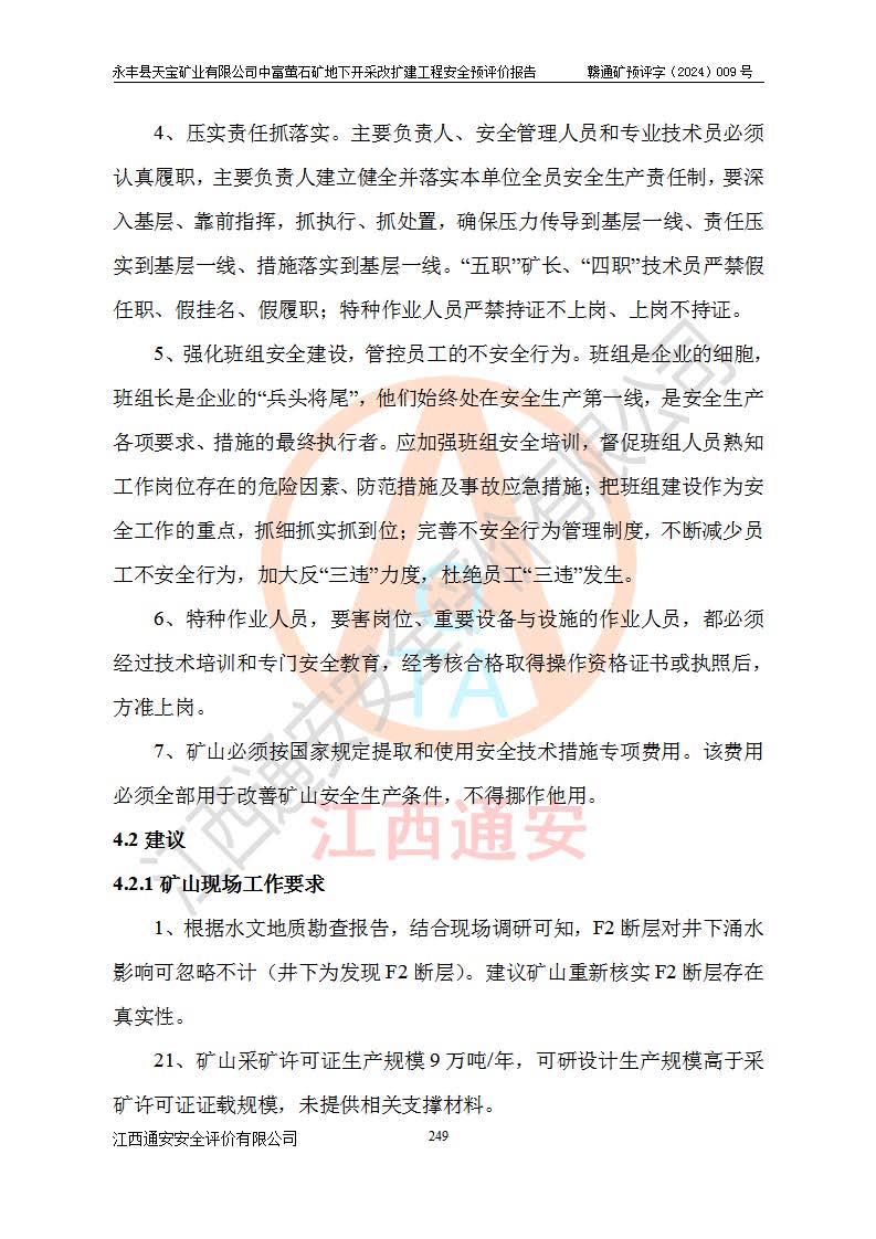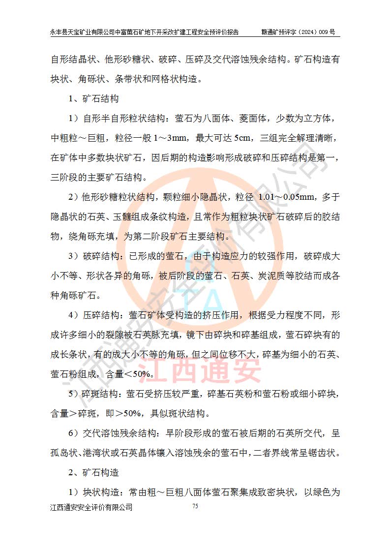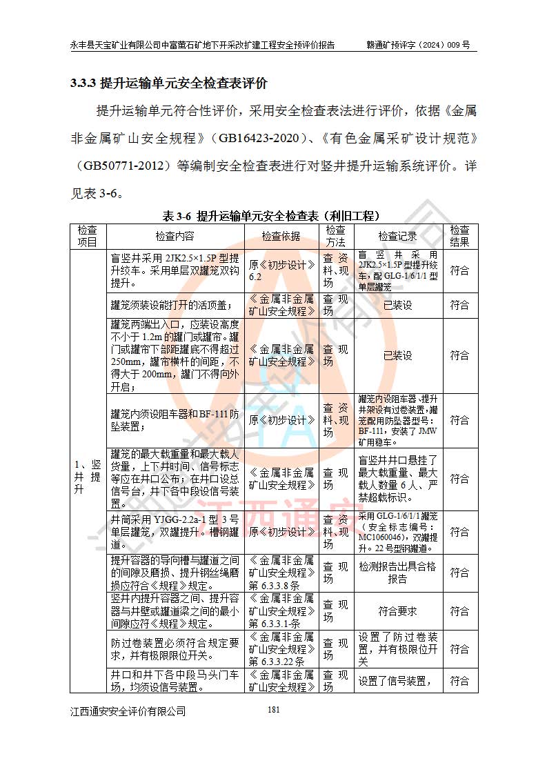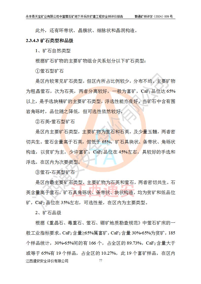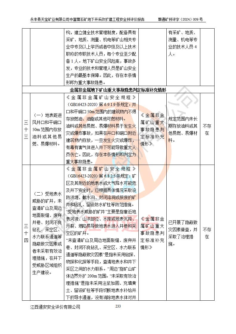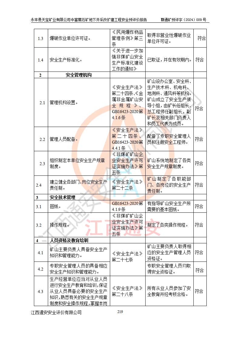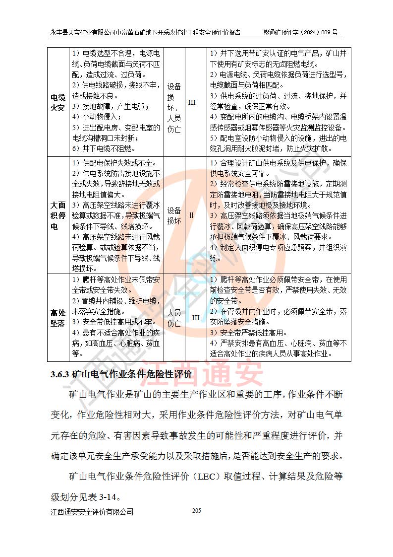项目名称 | 永丰县天宝矿业有限公司中富萤石矿地下开采改扩建工程安全预评价报告 | ||||