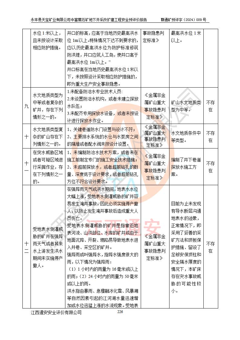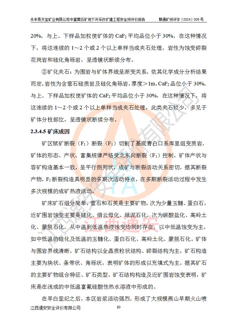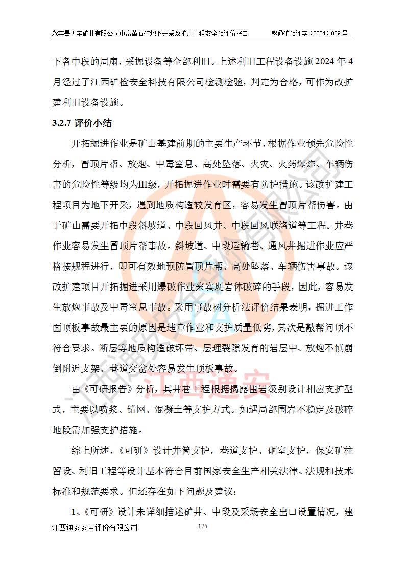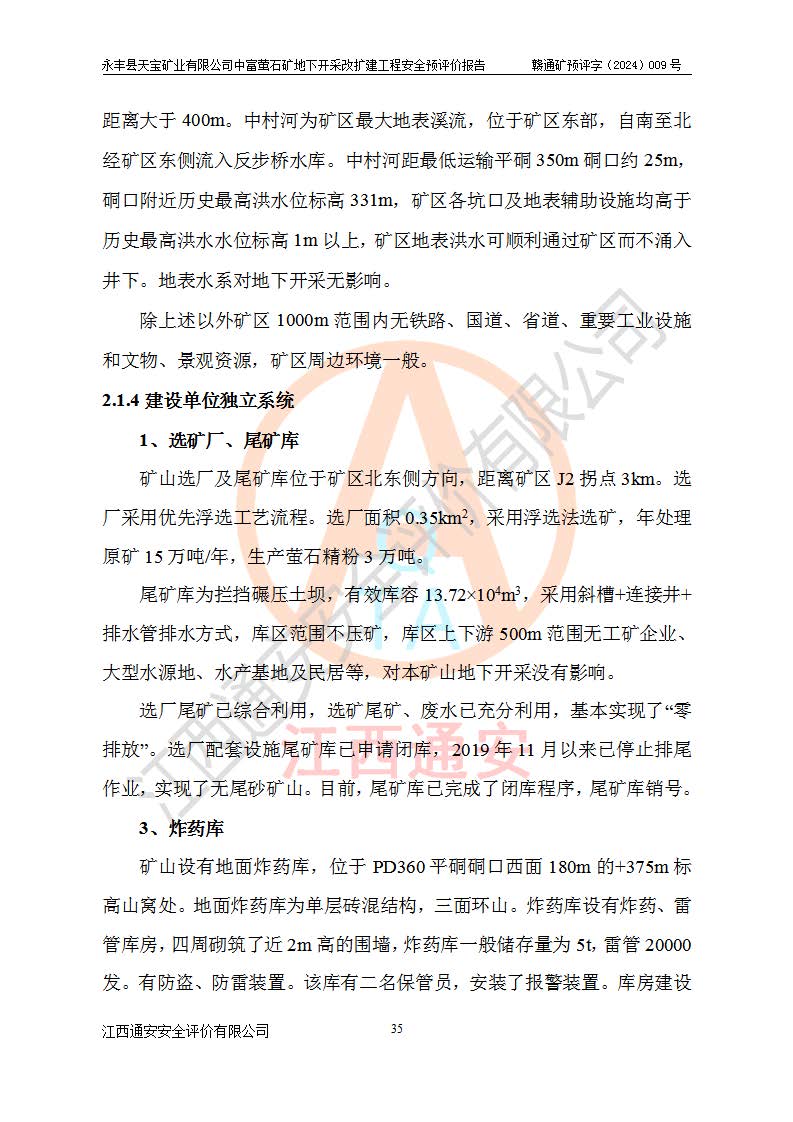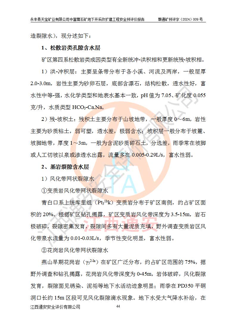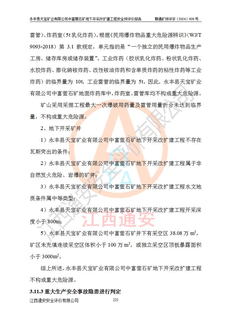 项目名称 | 永丰县天宝矿业有限公司中富萤石矿地下开采改扩建工程安全预评价报告 | ||||