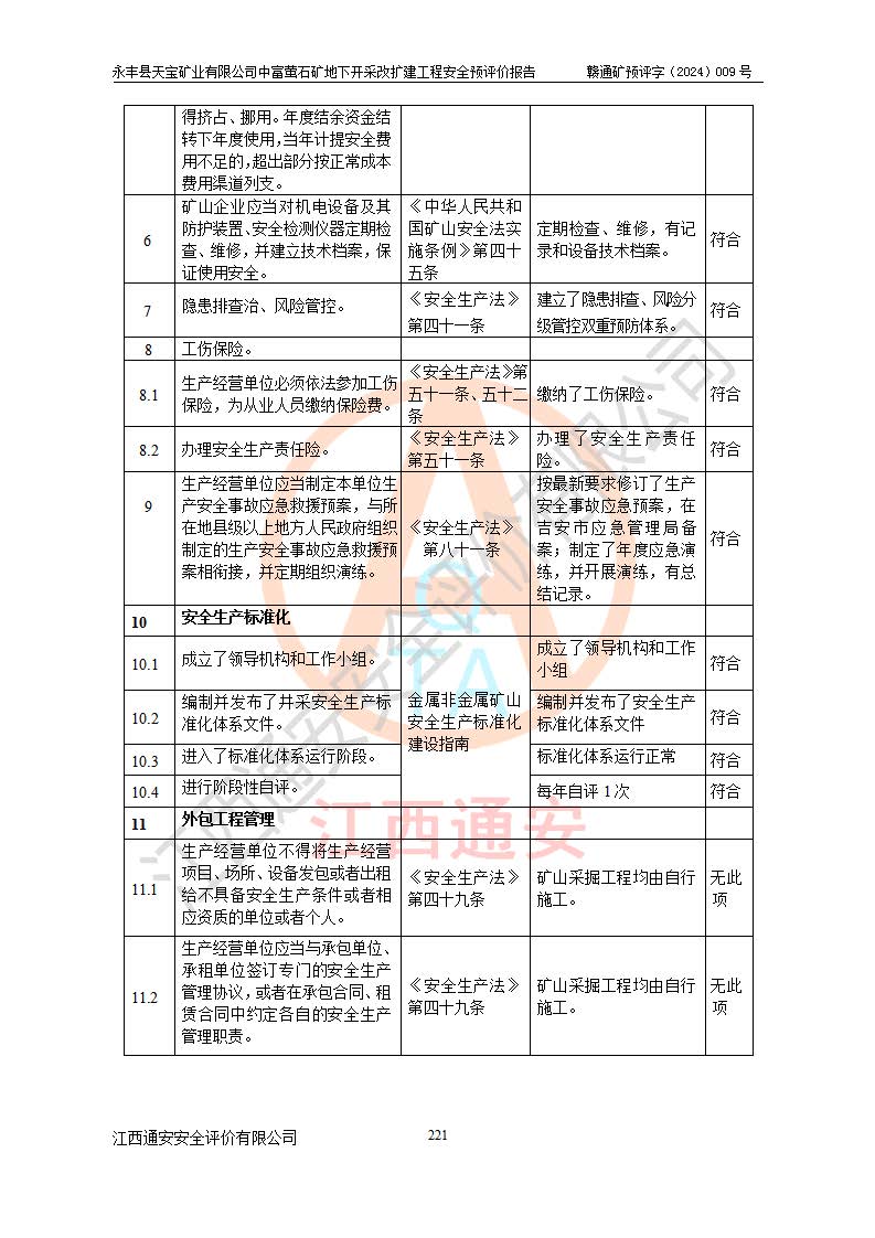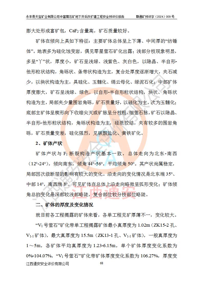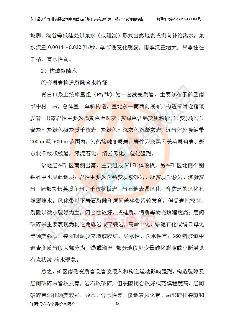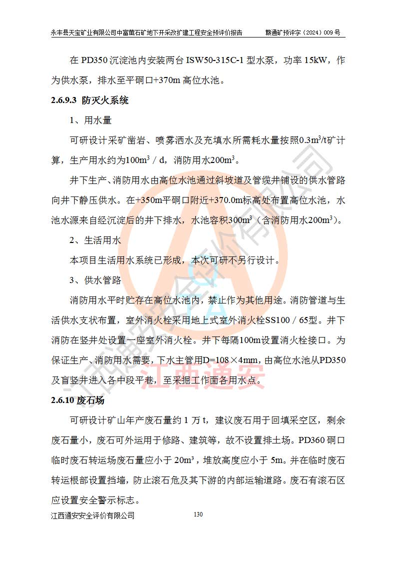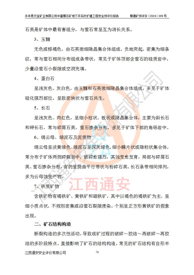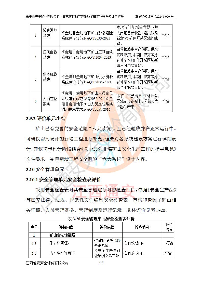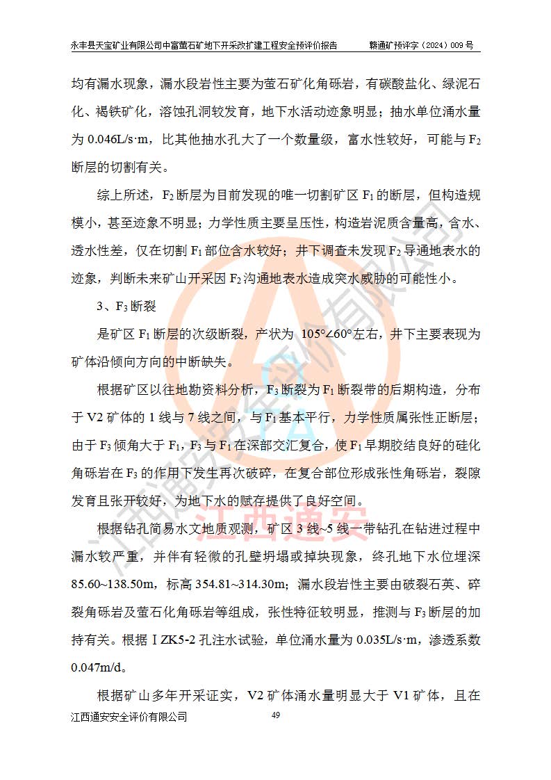 项目名称 | 永丰县天宝矿业有限公司中富萤石矿地下开采改扩建工程安全预评价报告 | ||||