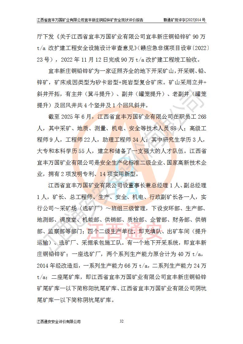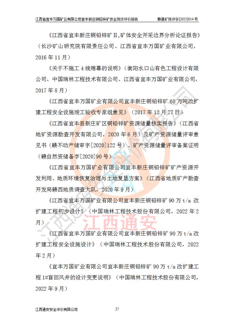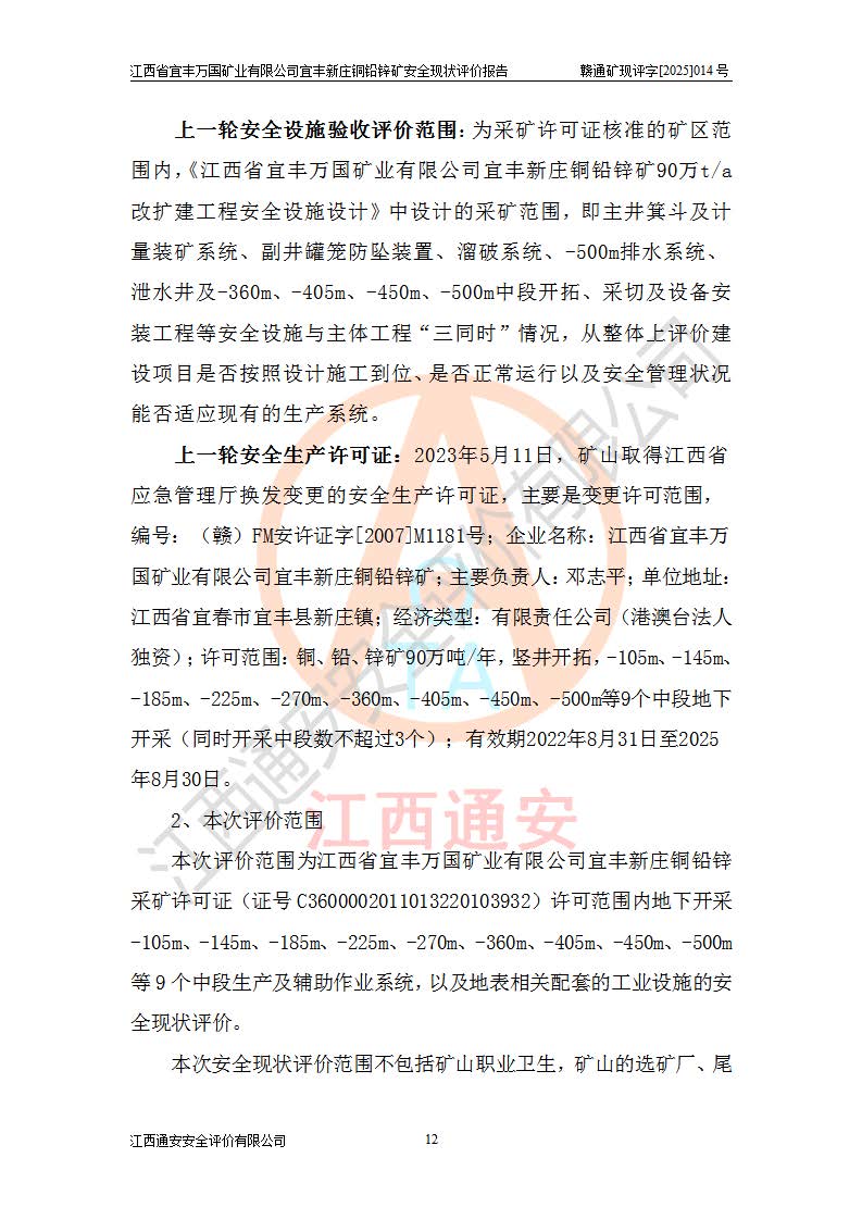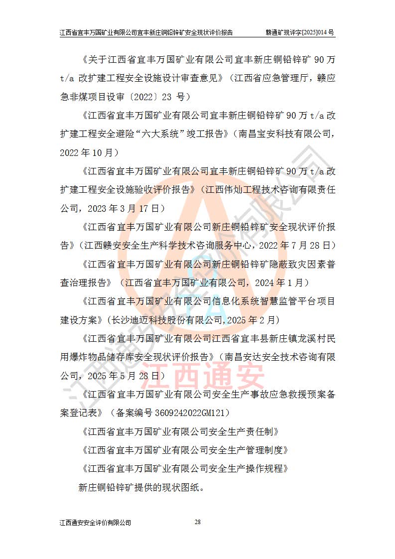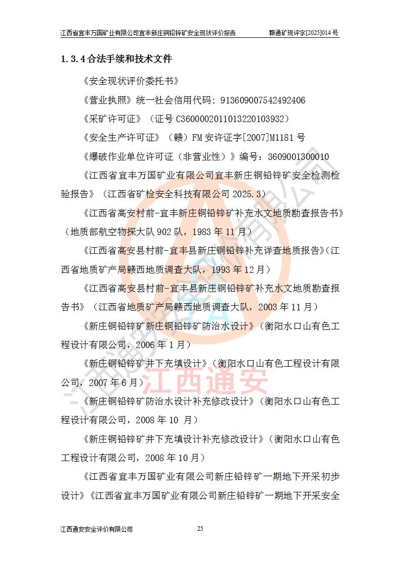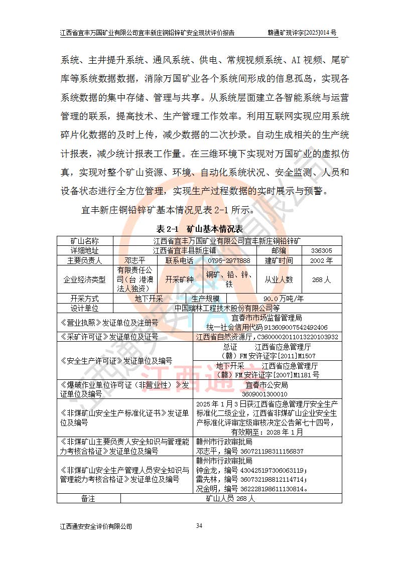 项目名称 | 江西省宜丰万国矿业有限公司宜丰新庄铜铅锌矿安全现状评价报告 | ||||