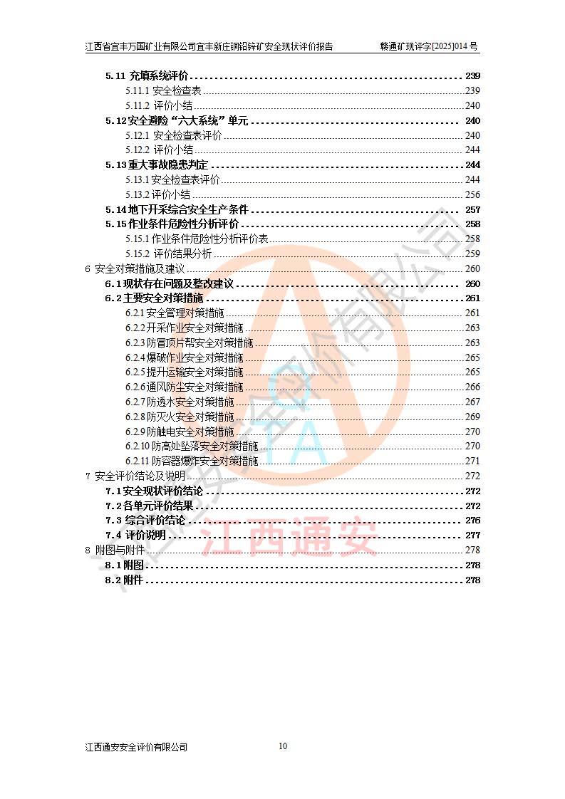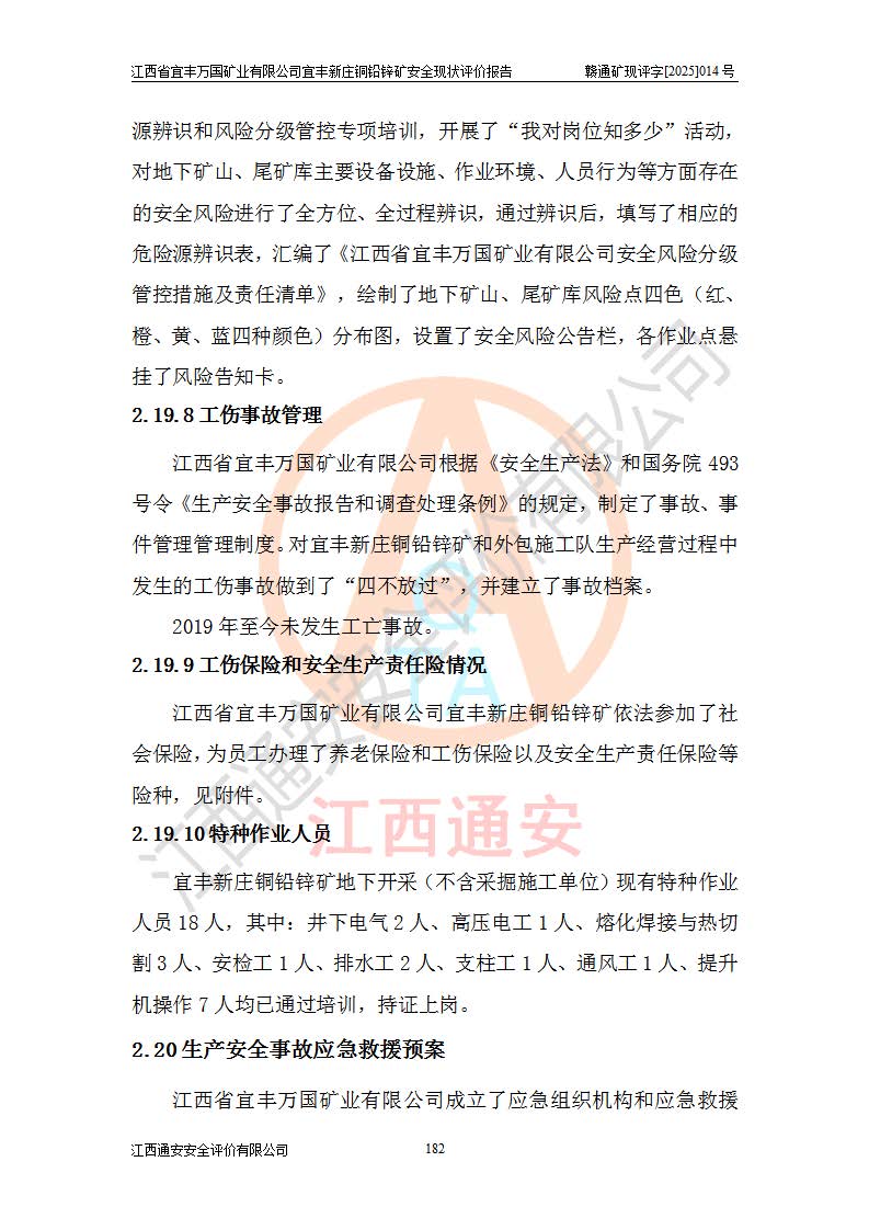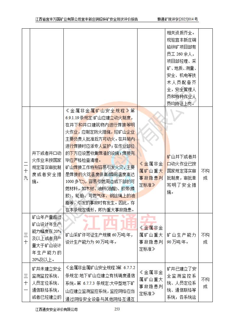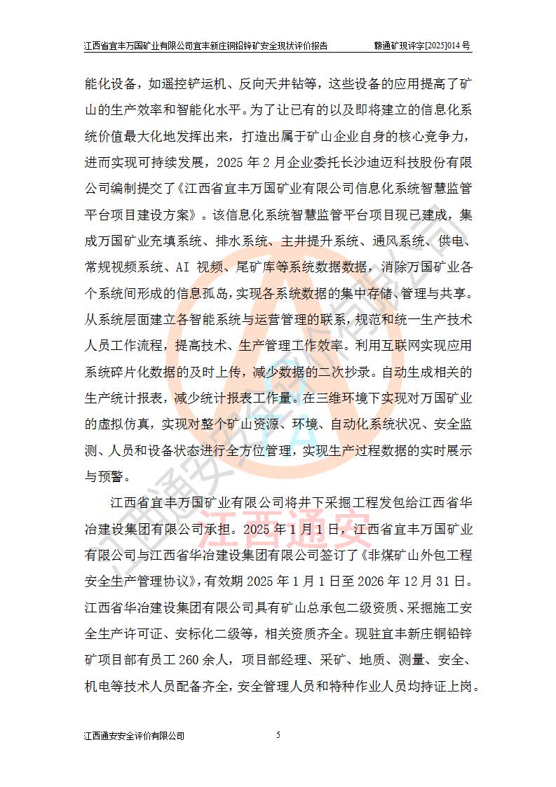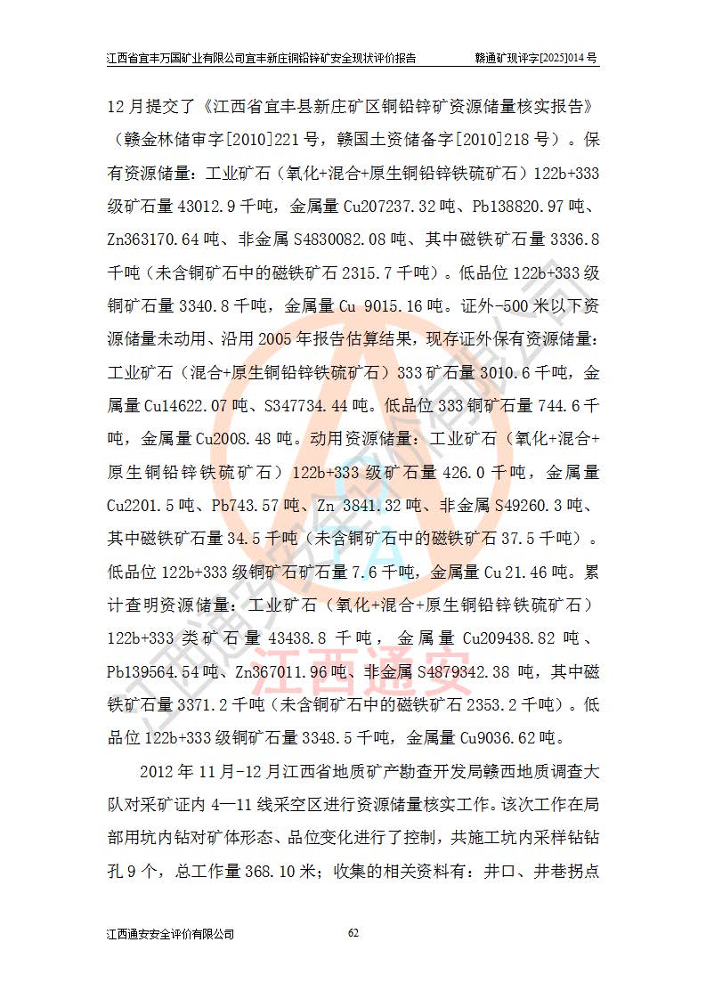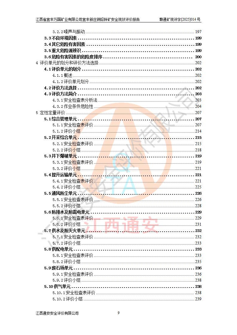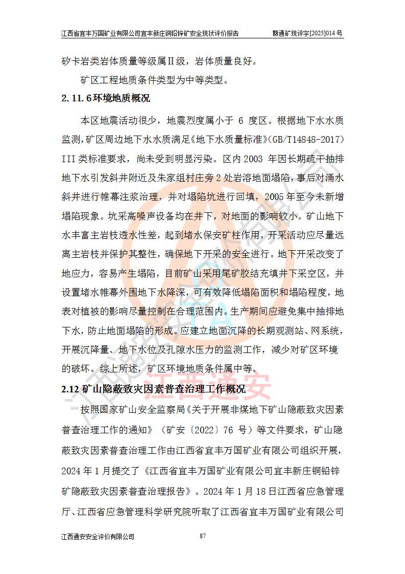 项目名称 | 江西省宜丰万国矿业有限公司宜丰新庄铜铅锌矿安全现状评价报告 | ||||