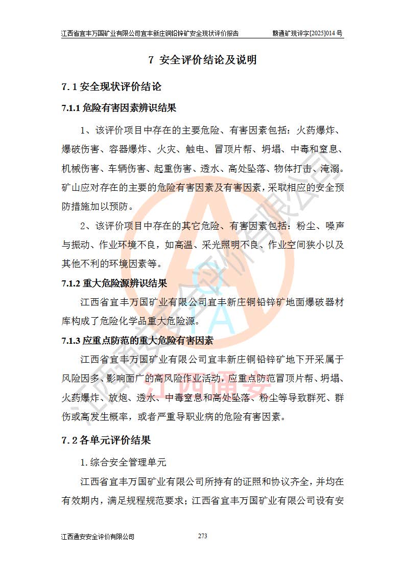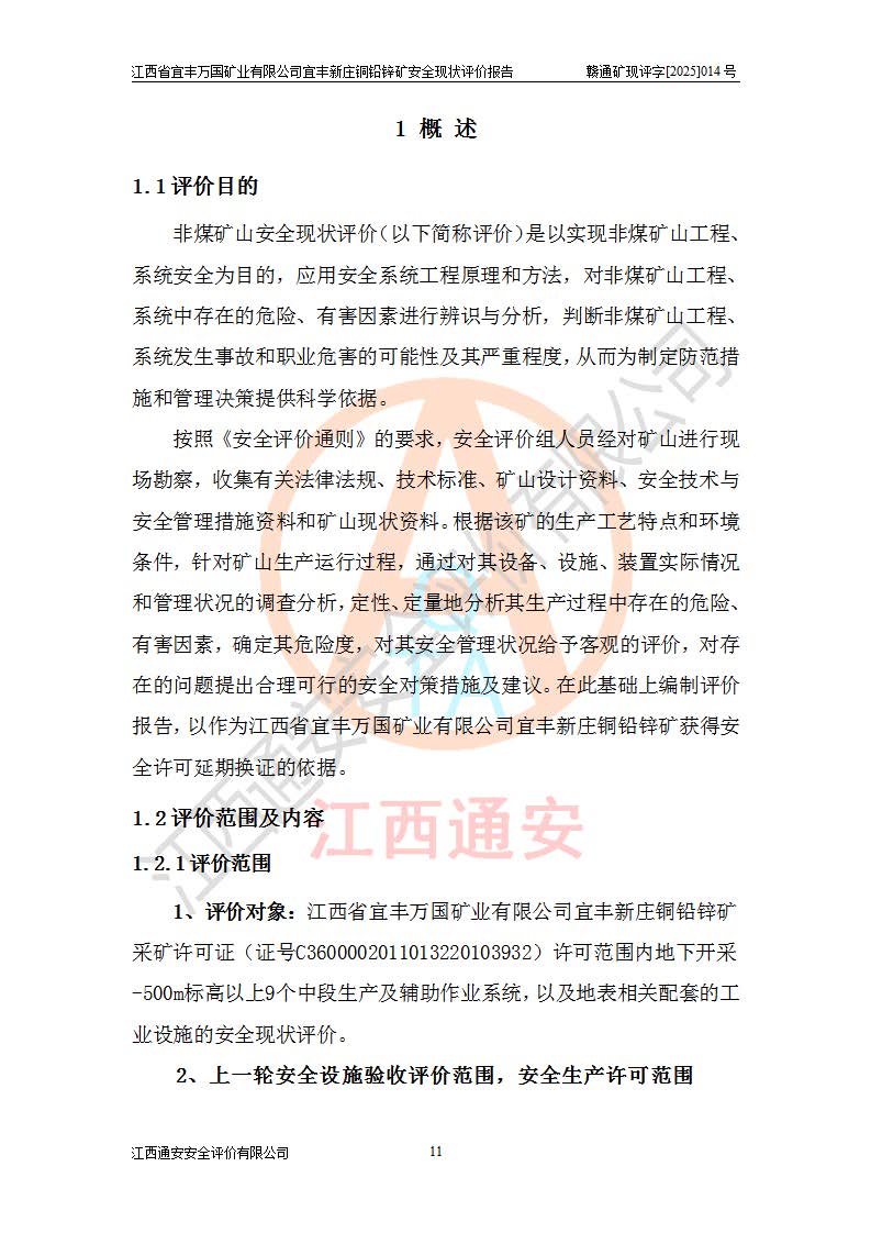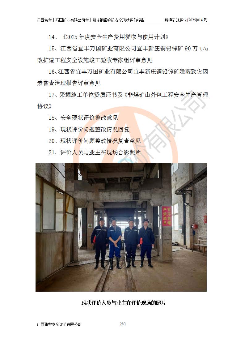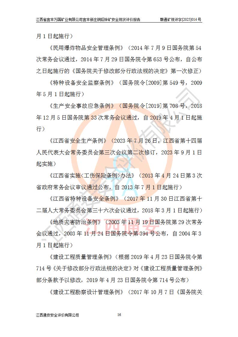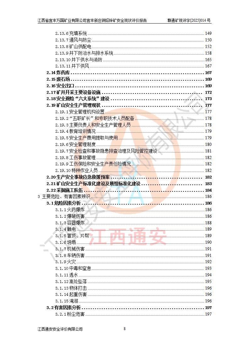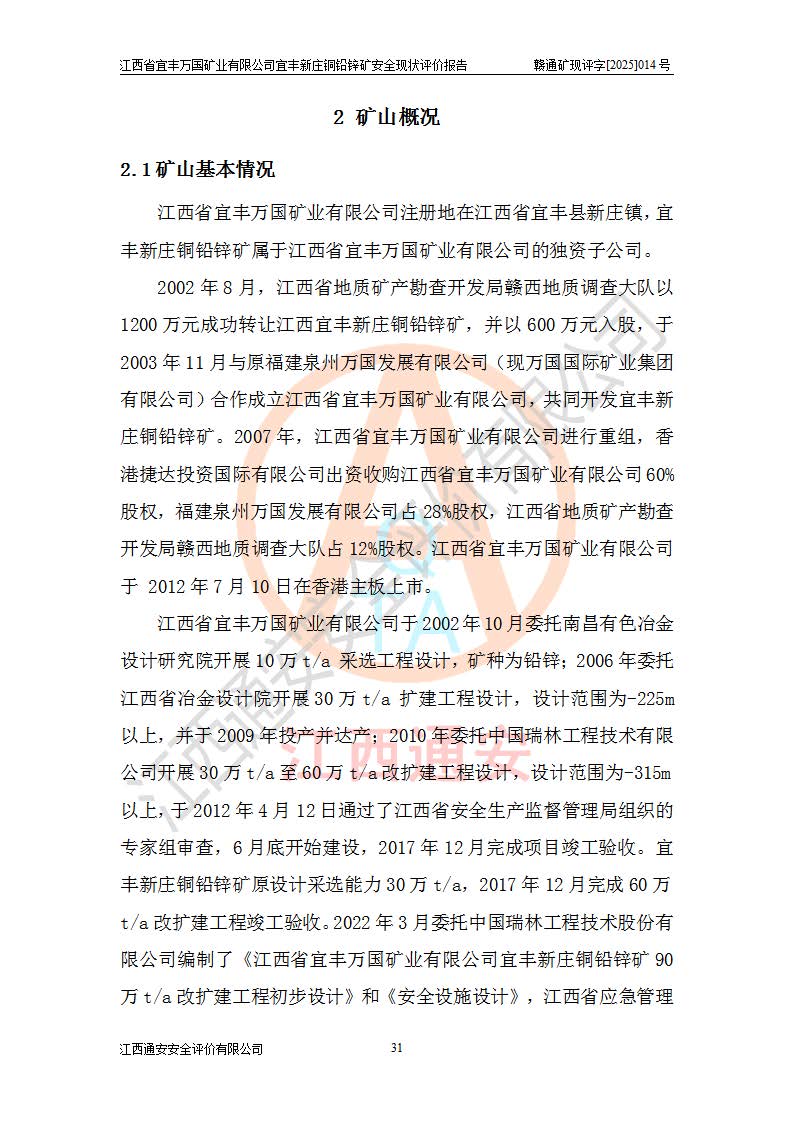 项目名称 | 江西省宜丰万国矿业有限公司宜丰新庄铜铅锌矿安全现状评价报告 | ||||