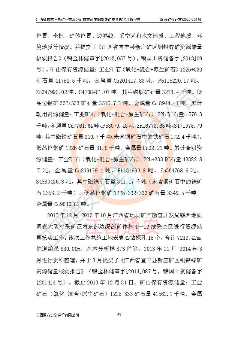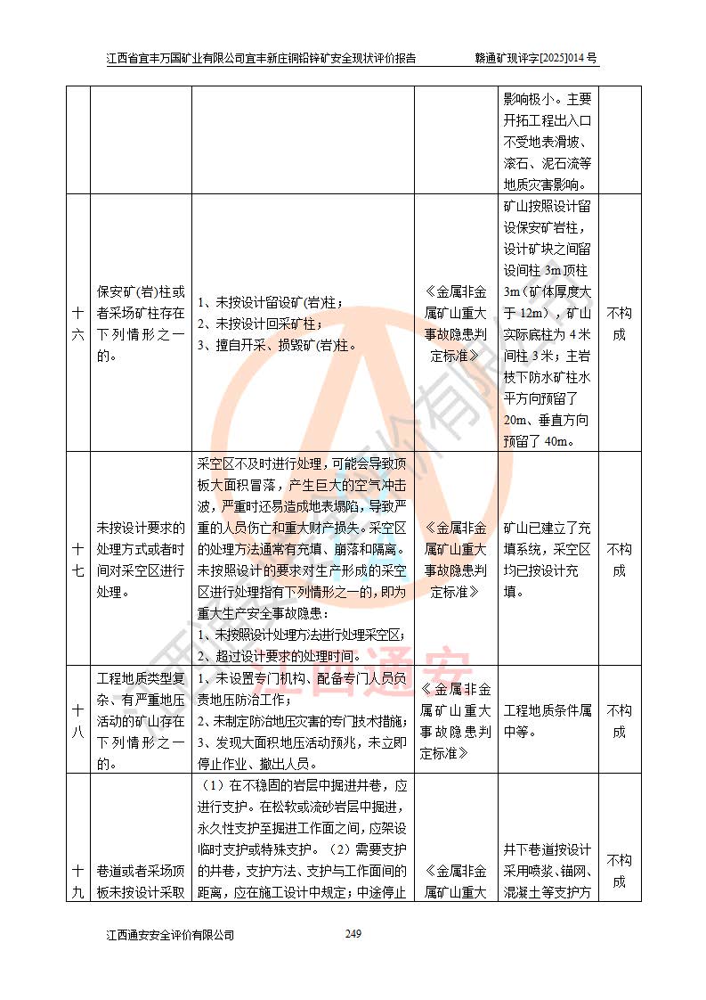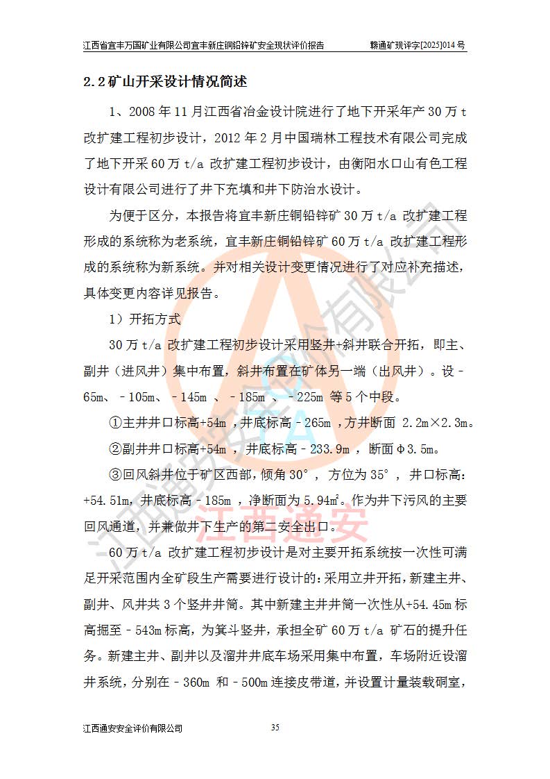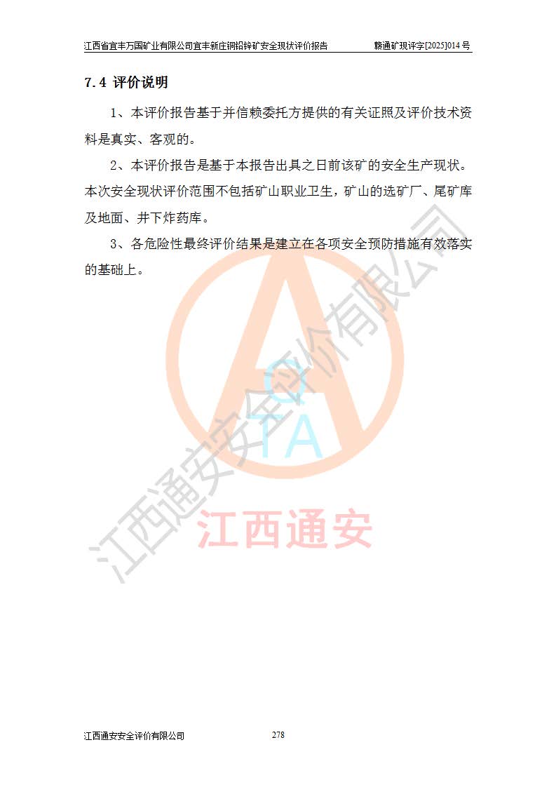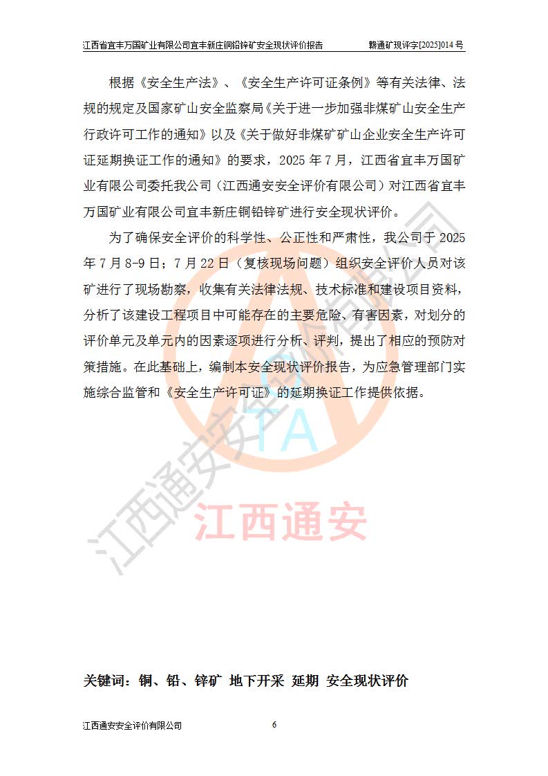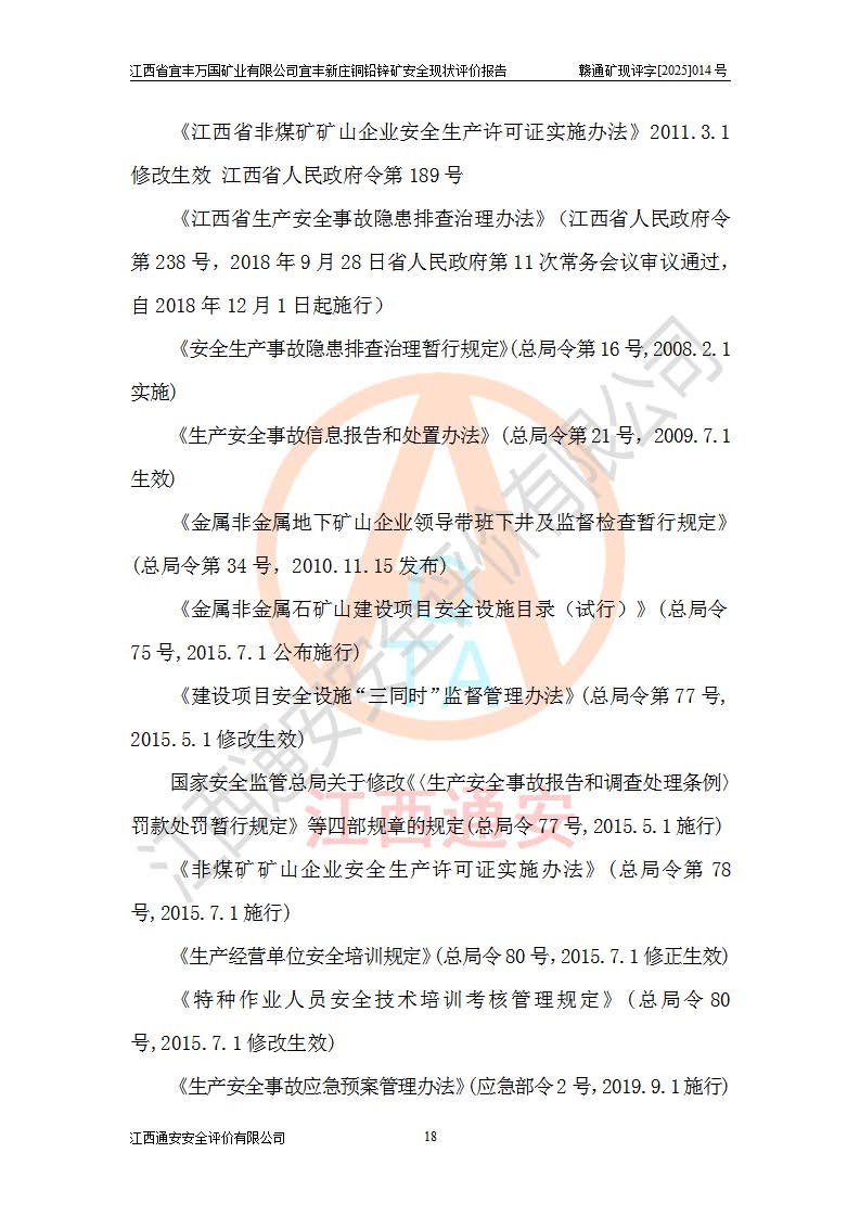 项目名称 | 江西省宜丰万国矿业有限公司宜丰新庄铜铅锌矿安全现状评价报告 | ||||
