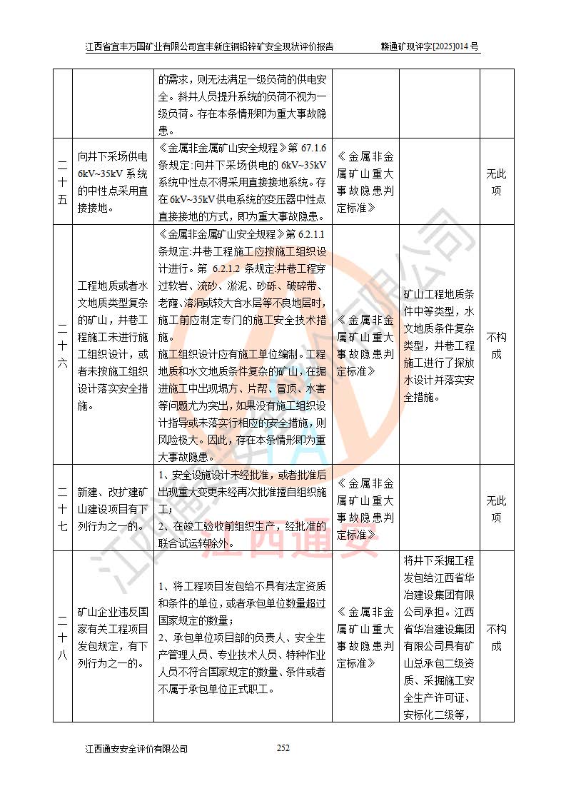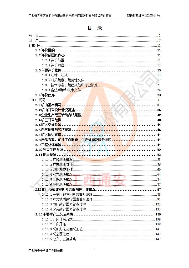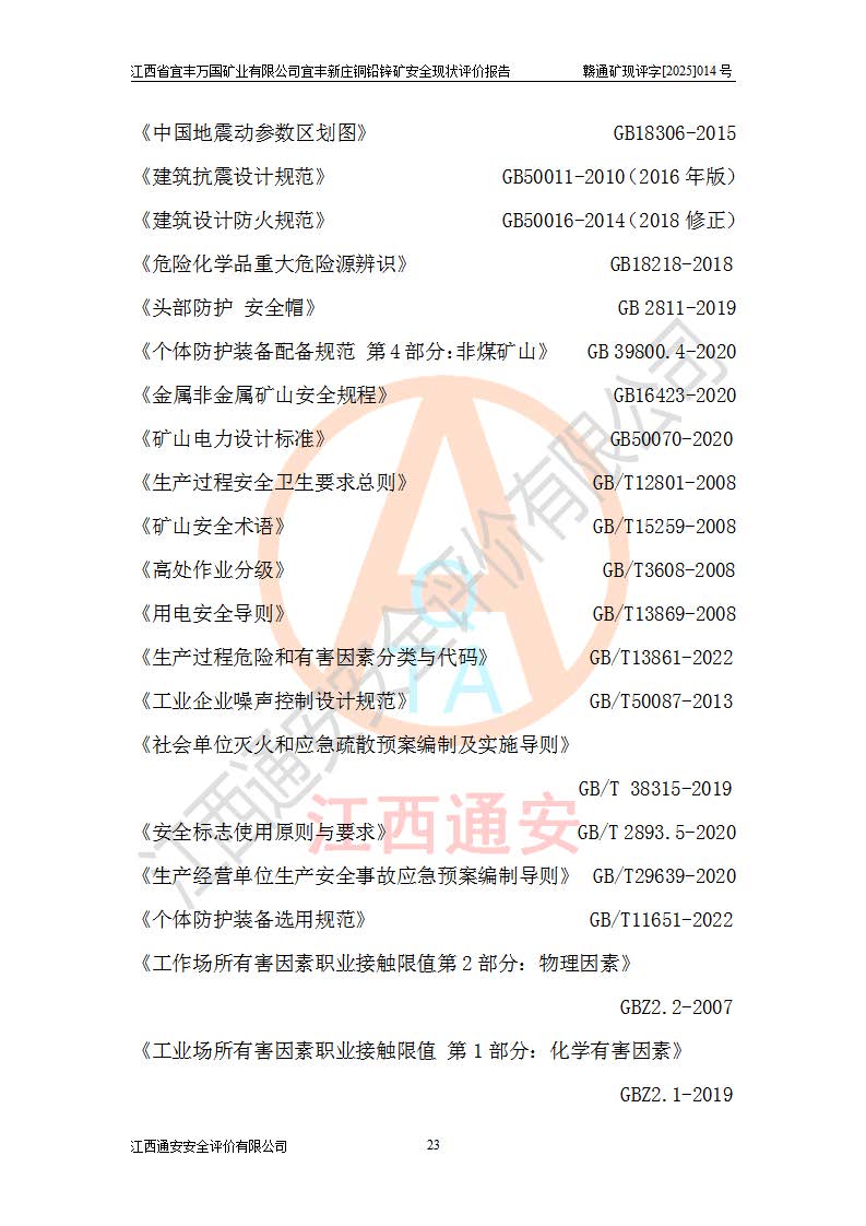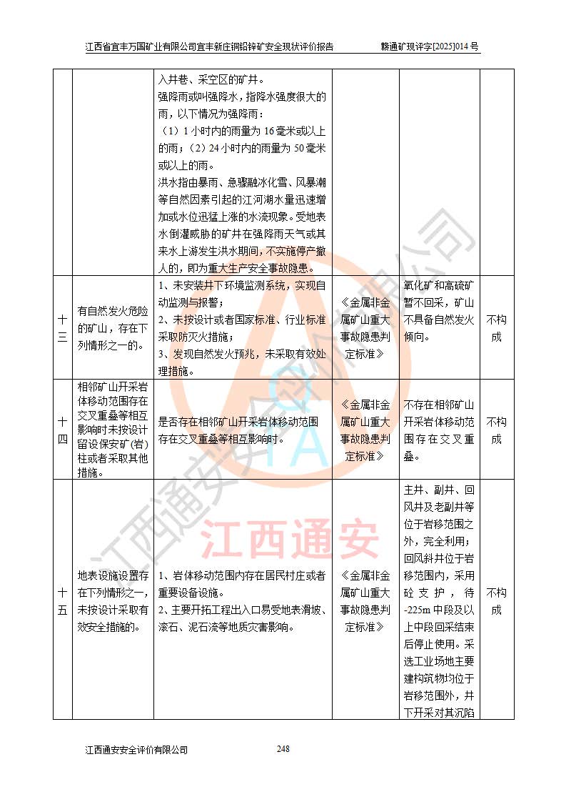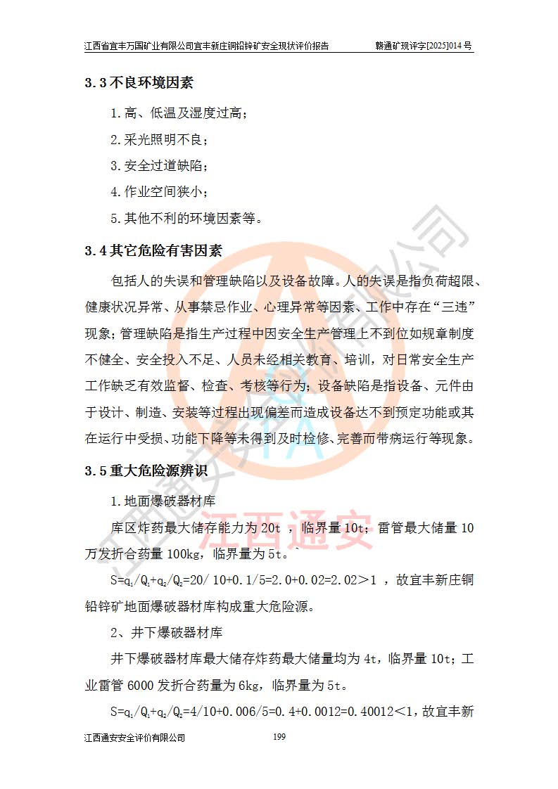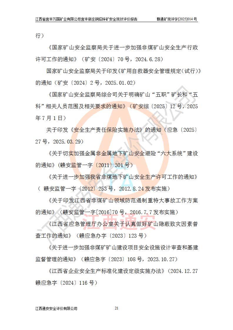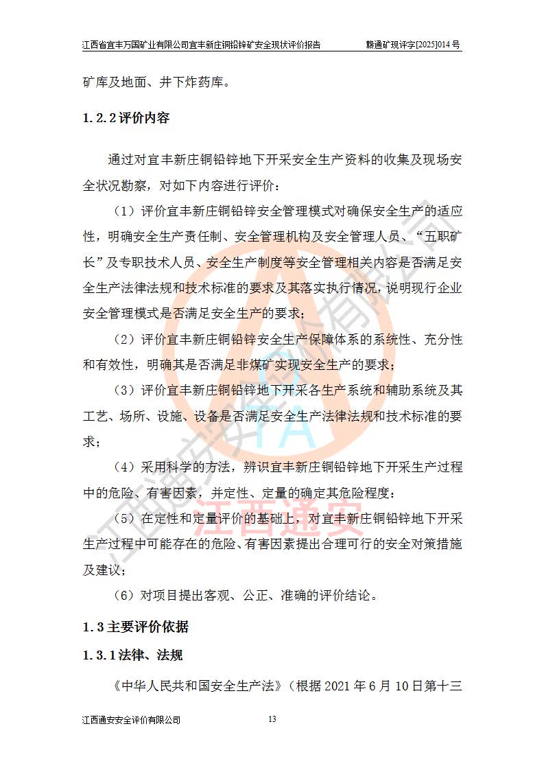 项目名称 | 江西省宜丰万国矿业有限公司宜丰新庄铜铅锌矿安全现状评价报告 | ||||