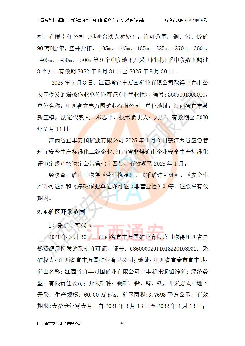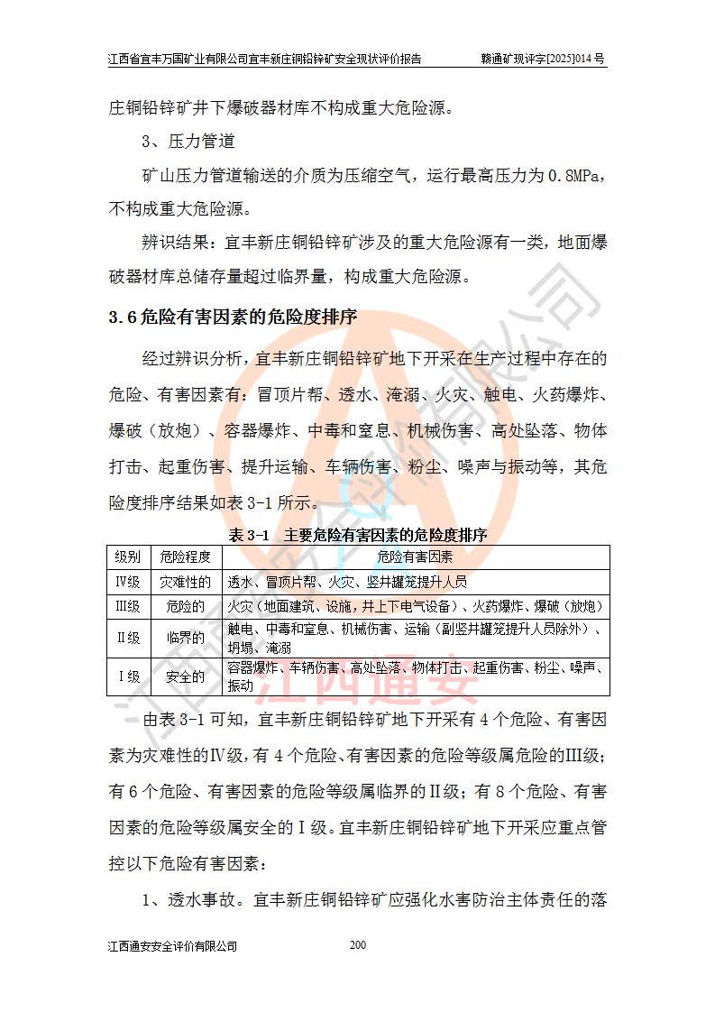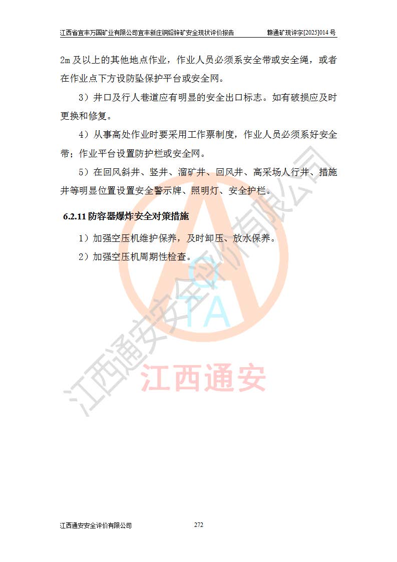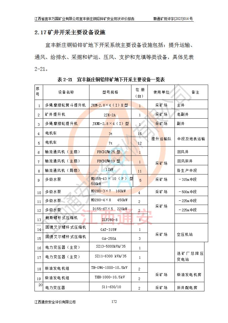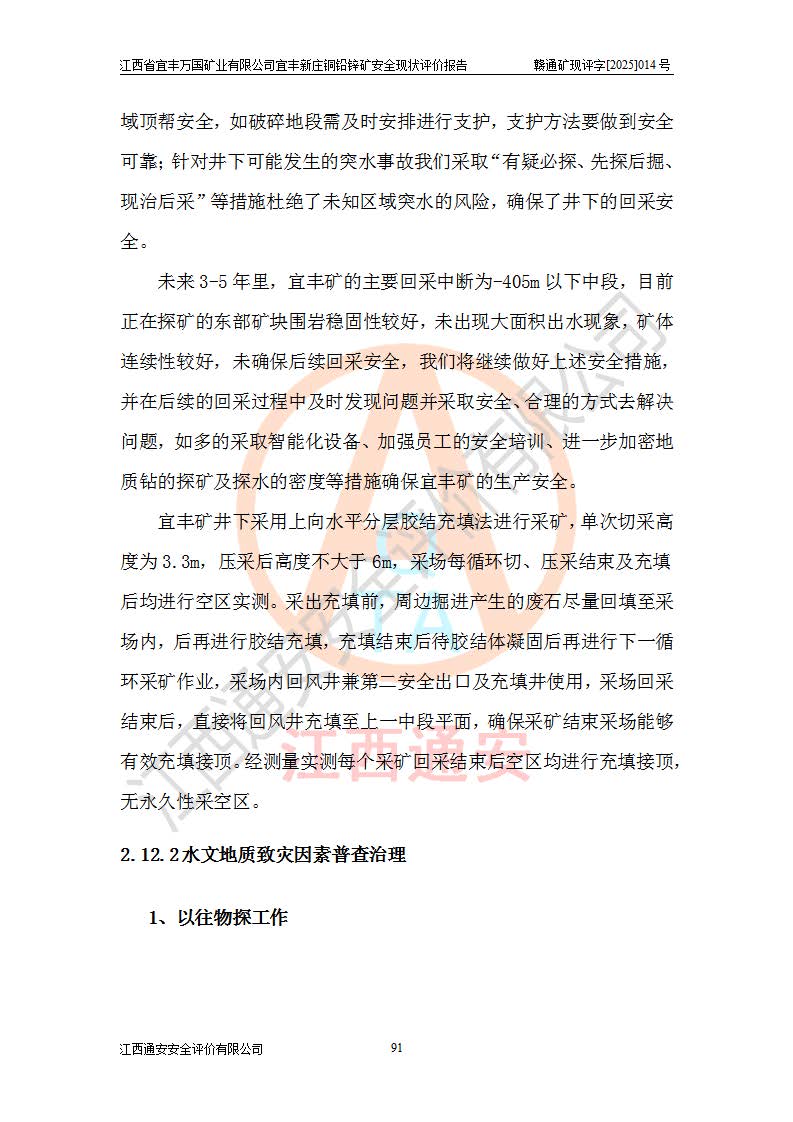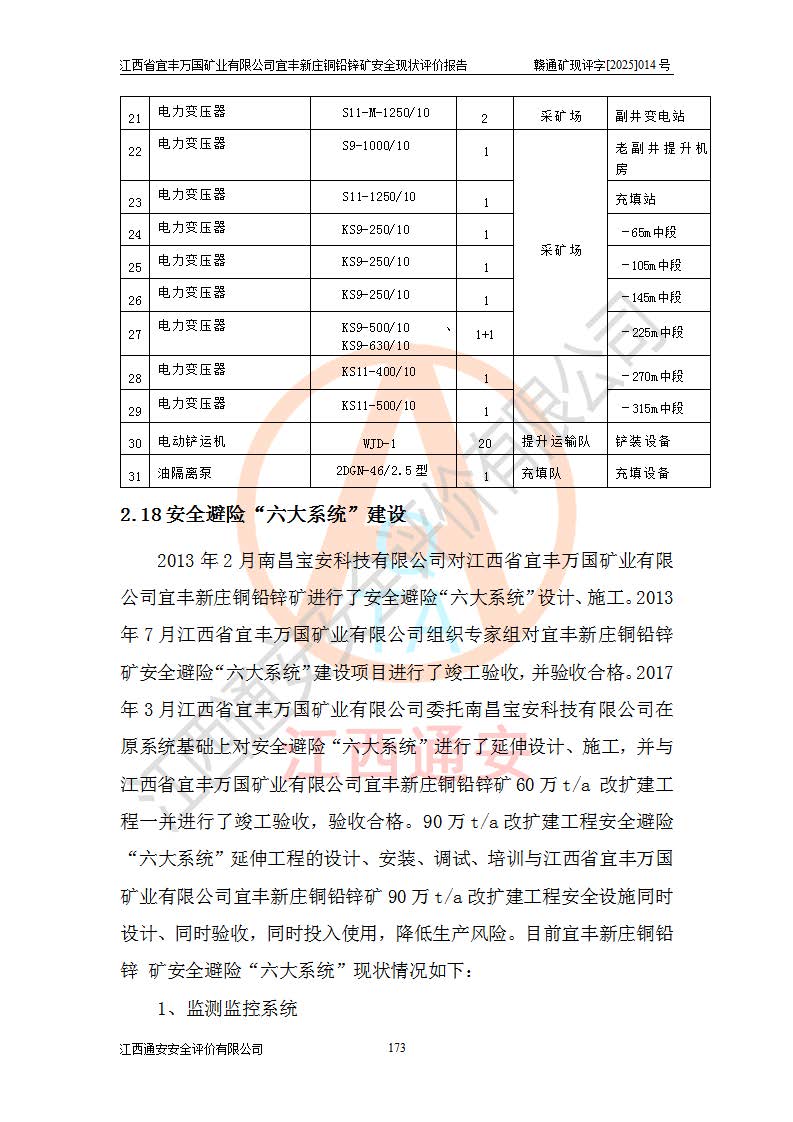 项目名称 | 江西省宜丰万国矿业有限公司宜丰新庄铜铅锌矿安全现状评价报告 | ||||