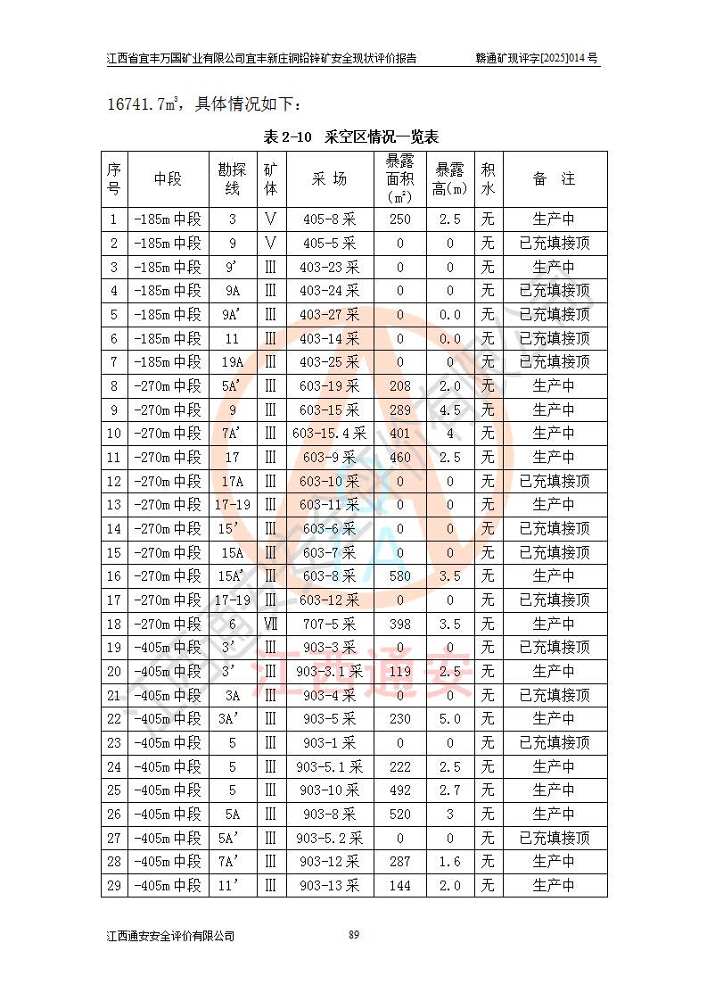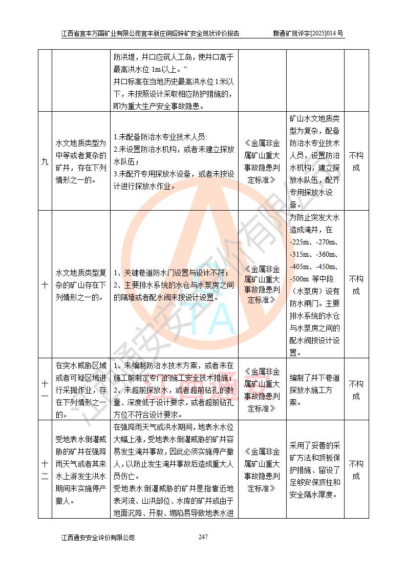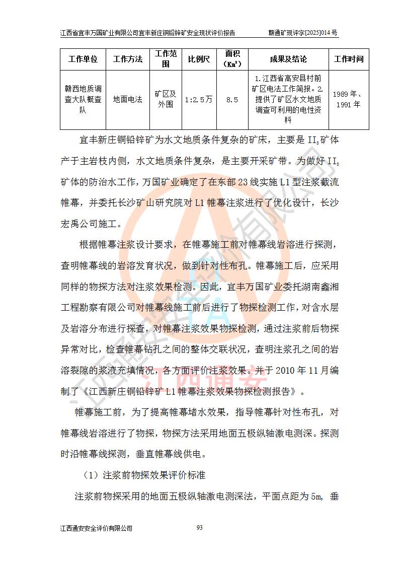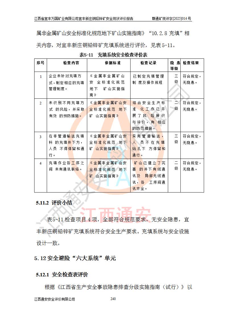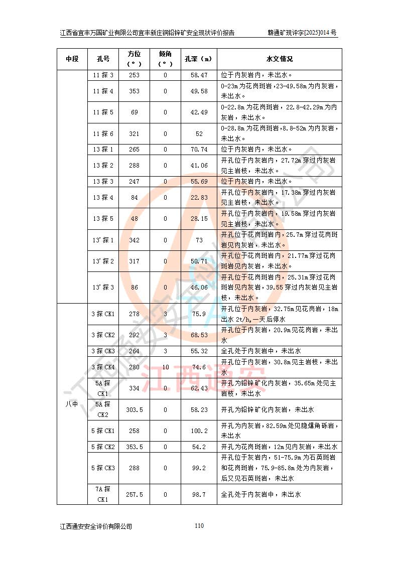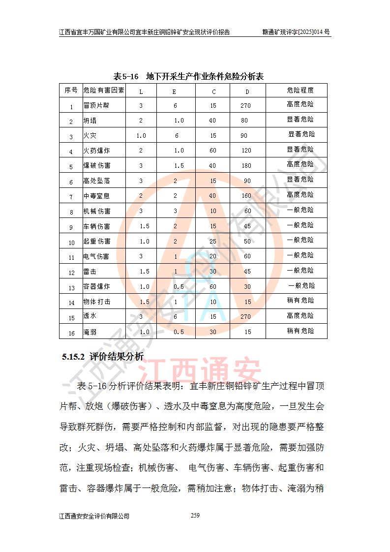 项目名称 | 江西省宜丰万国矿业有限公司宜丰新庄铜铅锌矿安全现状评价报告 | ||||