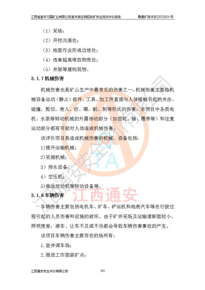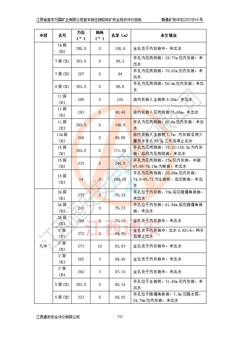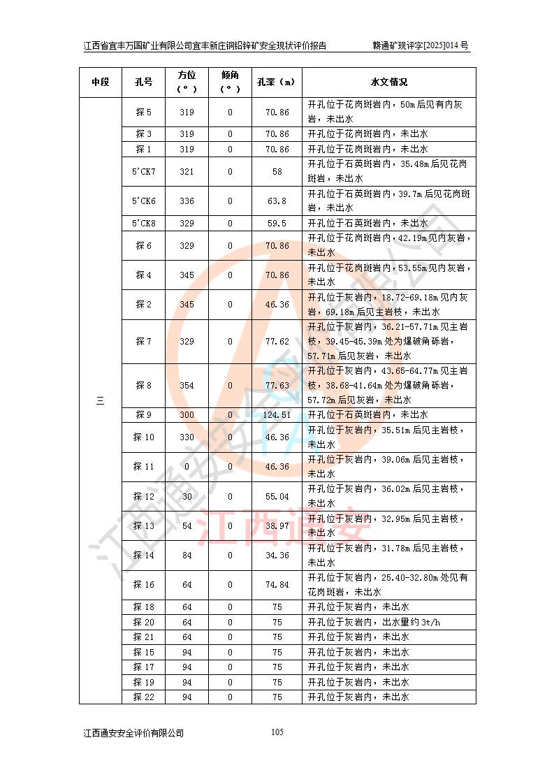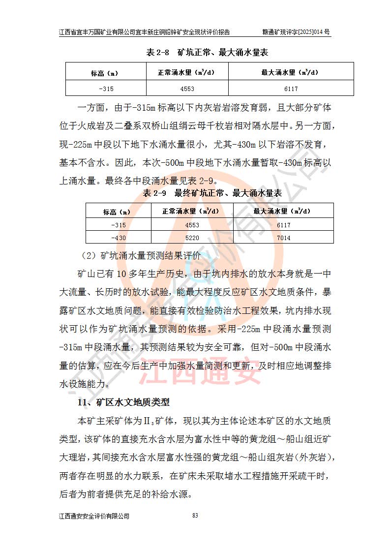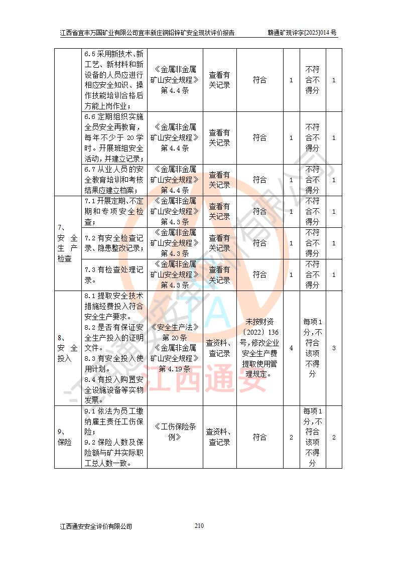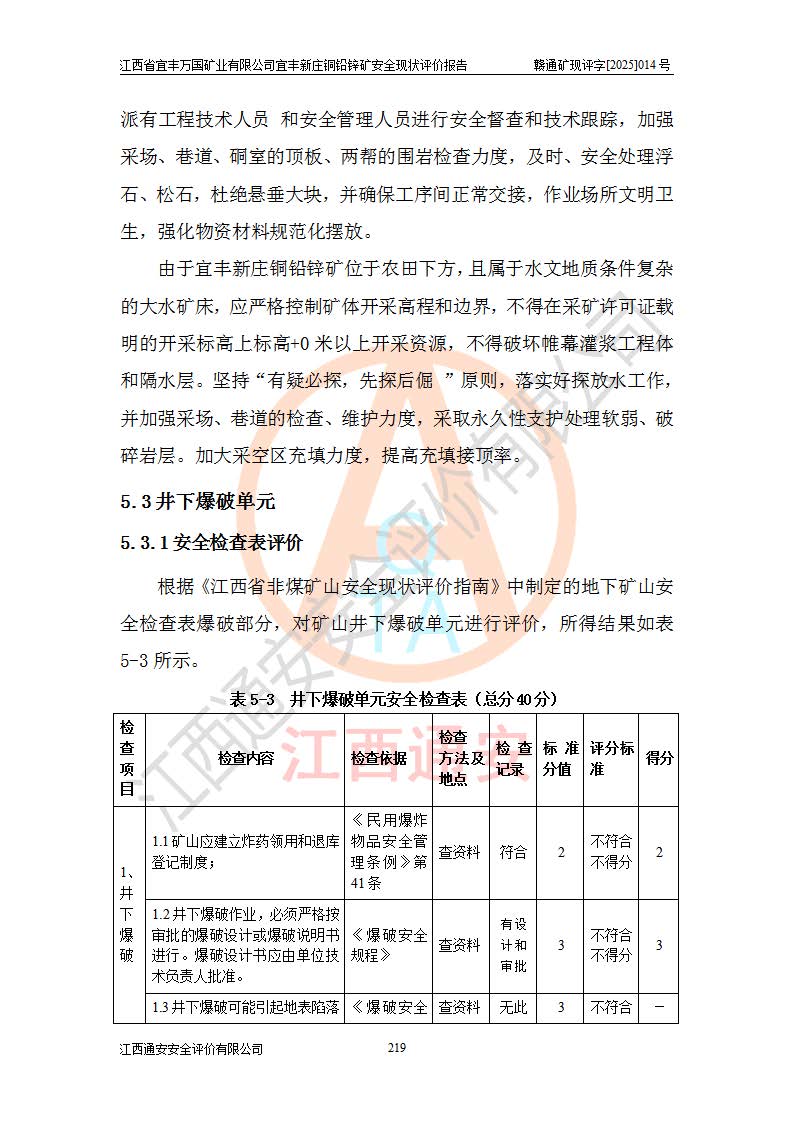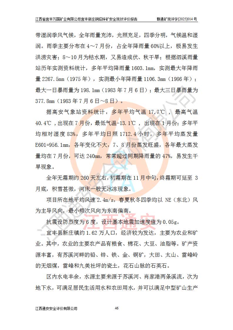 项目名称 | 江西省宜丰万国矿业有限公司宜丰新庄铜铅锌矿安全现状评价报告 | ||||