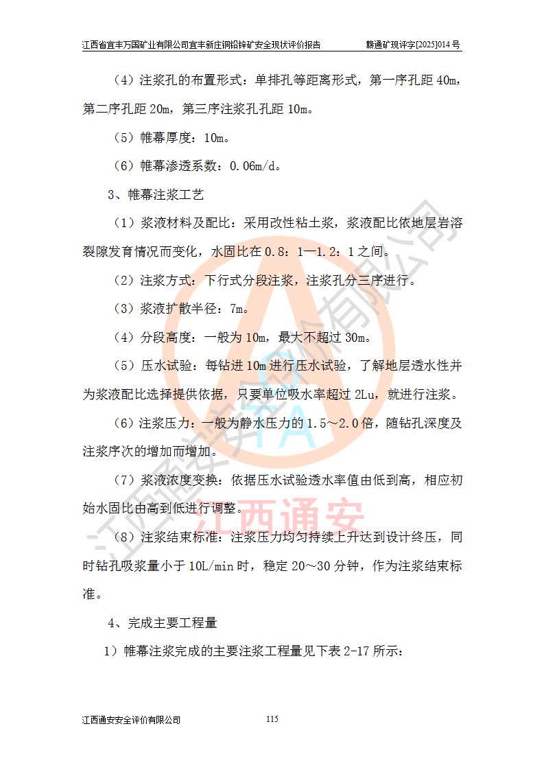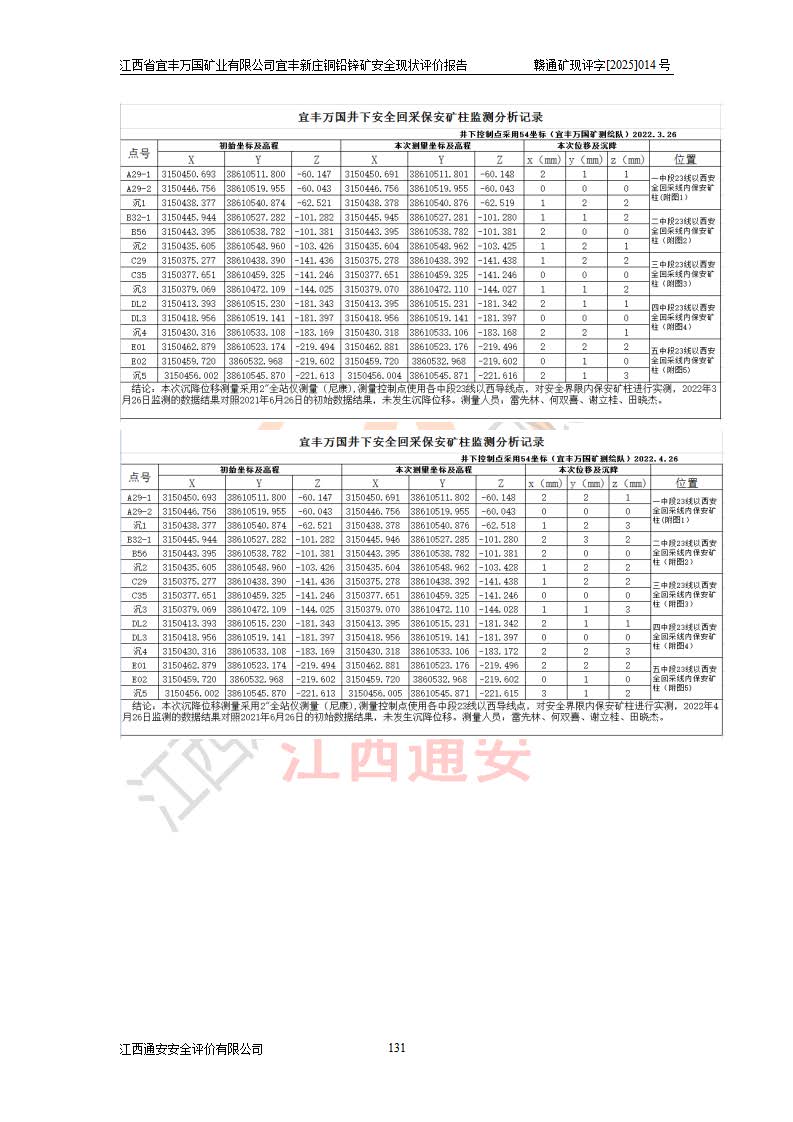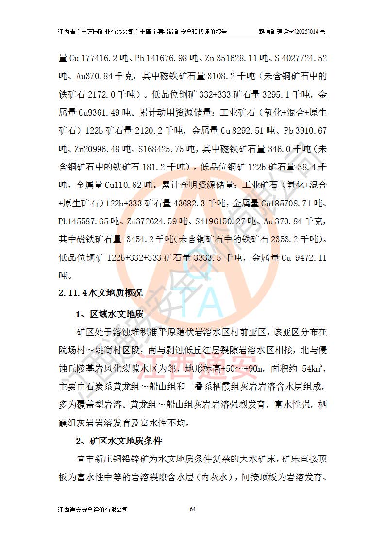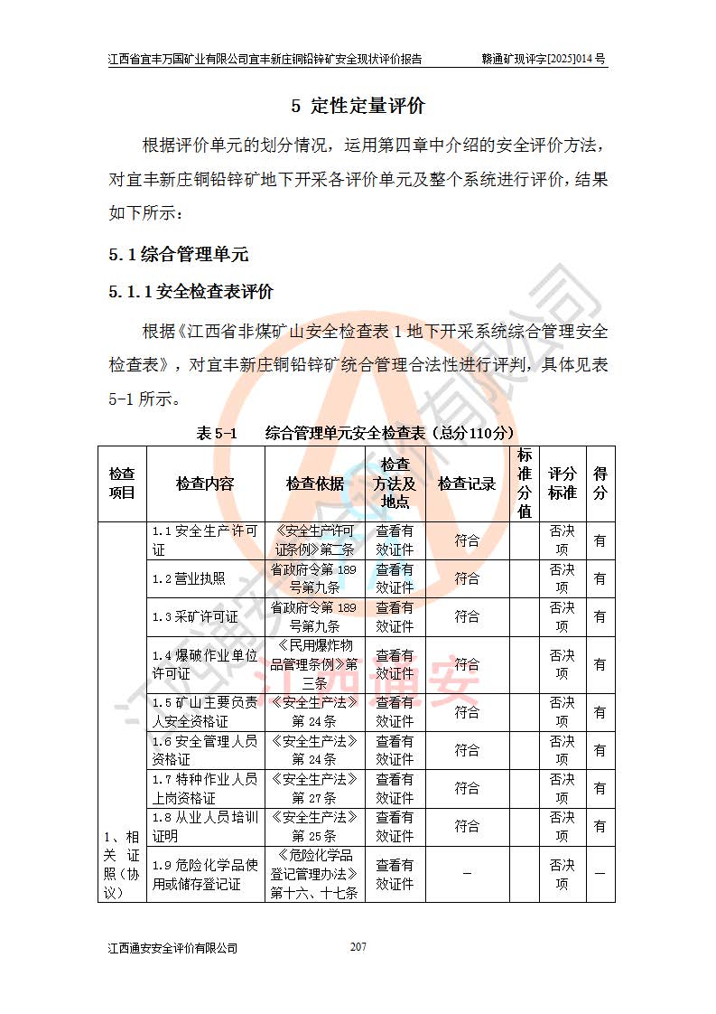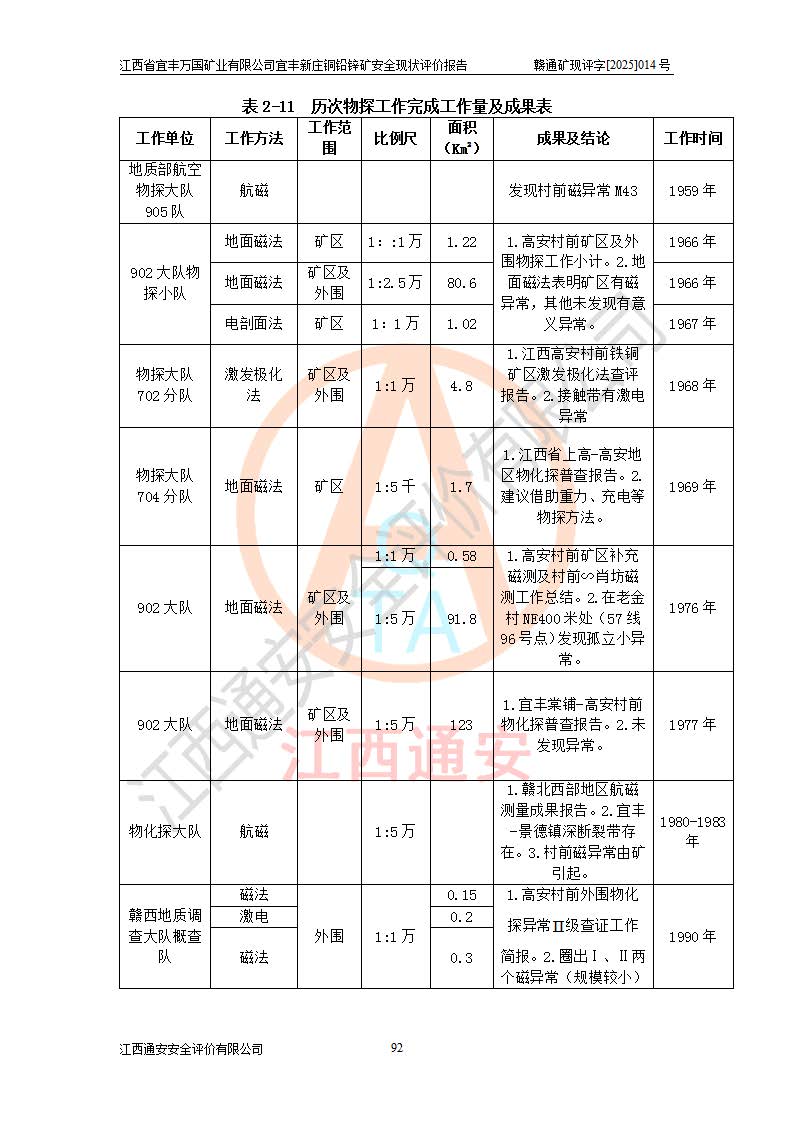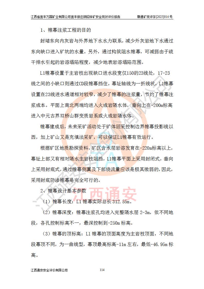 项目名称 | 江西省宜丰万国矿业有限公司宜丰新庄铜铅锌矿安全现状评价报告 | ||||