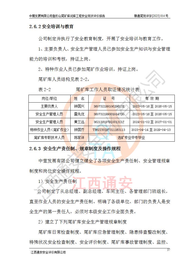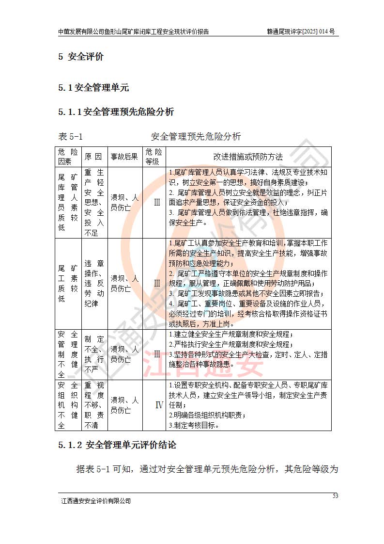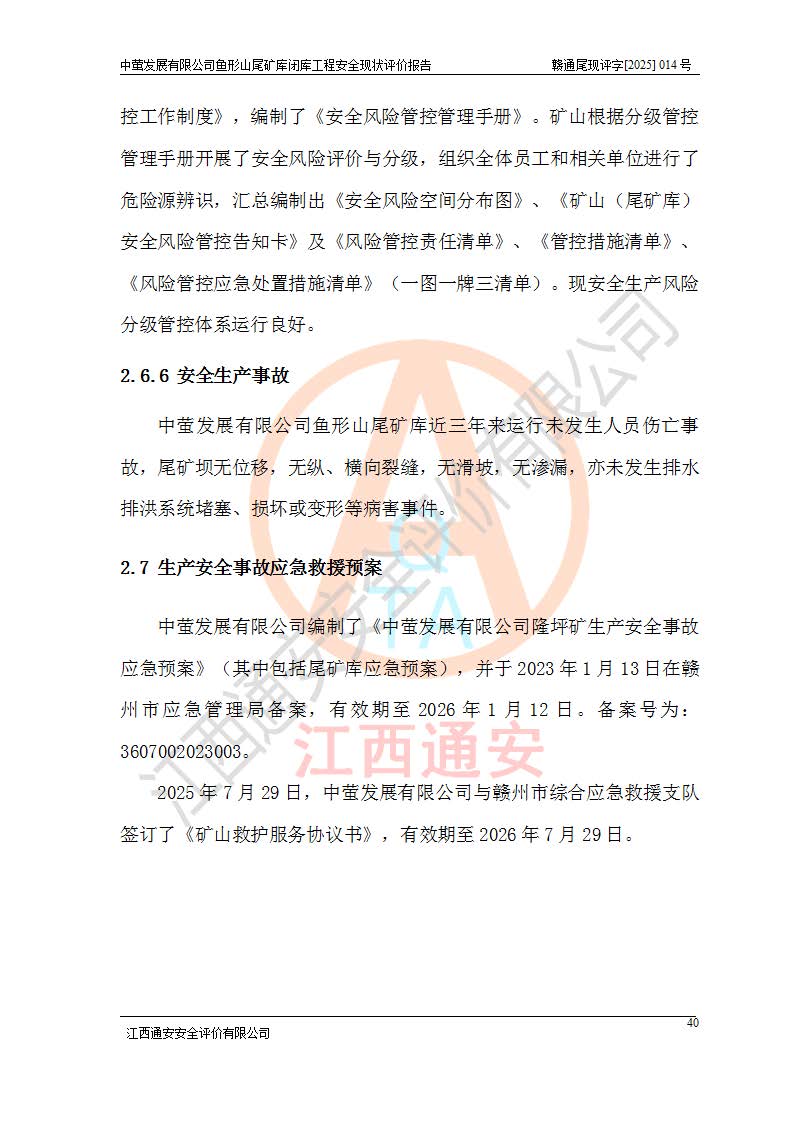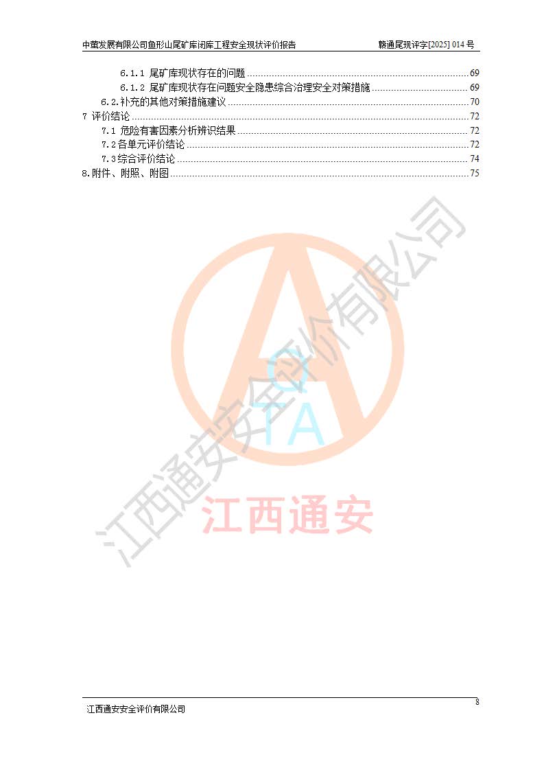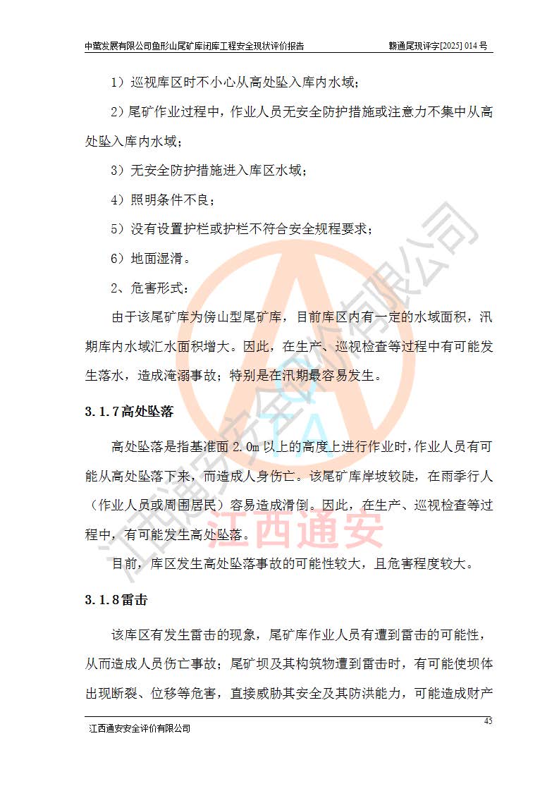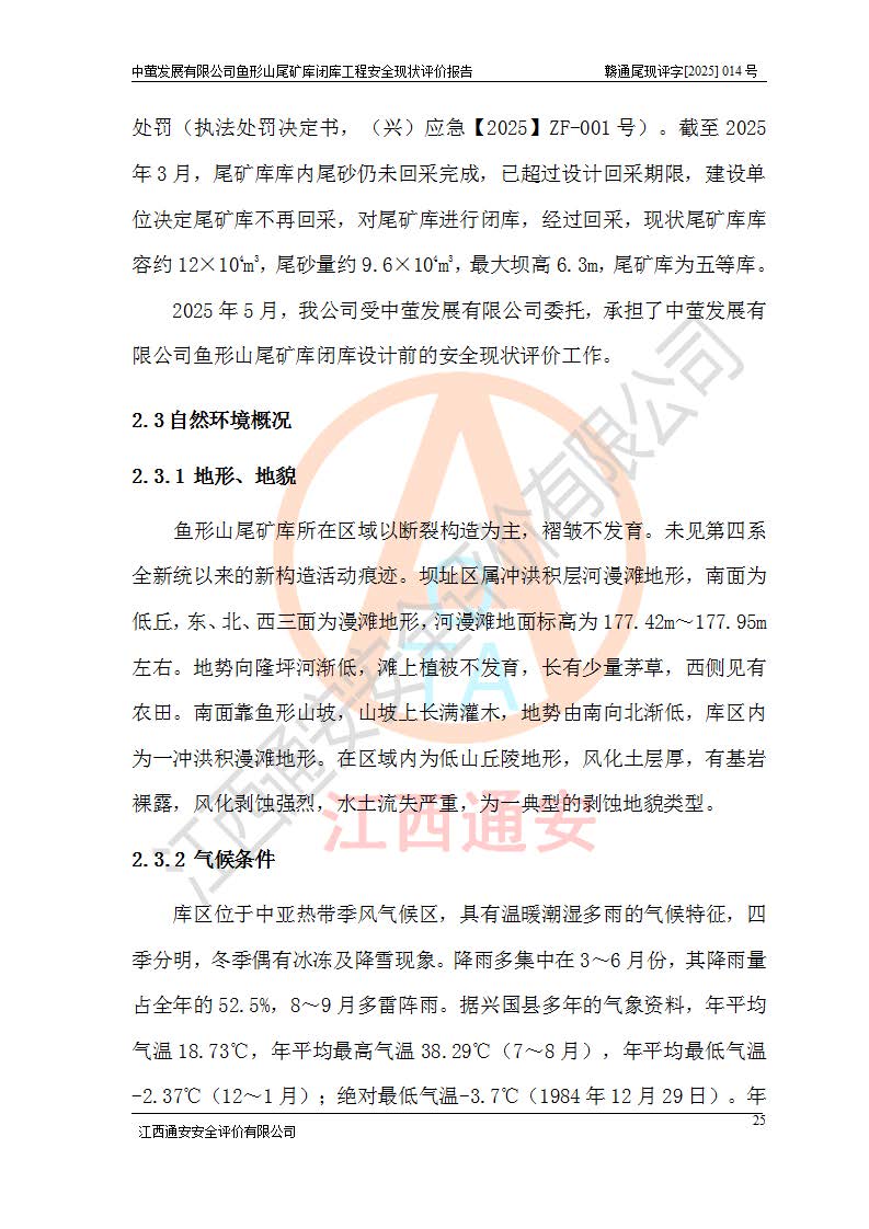 存在的问题: 1、初期坝未设置排水棱体,下游坡比较陡,初期坝坝顶被尾砂掩埋,尾矿坝稳定性不满足规范要求; 2、堆积坝外坡比较陡,不满足规范要求,东侧整个尾矿坝已被下游尾砂堆掩埋,堆积坝未设置坝面排水沟,未采取护坡措施,有冲刷拉沟现象; 3、原有排洪水系统已被尾砂掩埋,封堵情况不详,现状排水管泄流能力不满足要求,且进水口位于子坝坝前,子坝直接挡水,干滩长度不满足要求; 4、尾矿坝上未设置安全监测设施,安全标志偏少; 5、未按设计进行尾砂回采,在库内形成积水坑,且积水坑内积水无法排出; 6、尾矿库不再进行尾砂回采,也不再使用,应进行闭库。 整改措施: 1、在初期坝下游增设干砌块石贴坡排水体,增加坝体稳定性,在北侧和东侧初期坝坝脚增设坝脚排水沟。 2、对堆积坝削坡,增加坝体的稳定性,削坡后覆土植草皮护坡,修建坝面坝肩排水沟。 3、新建溢洪道用于闭库后尾矿库排洪排水,拆除现有排水管;对原排洪系统进行封堵。 4、闭库时在尾矿坝上增设安全监测设施,增设安全标志。 5、对库内积水坑进行平整。 6、应进行闭库,整治尾矿库库内干滩面,为防止干滩面水土流失,覆土植草,覆土范围为整个库区范围。在库内干滩面设置库面排水沟,截洪沟、新建溢洪道,形成库内排水网,能**的将库内雨水排至库外。 |