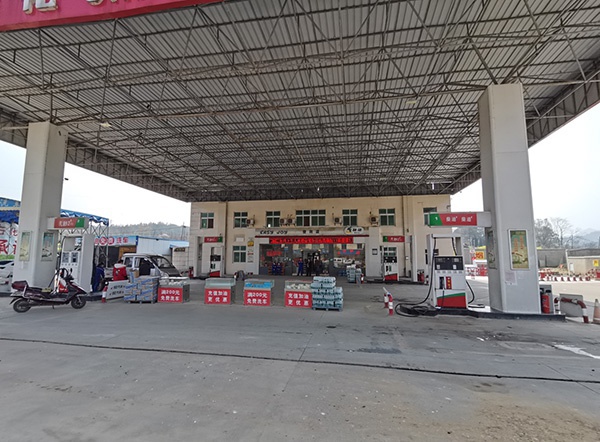 该站占地面积约为1268.2m2,站内设有自吸式加油机4台及配套的工艺管线,设有30m3双层0#柴油储罐1台,30m3双层92#汽油储罐2台、30m3双层95#汽油储罐1台。油品总容量120立方米(折算成汽油为105m³),按现行国标GB50156计算,该站属二级加油站。该加油站已于2019年完成双层罐改造验收。
